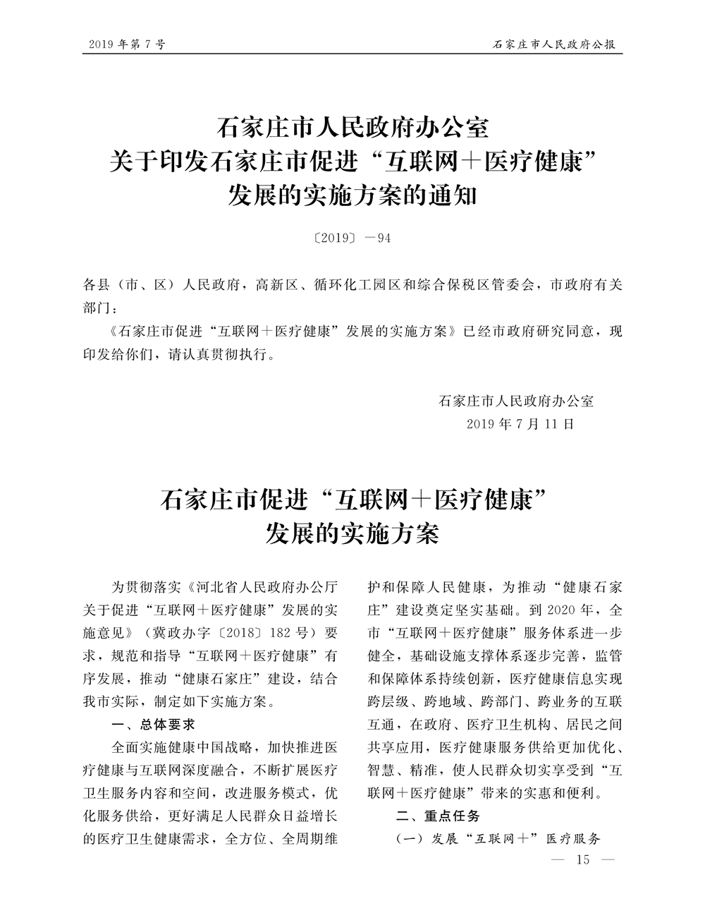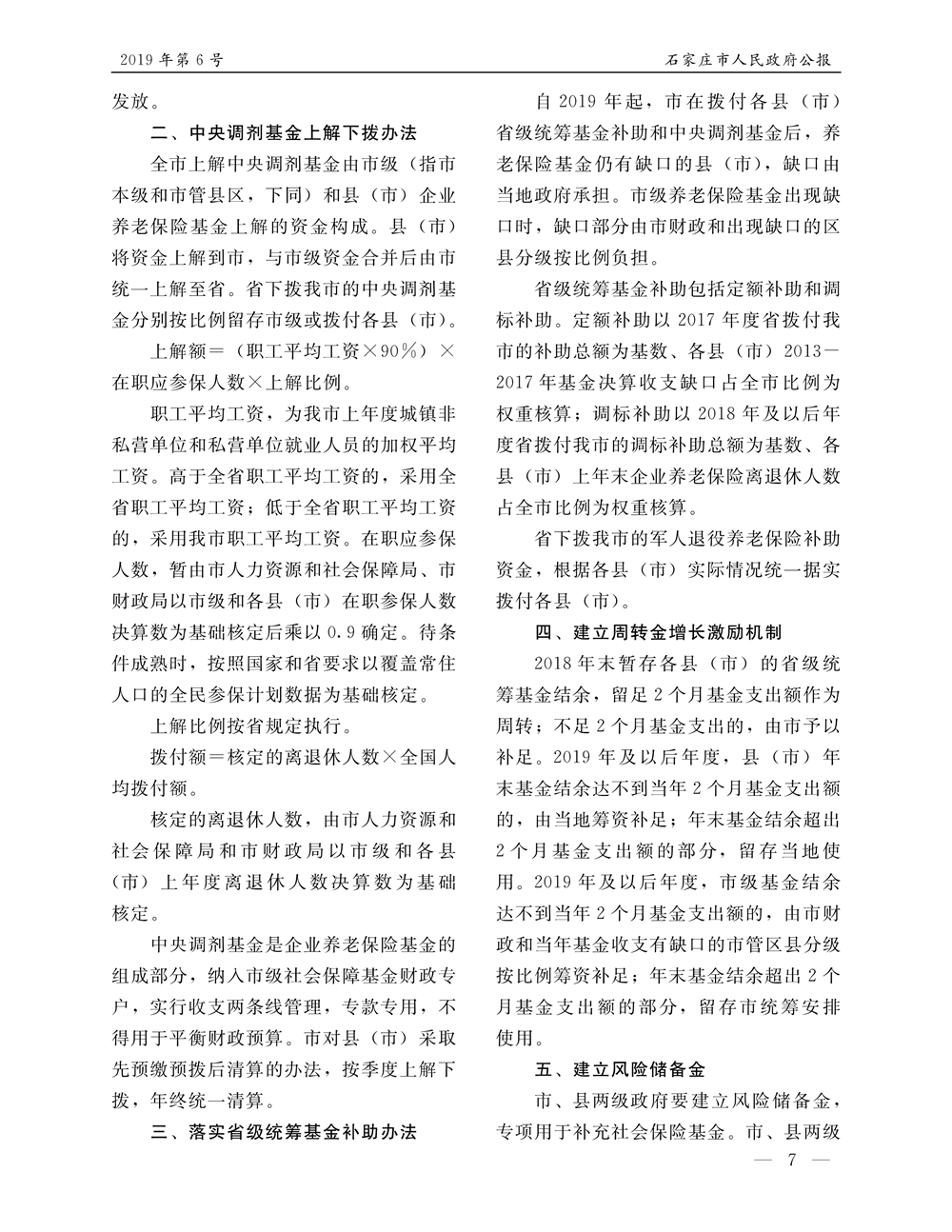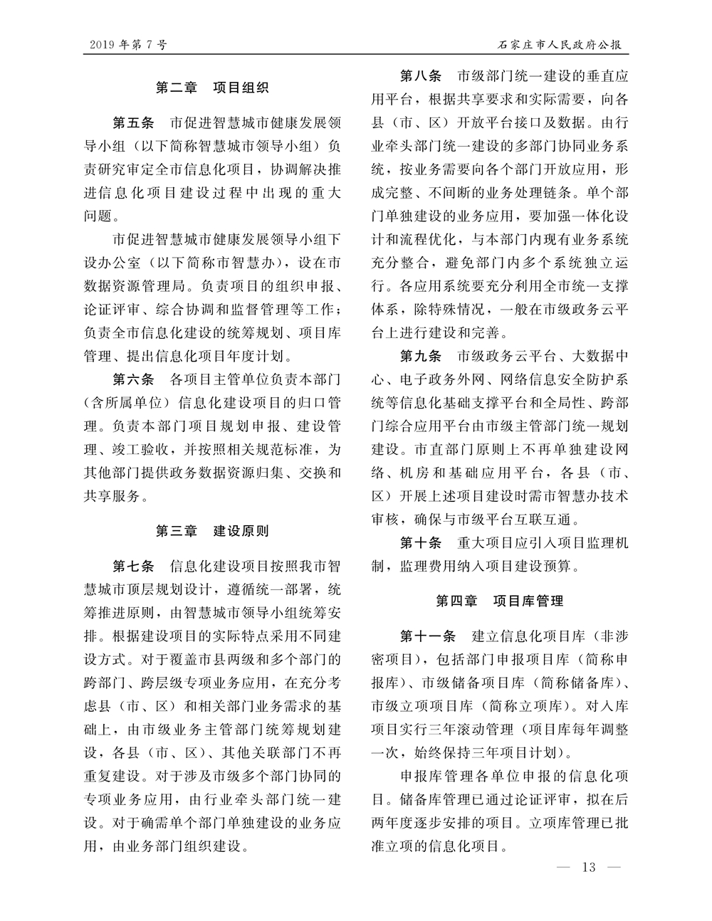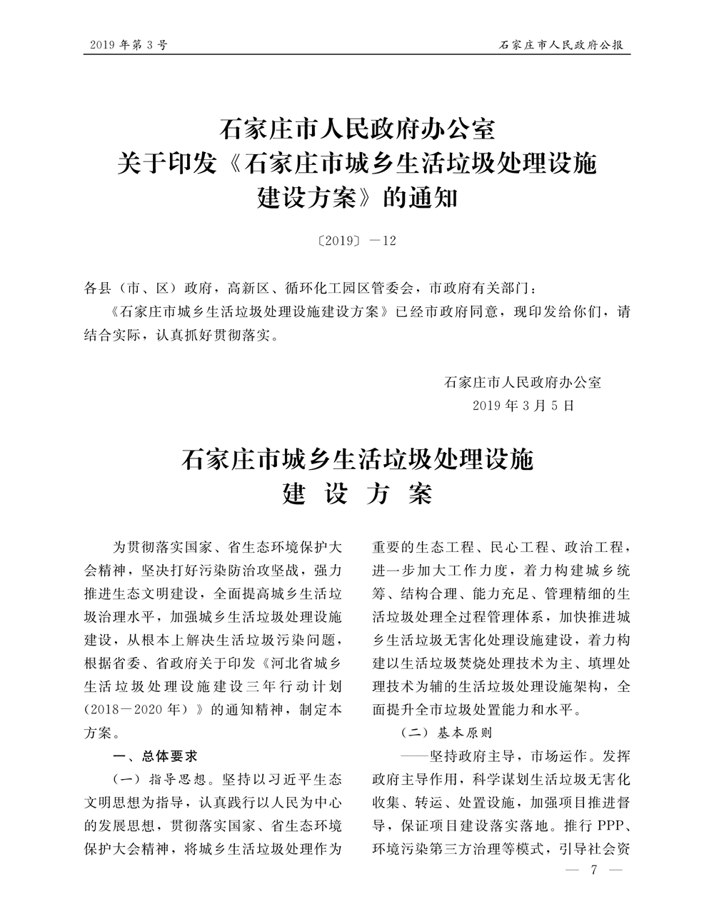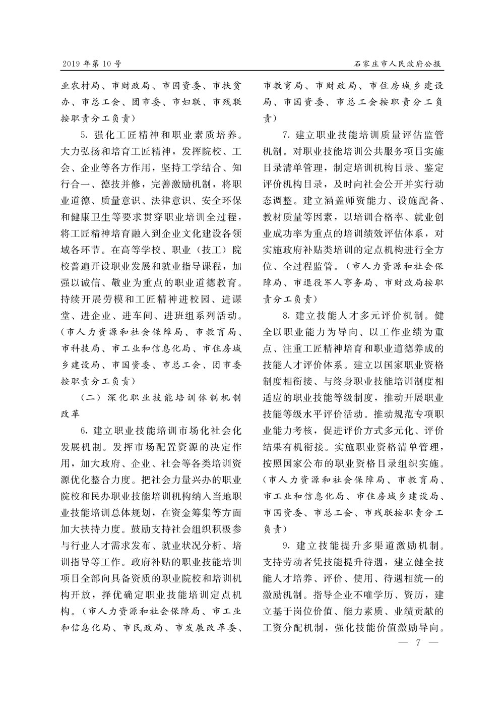 石家莊市人民政府公報2019年第7號