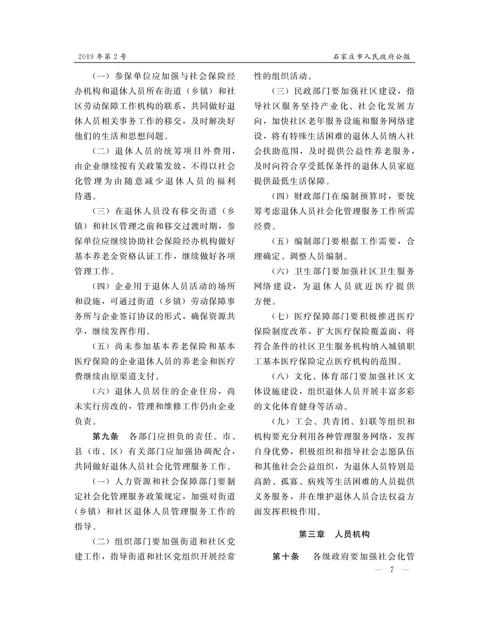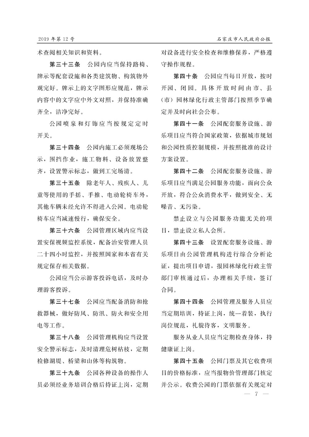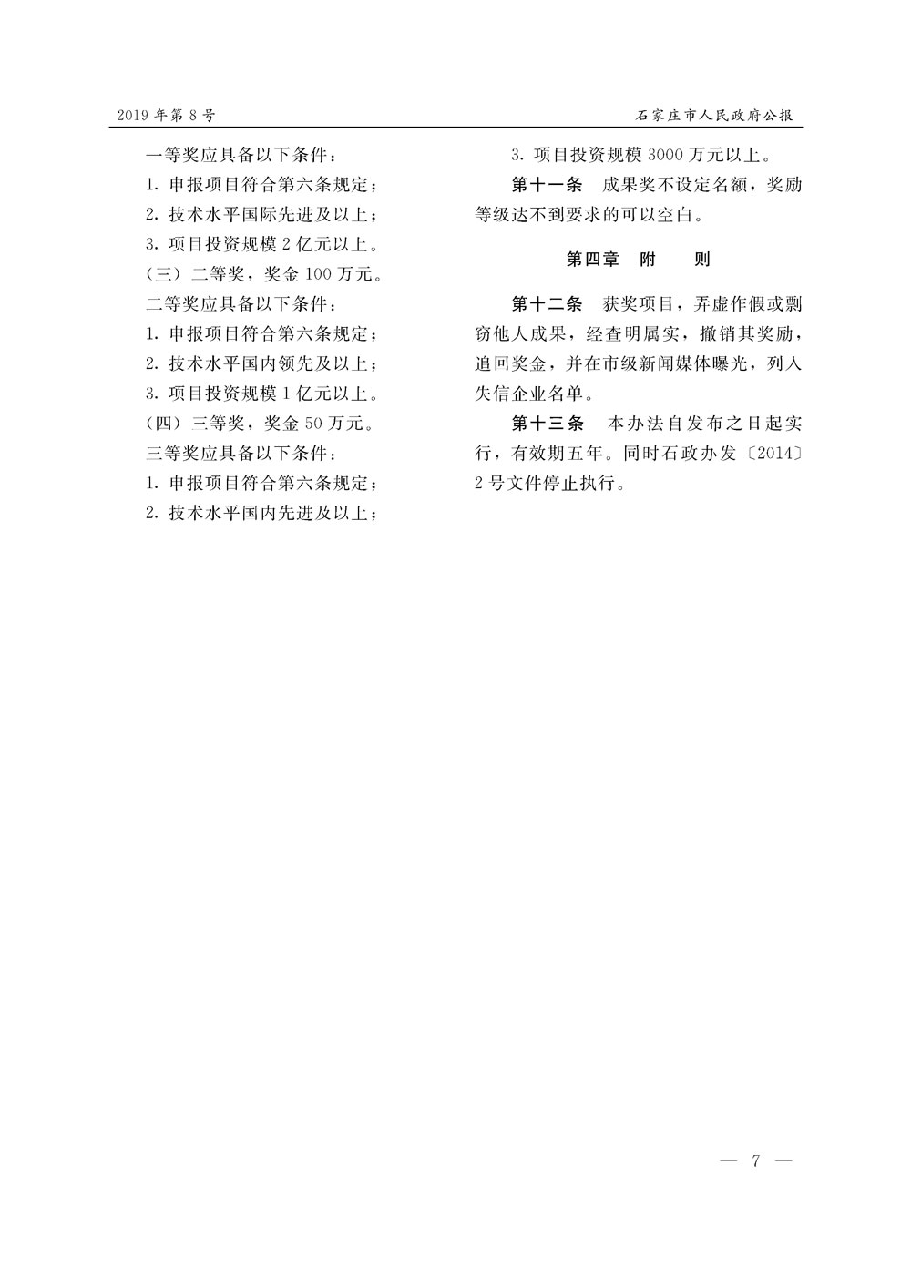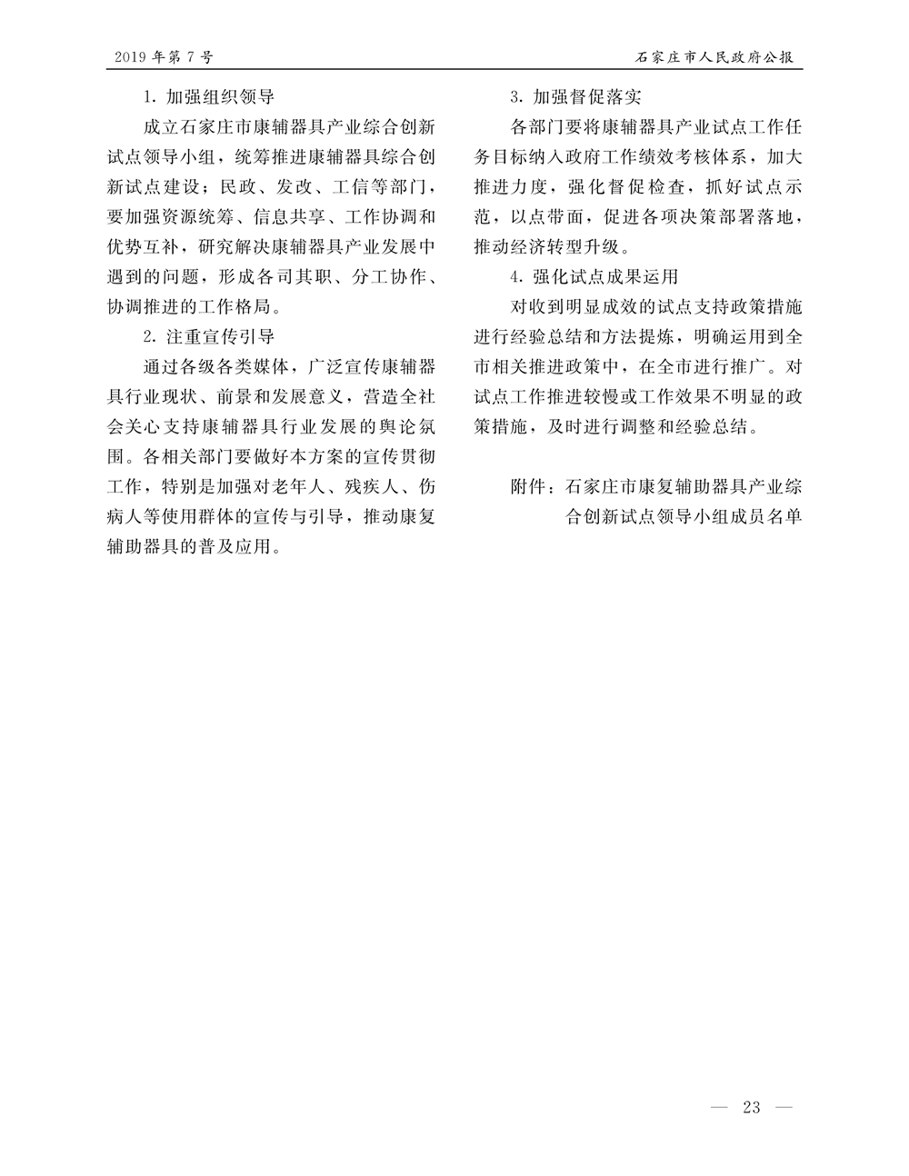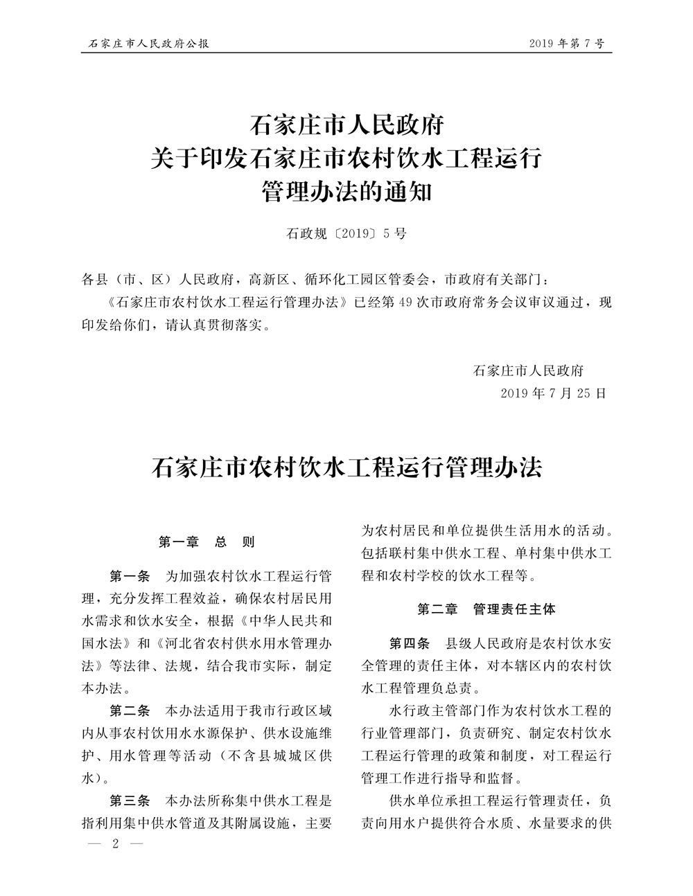 石家莊市人民政府公報2019年第7號