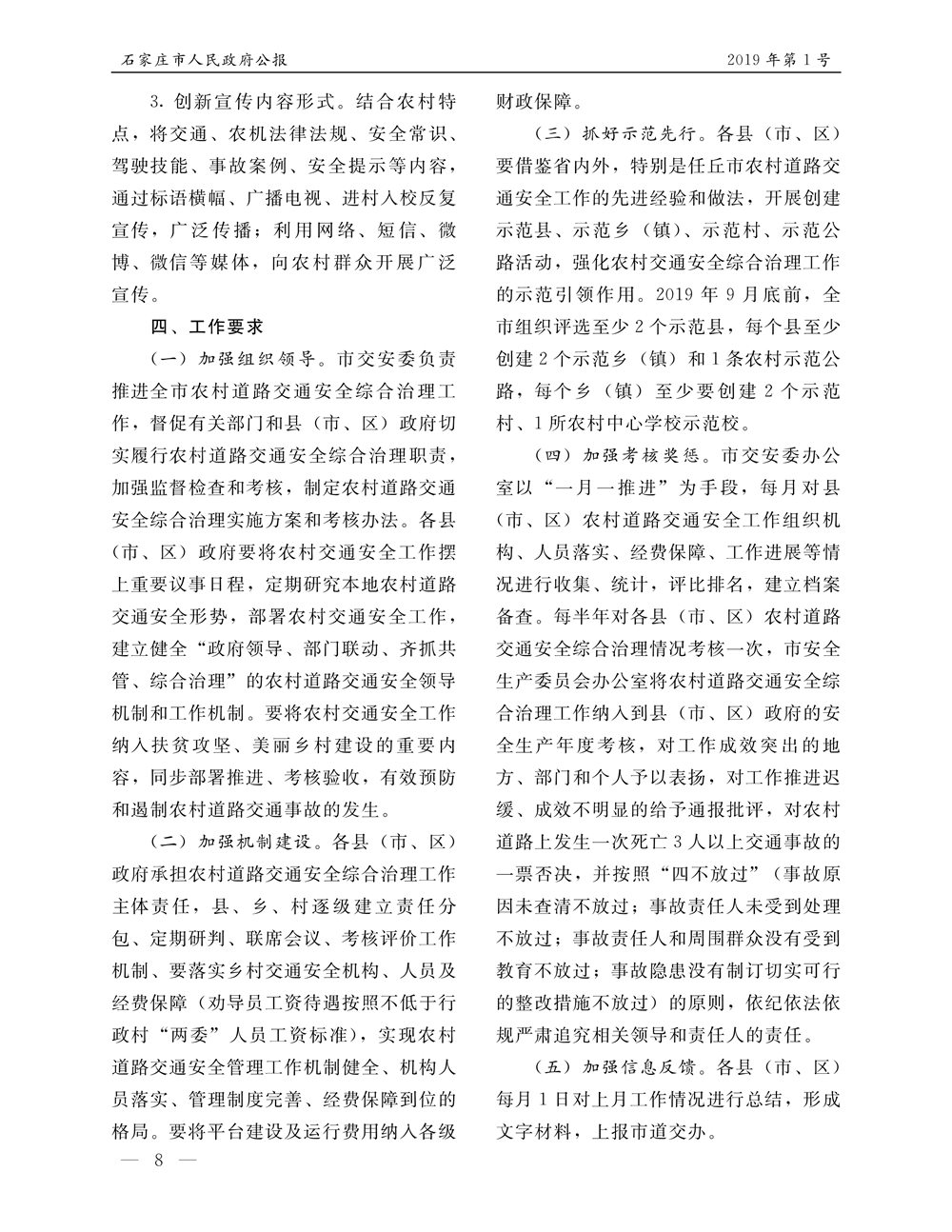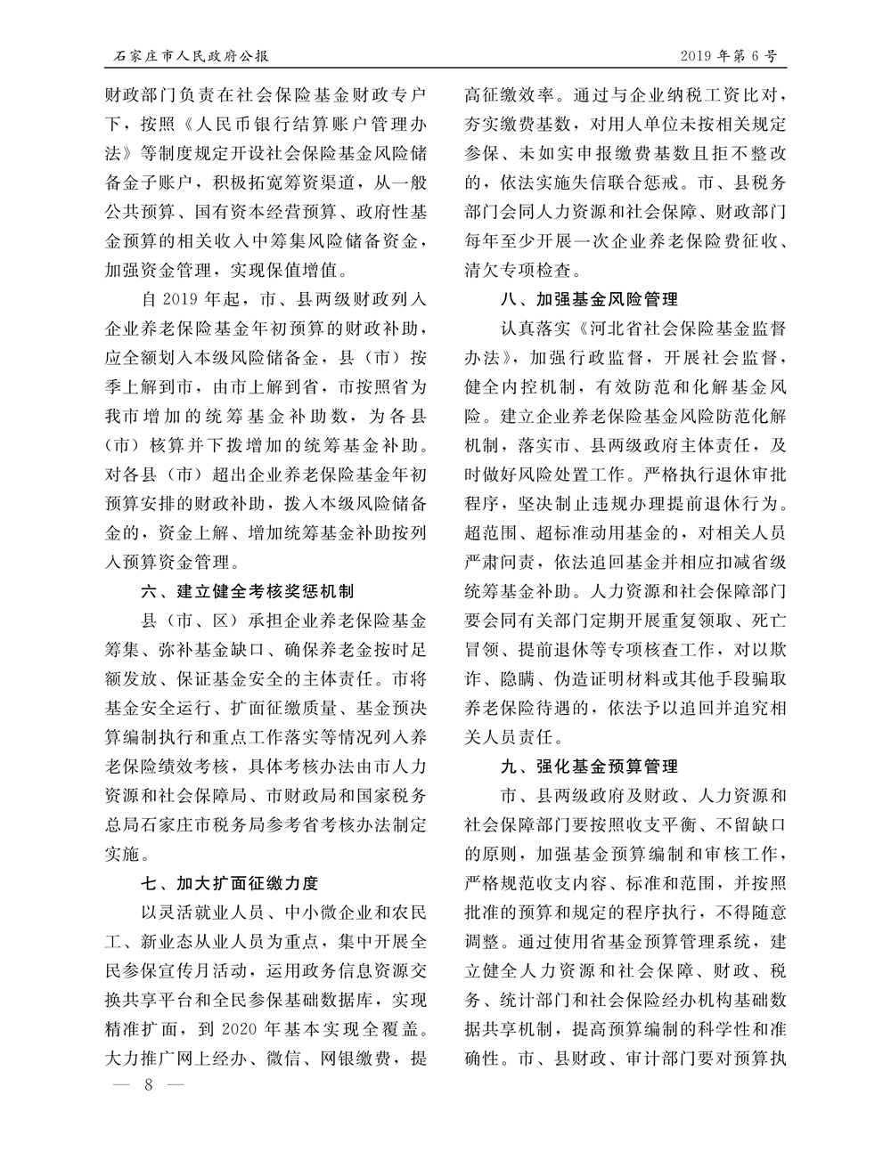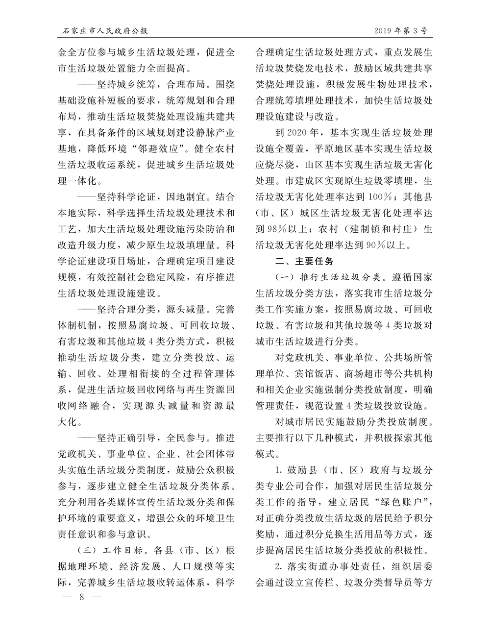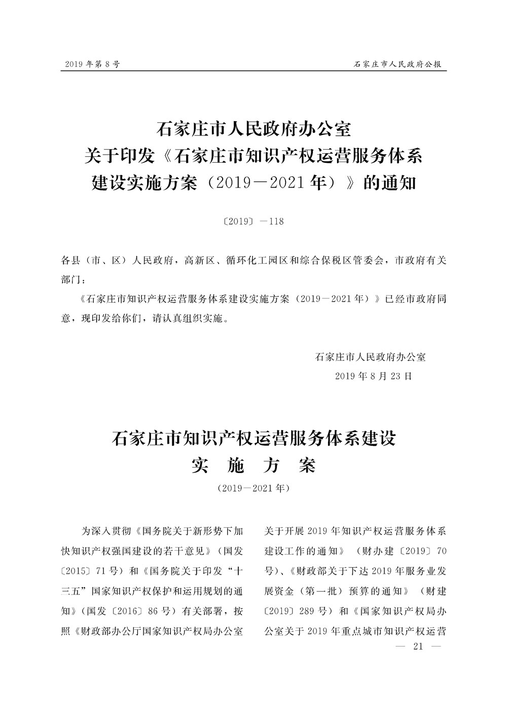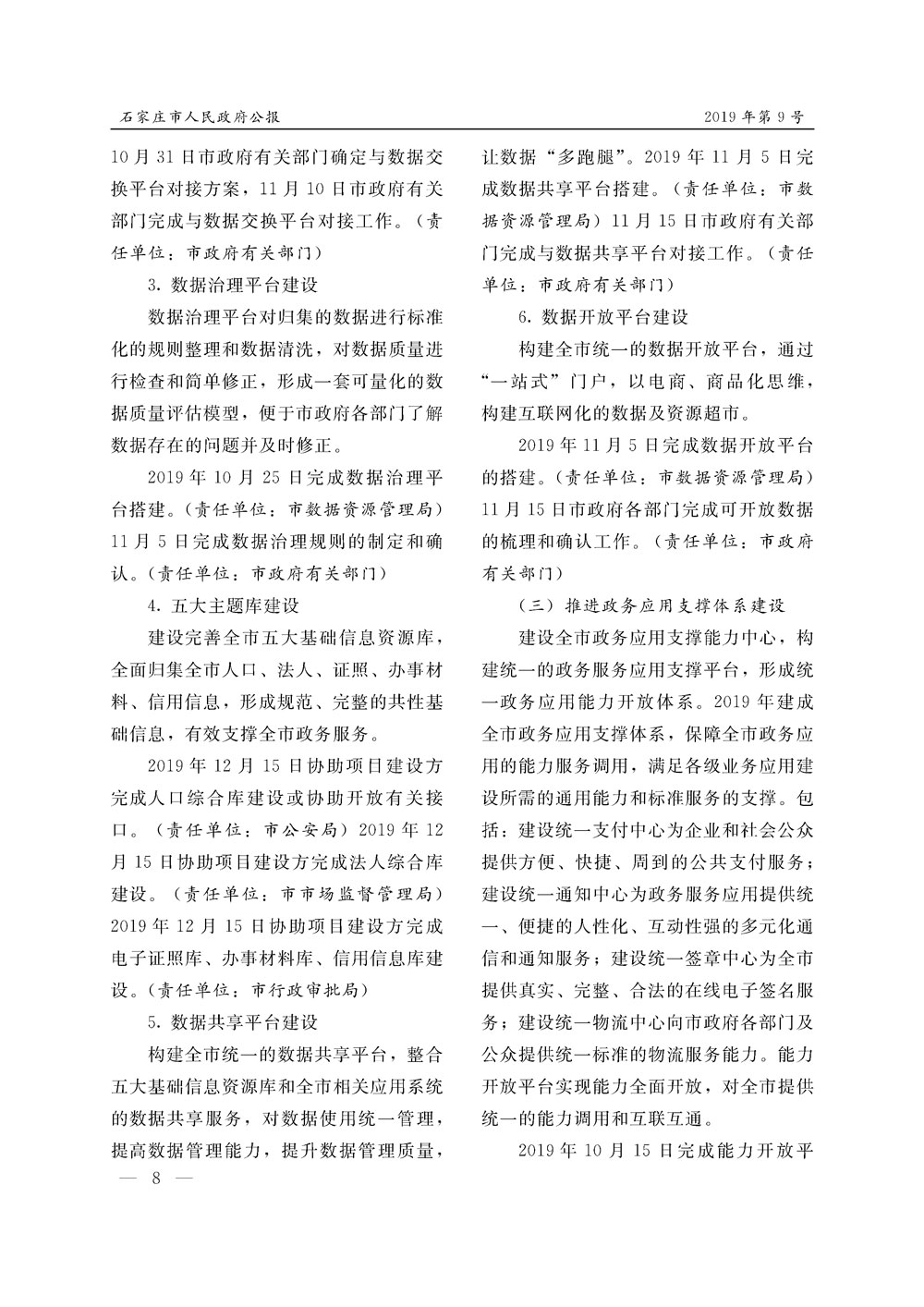 石家莊市人民政府公報2019年第8號