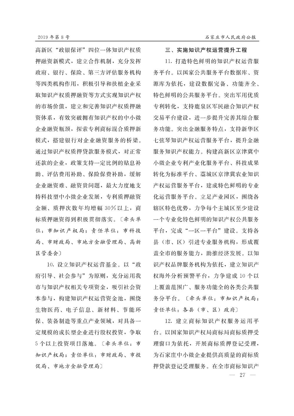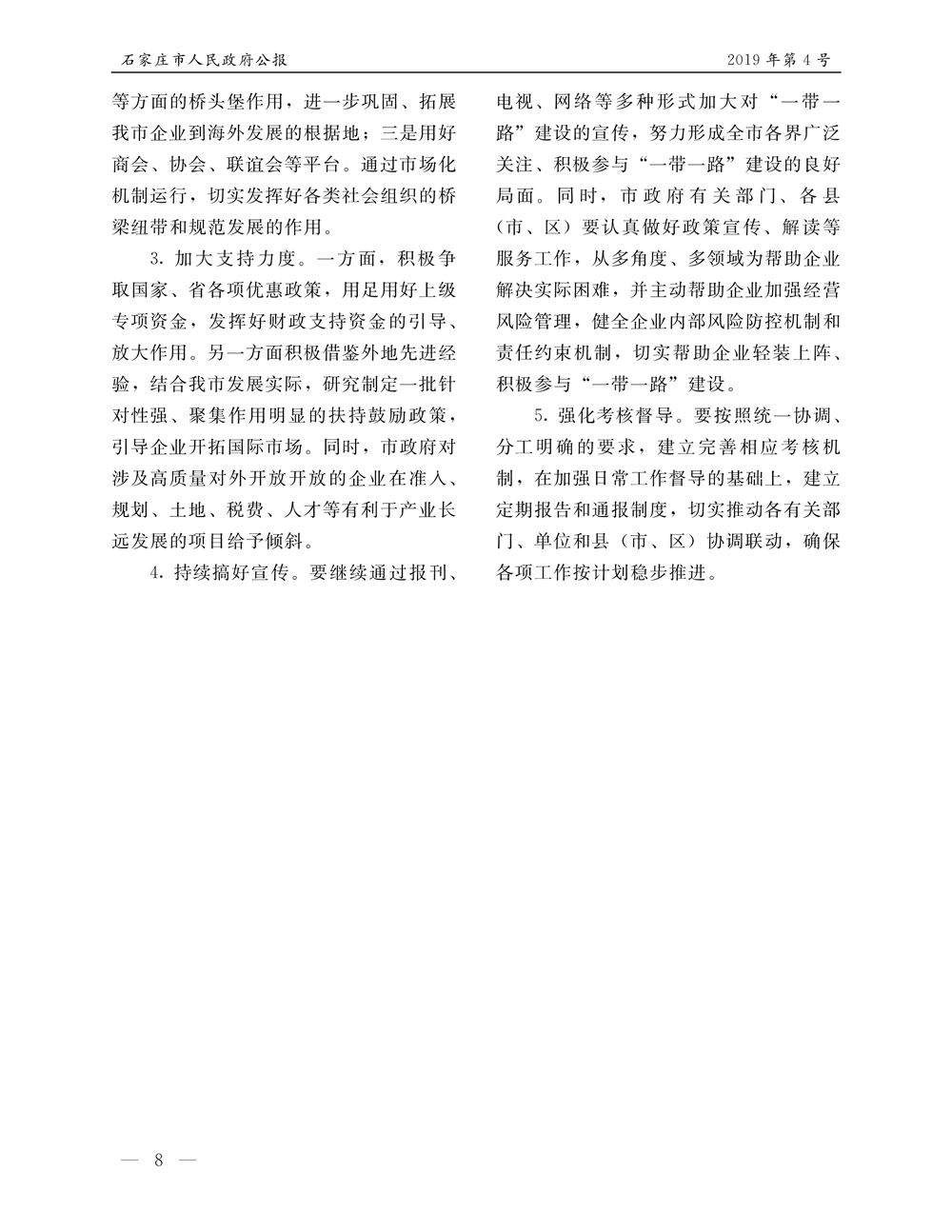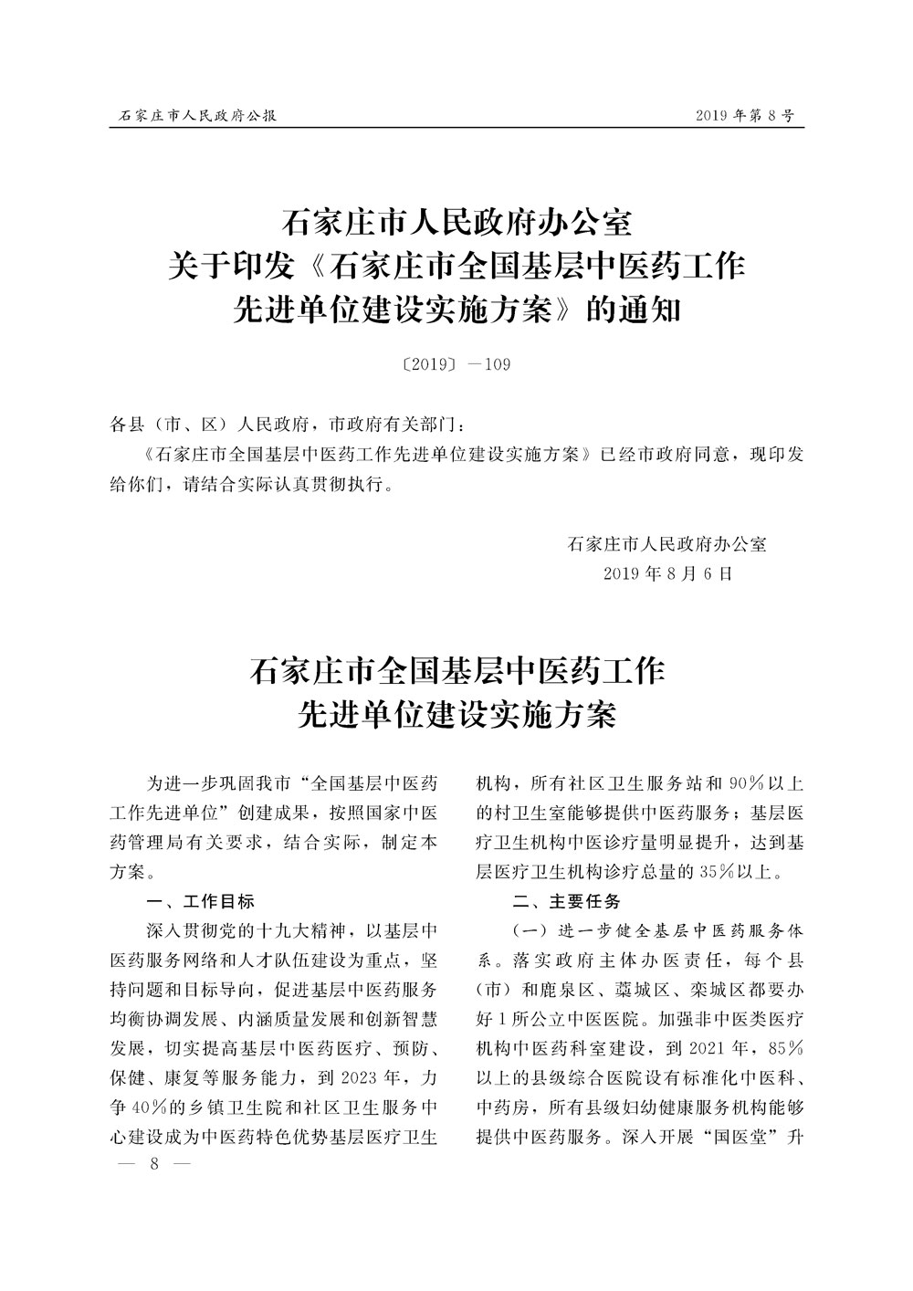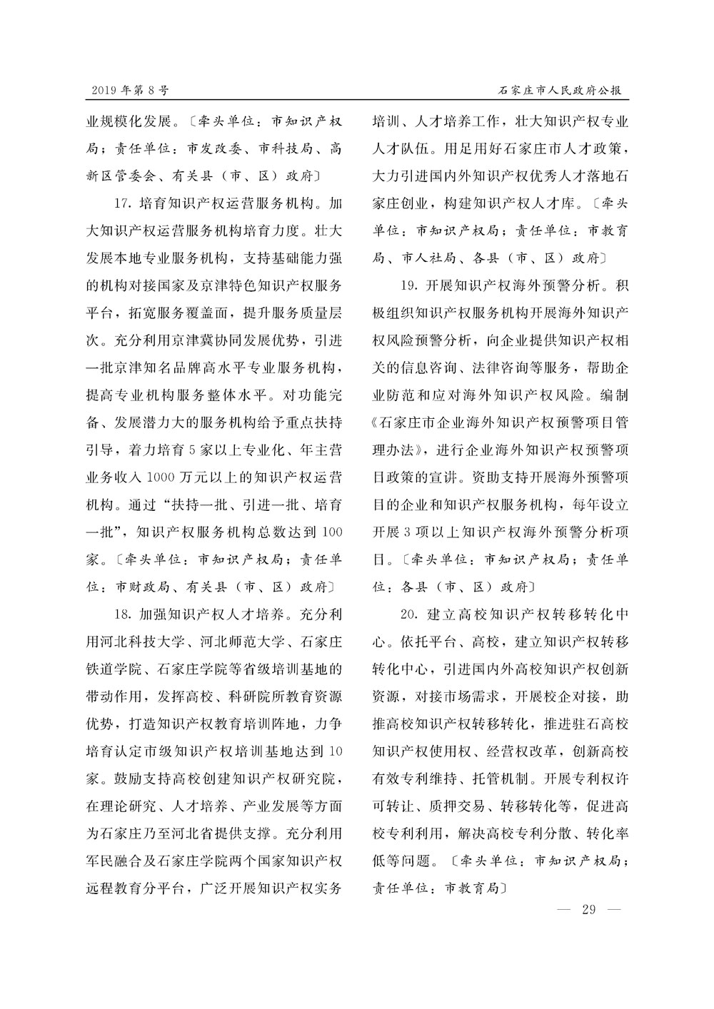 石家莊市人民政府公報2019年第8號