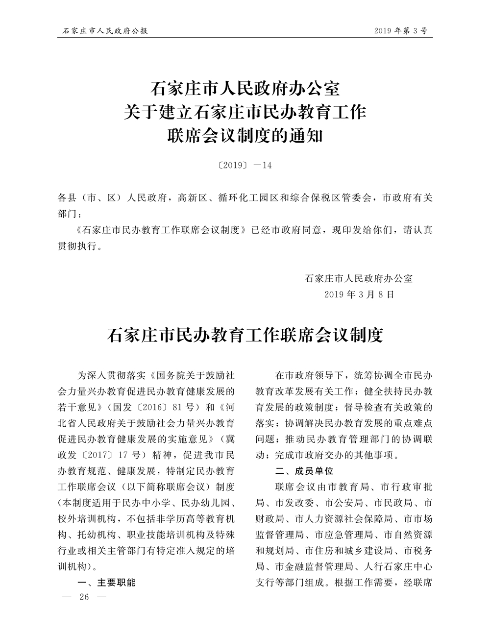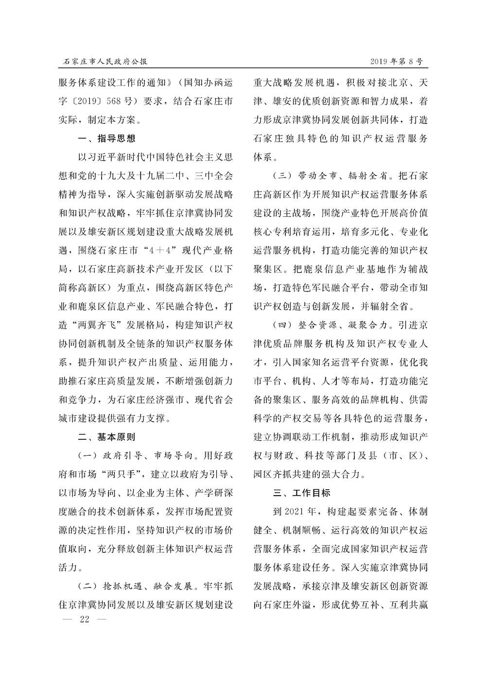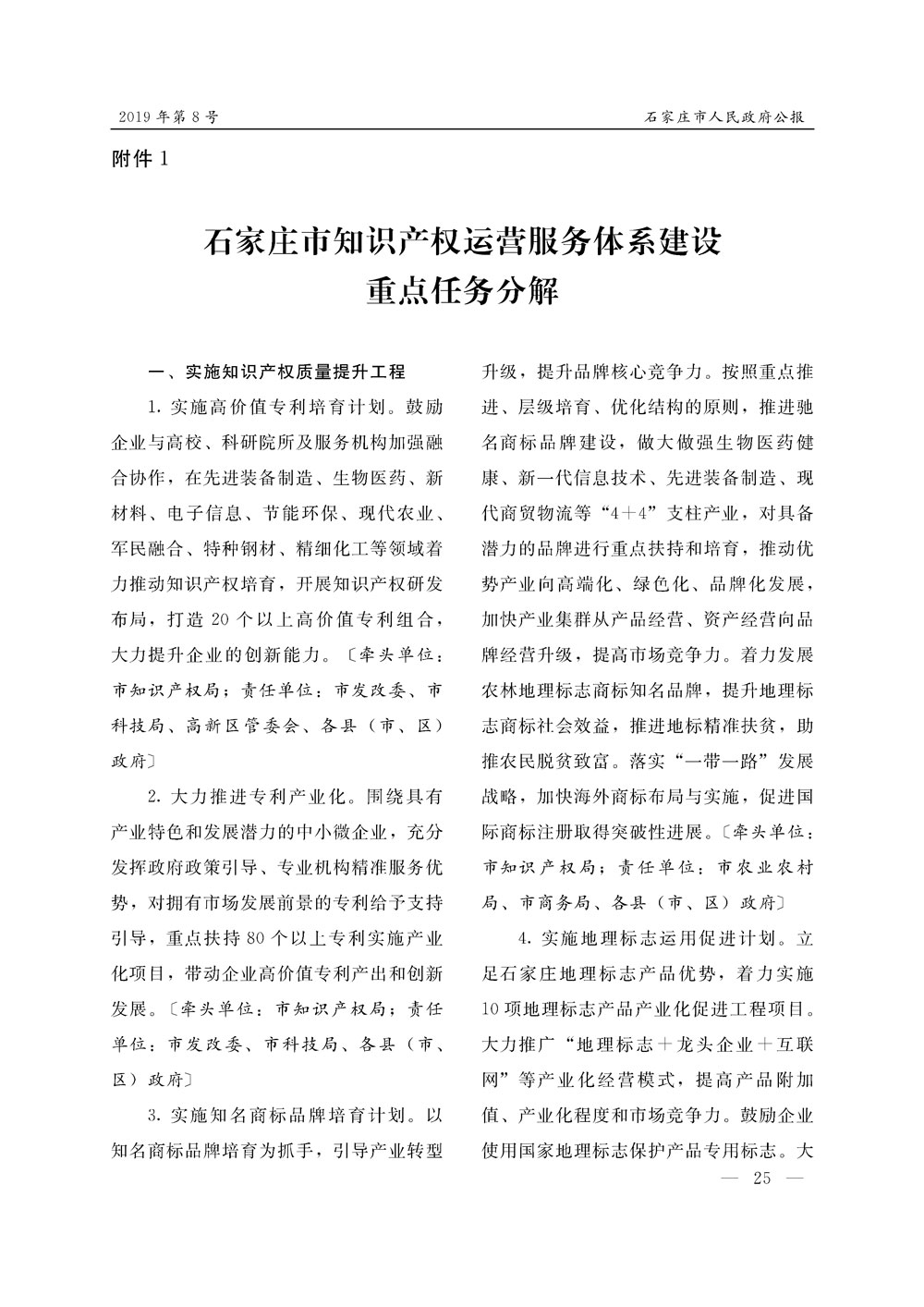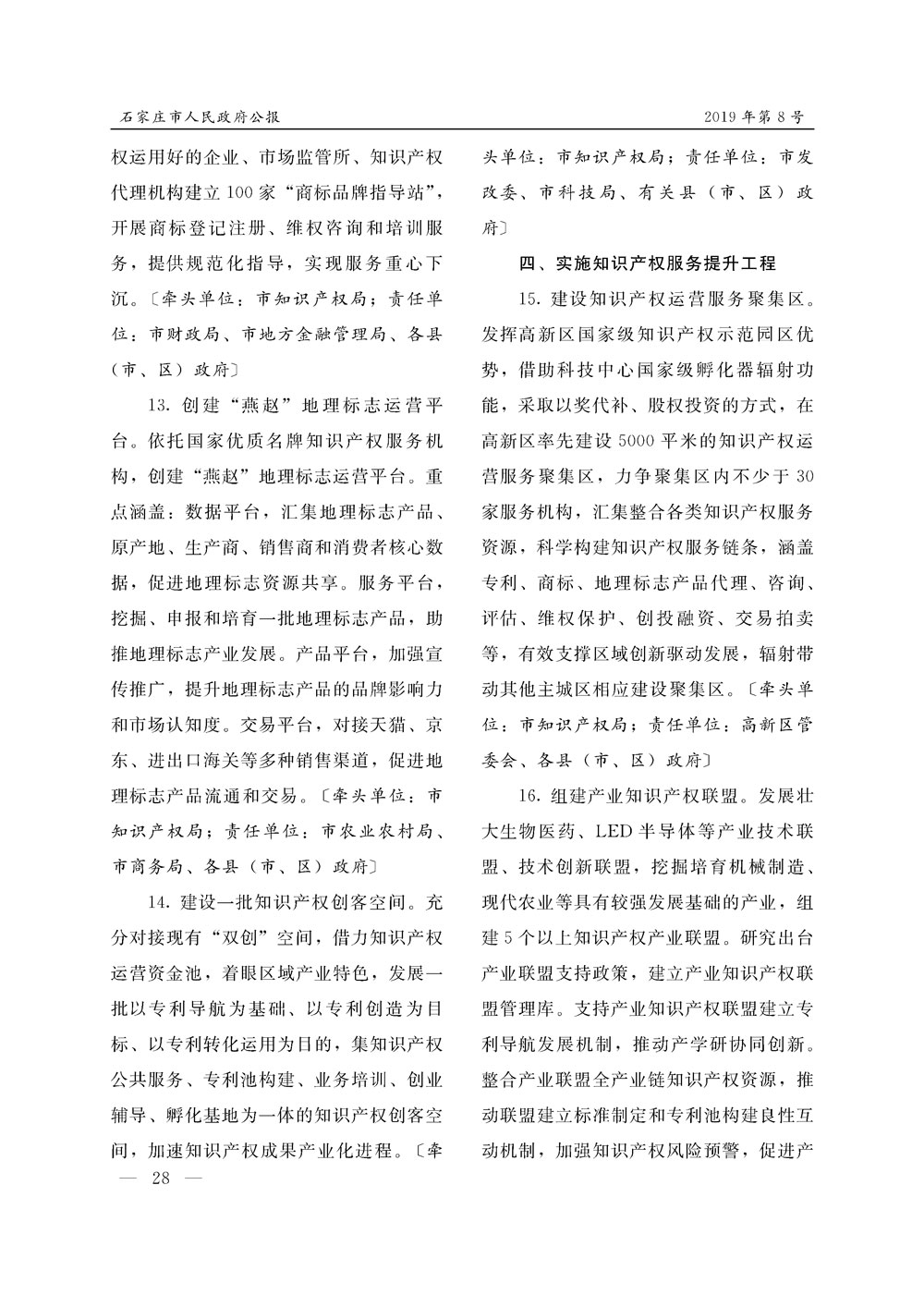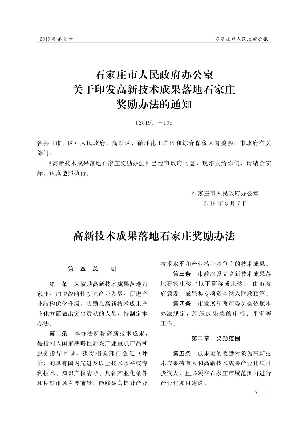石家莊市人民政府公報2019年第8號