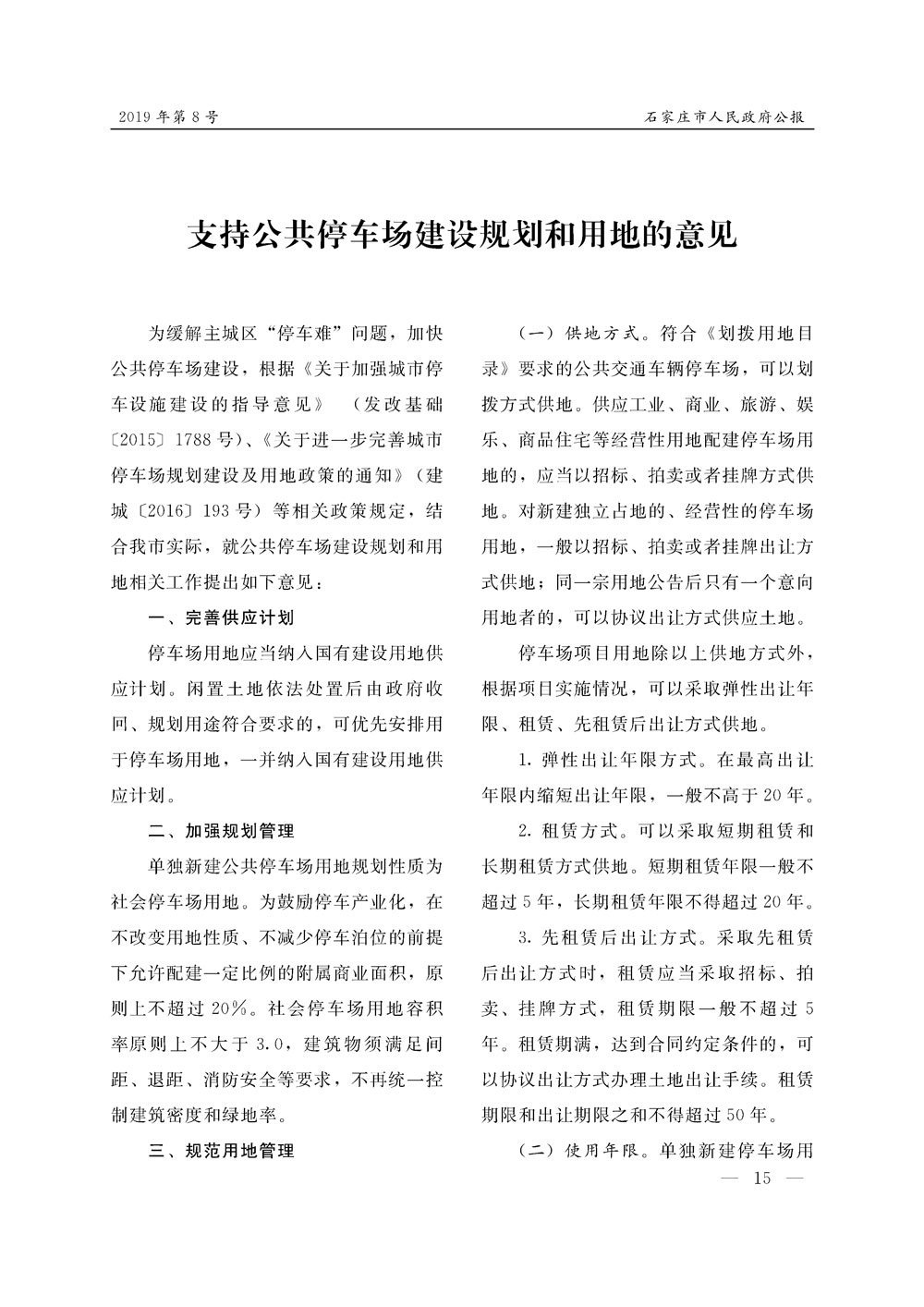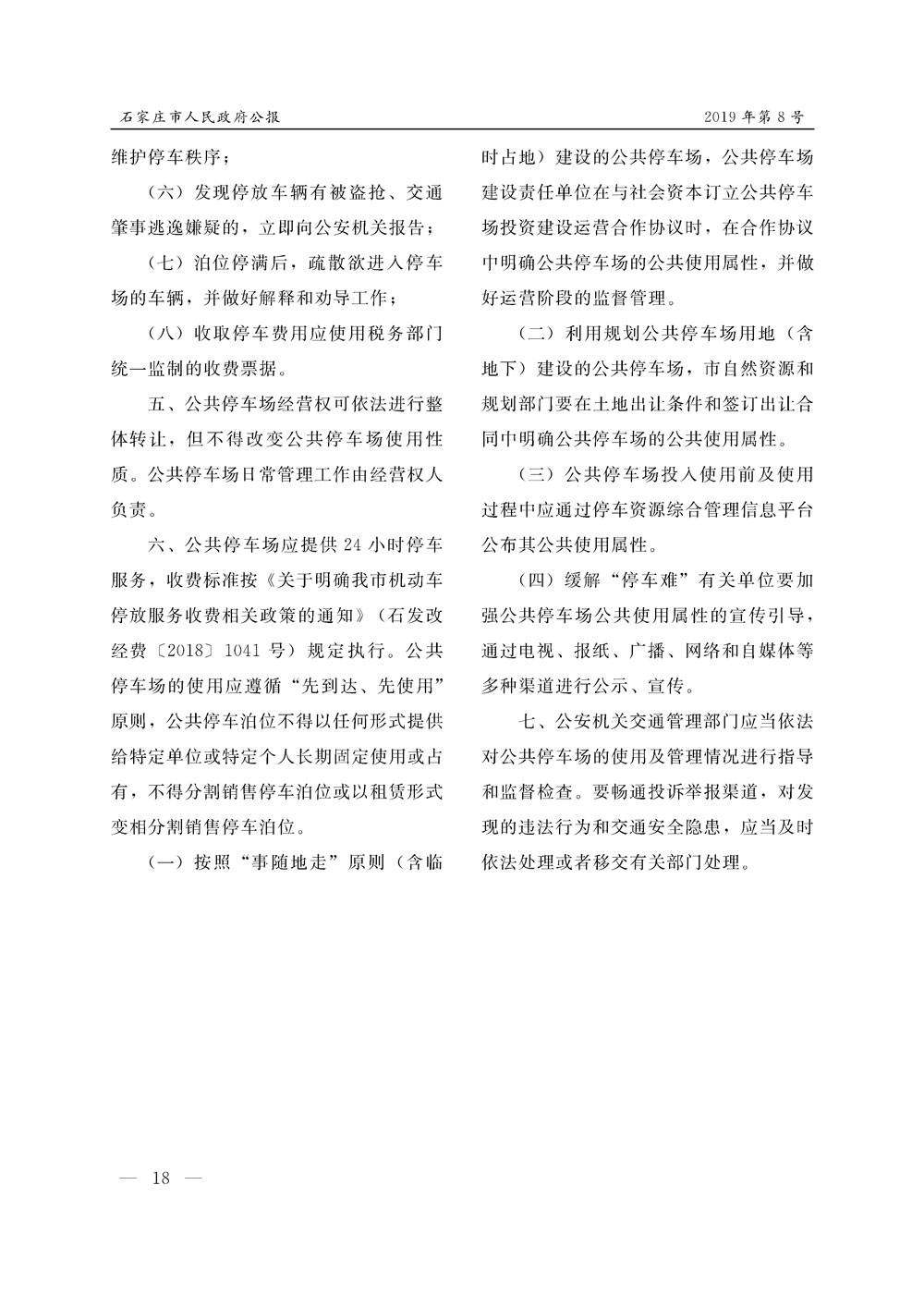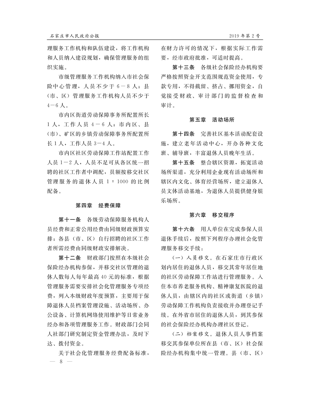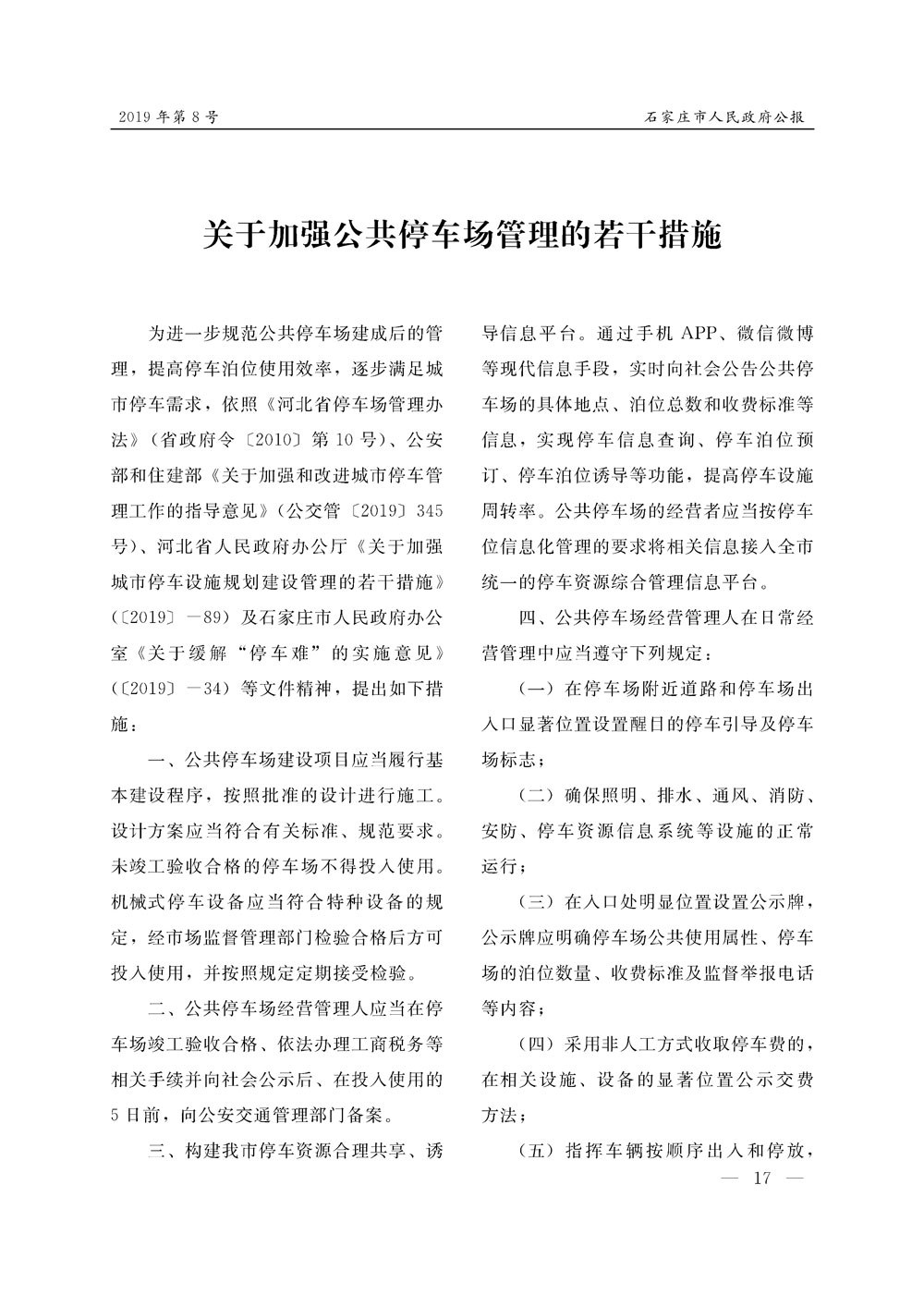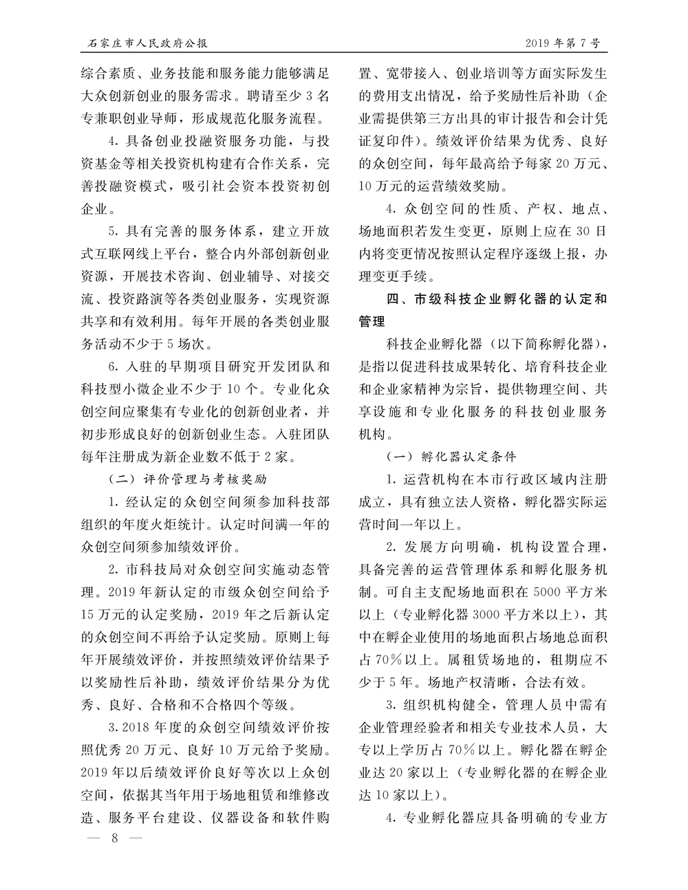 石家莊市人民政府公報2019年第8號