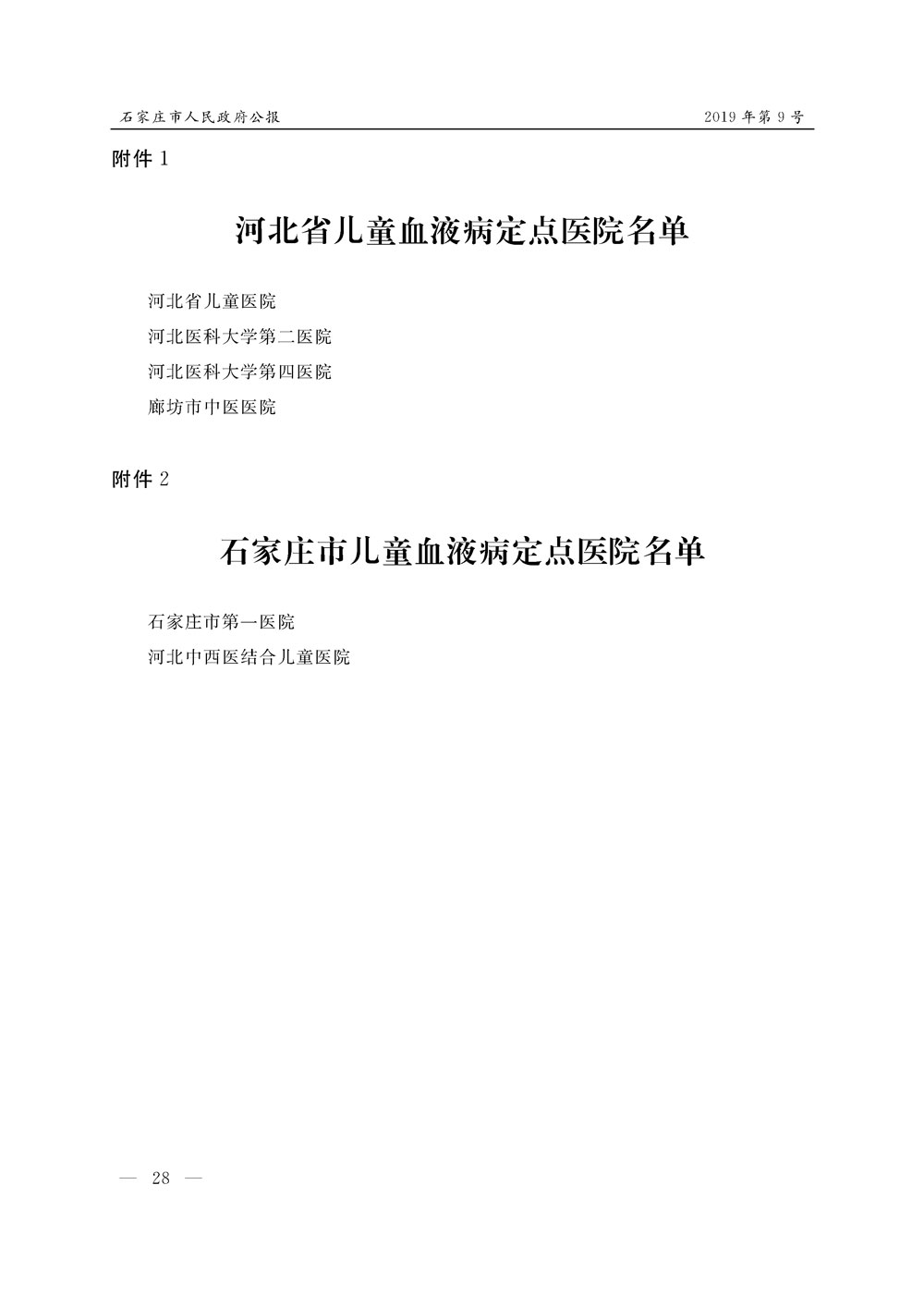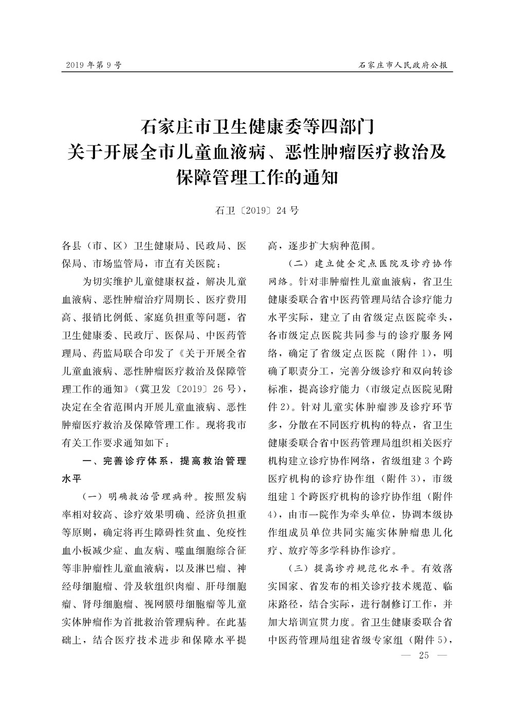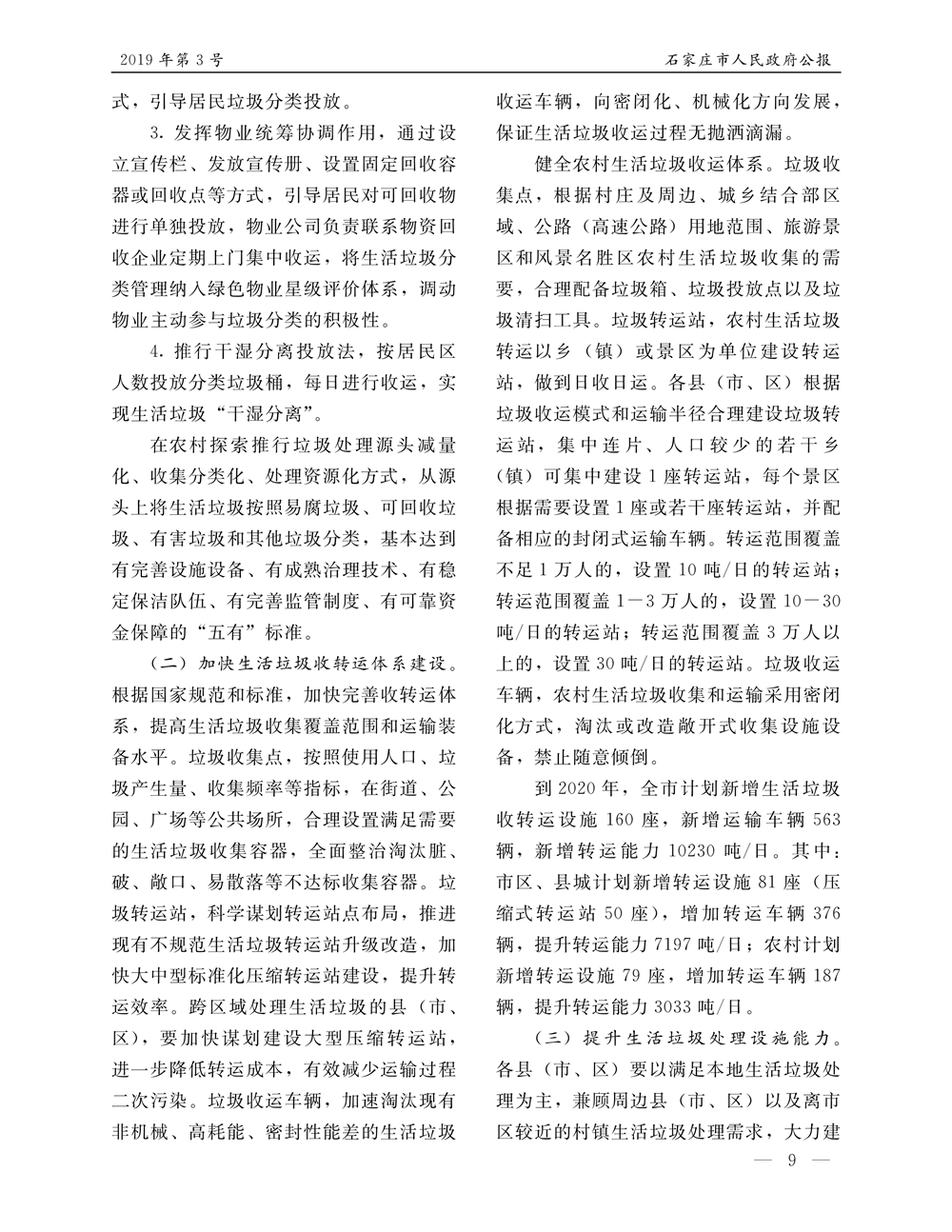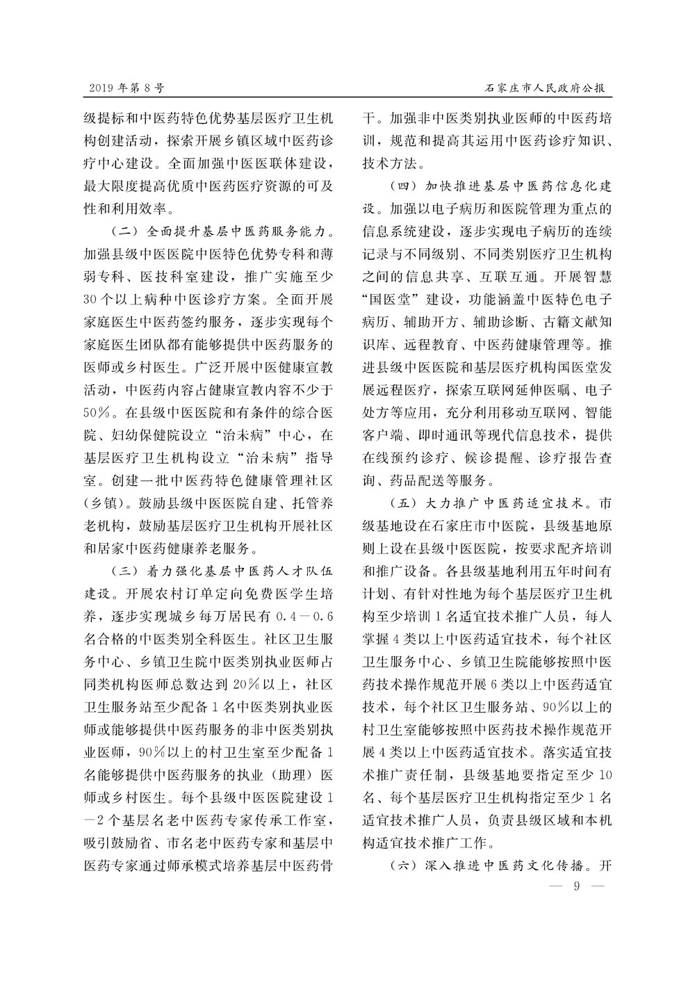 石家莊市人民政府公報2019年第9號