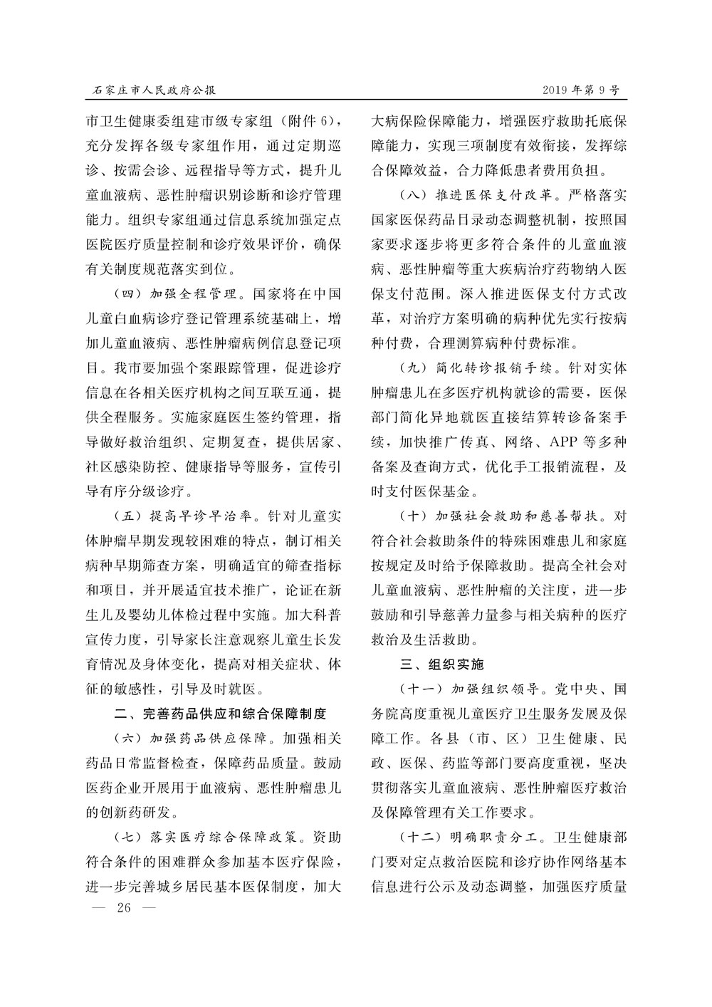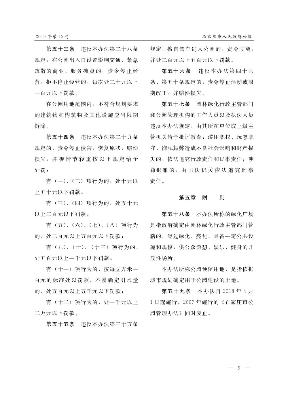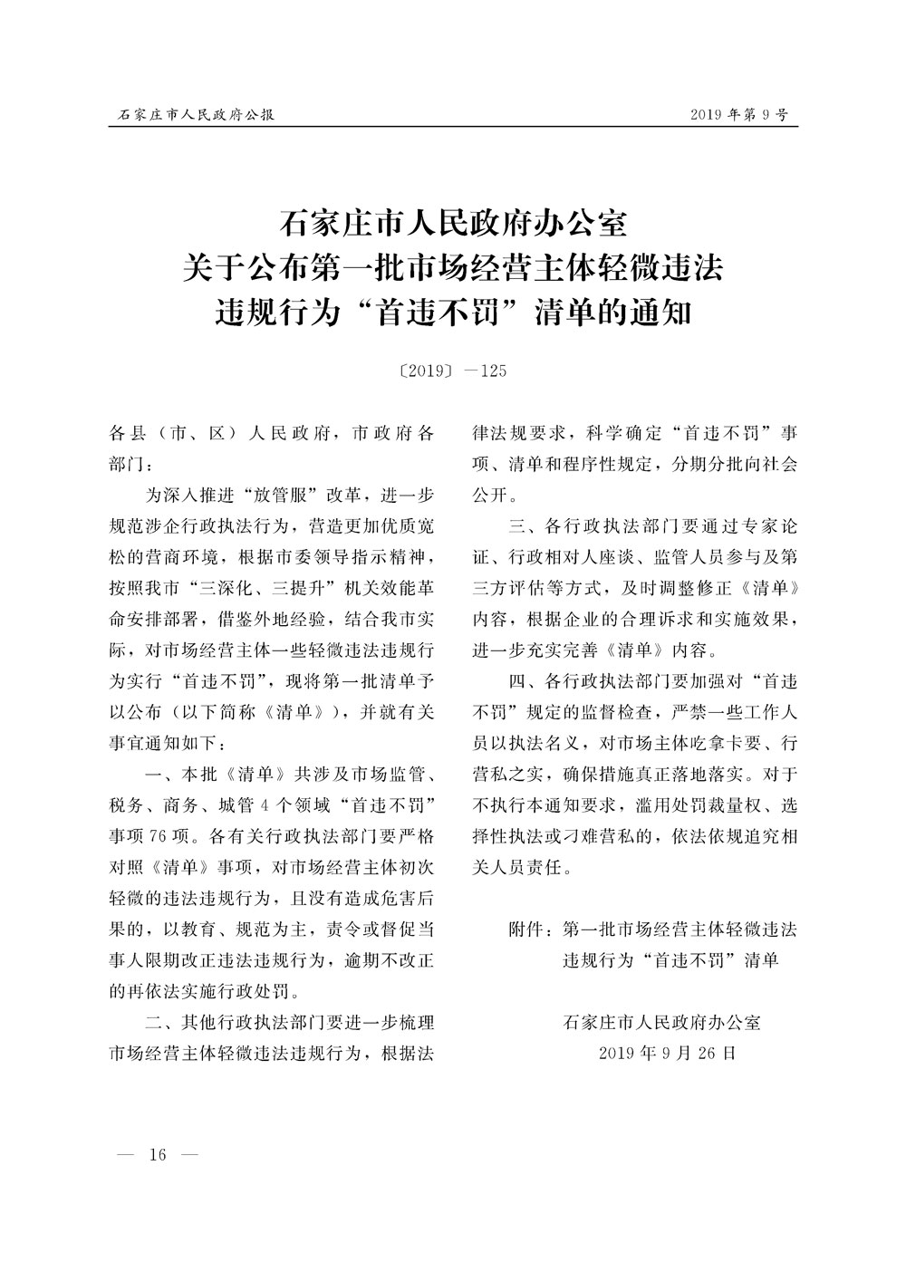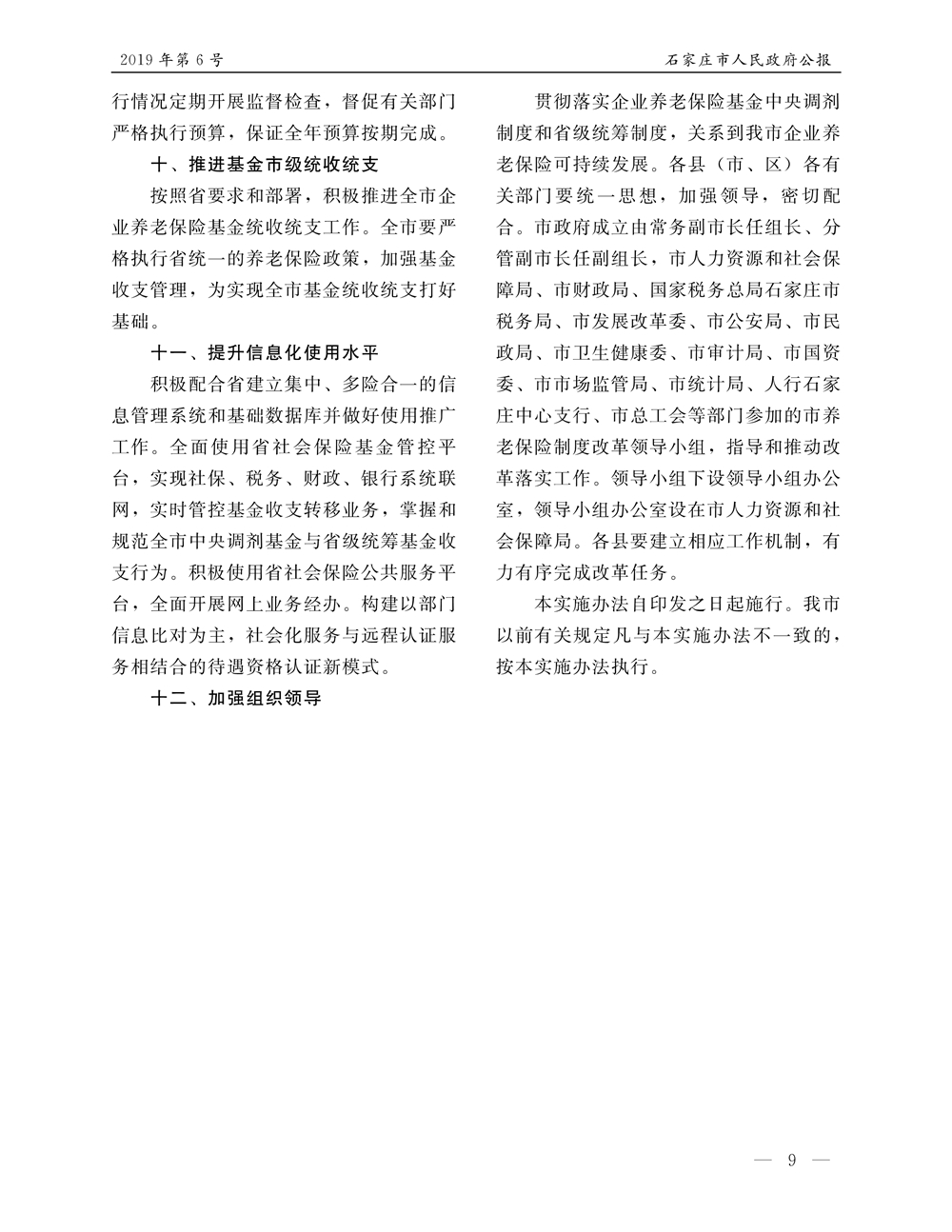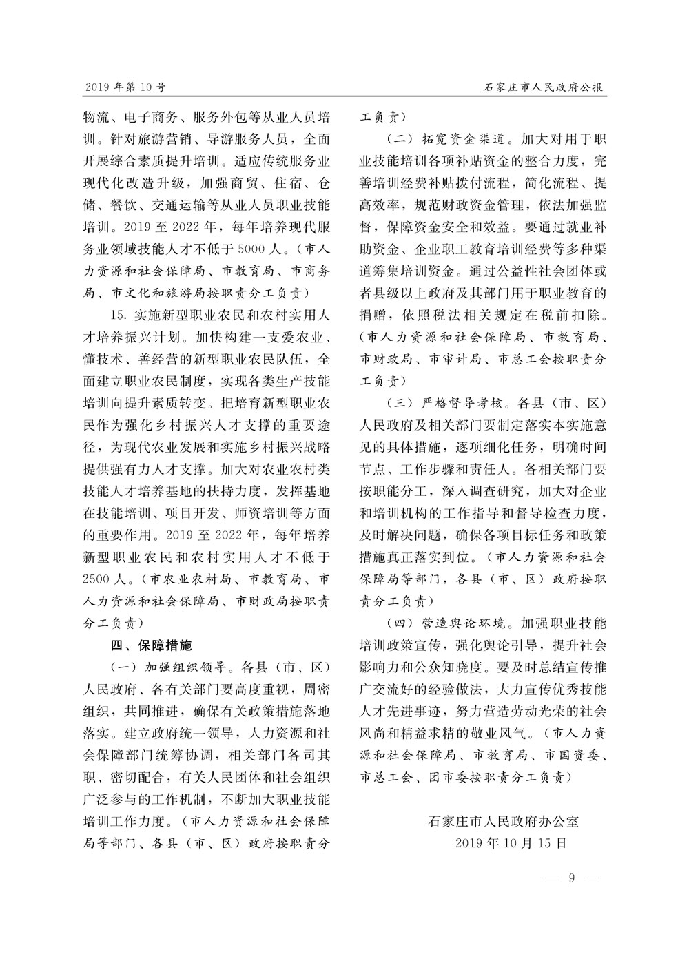 石家莊市人民政府公報2019年第9號