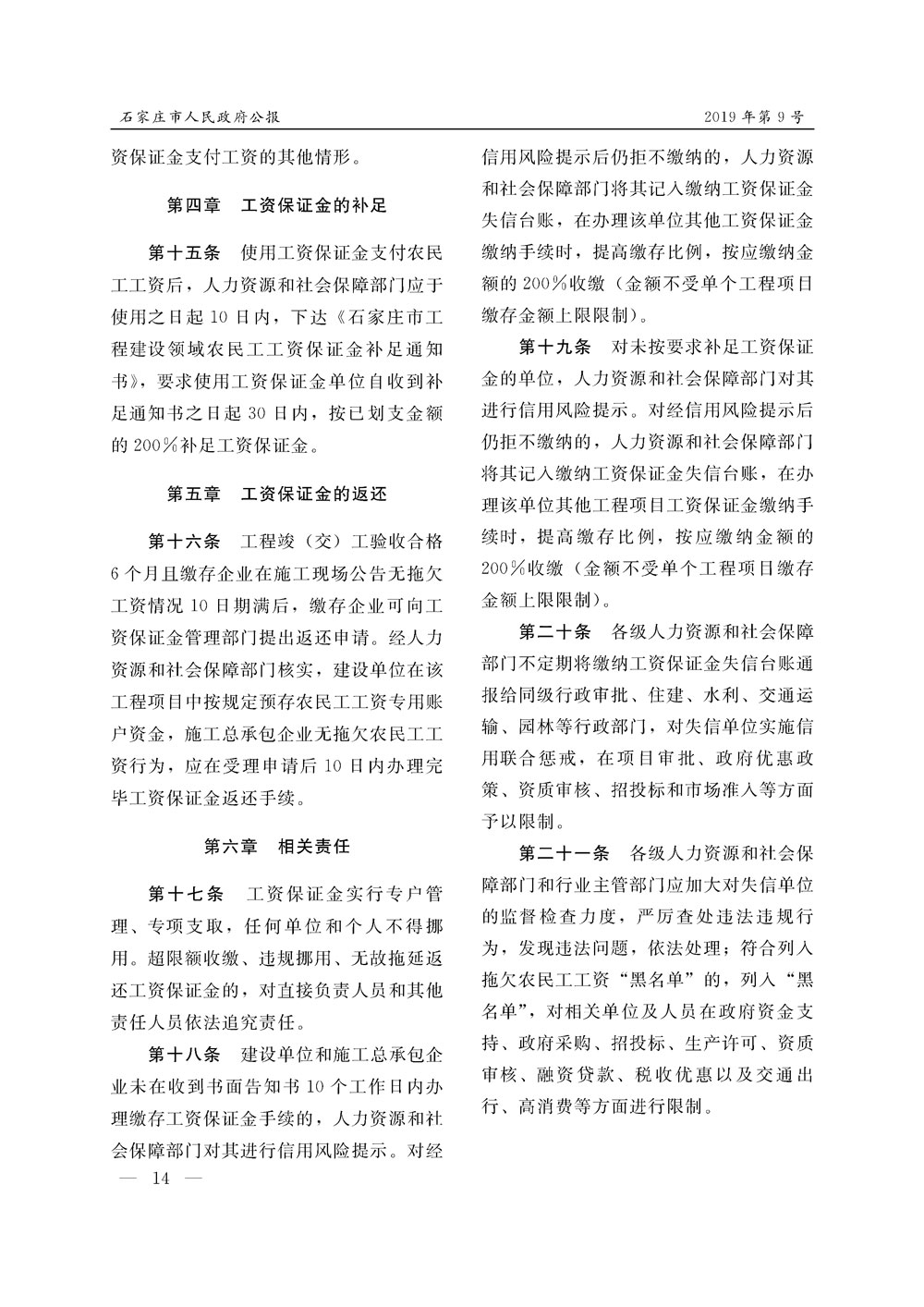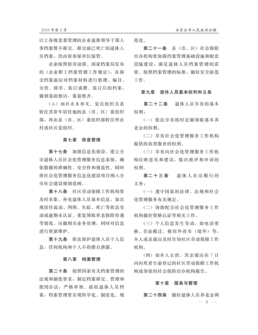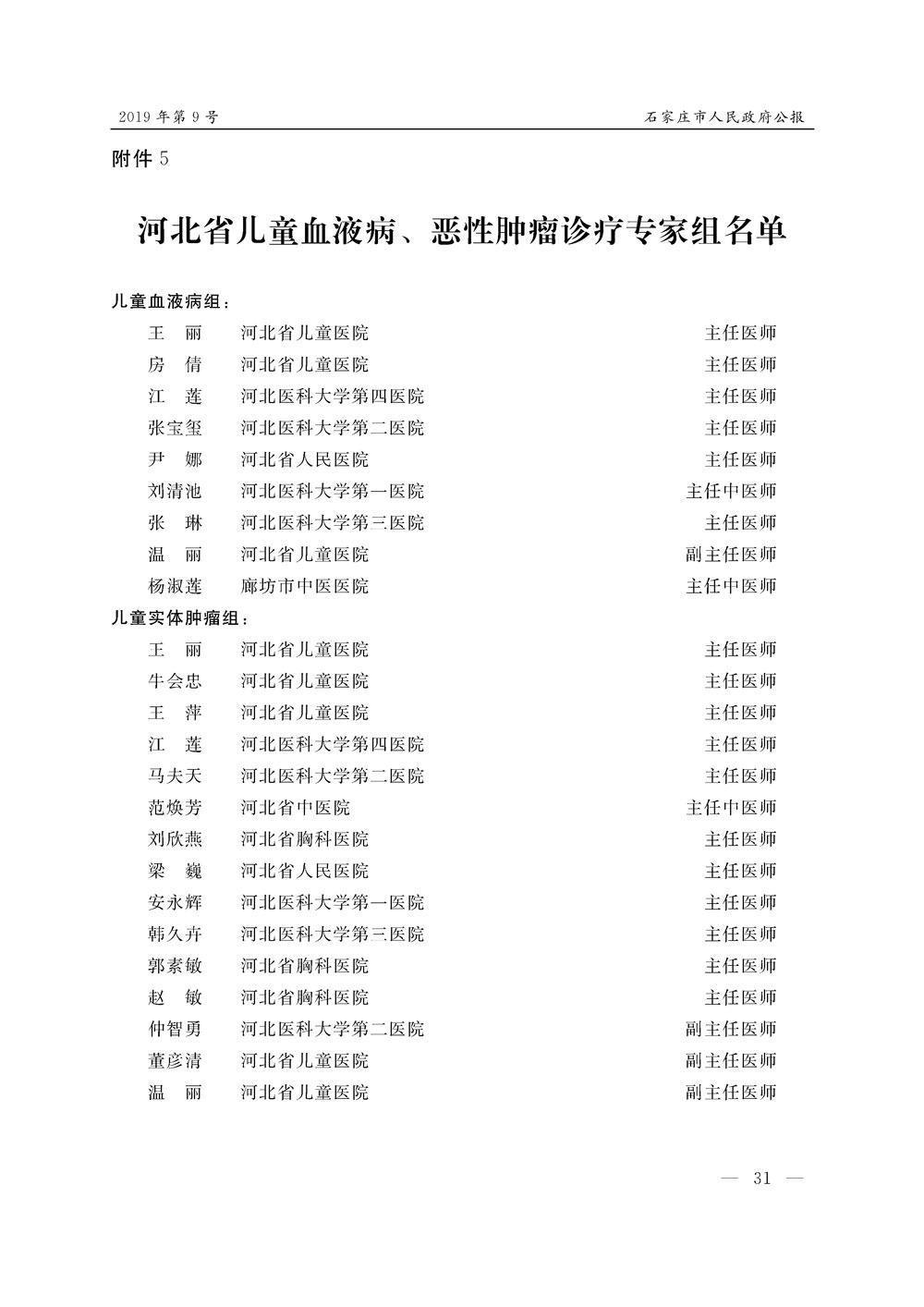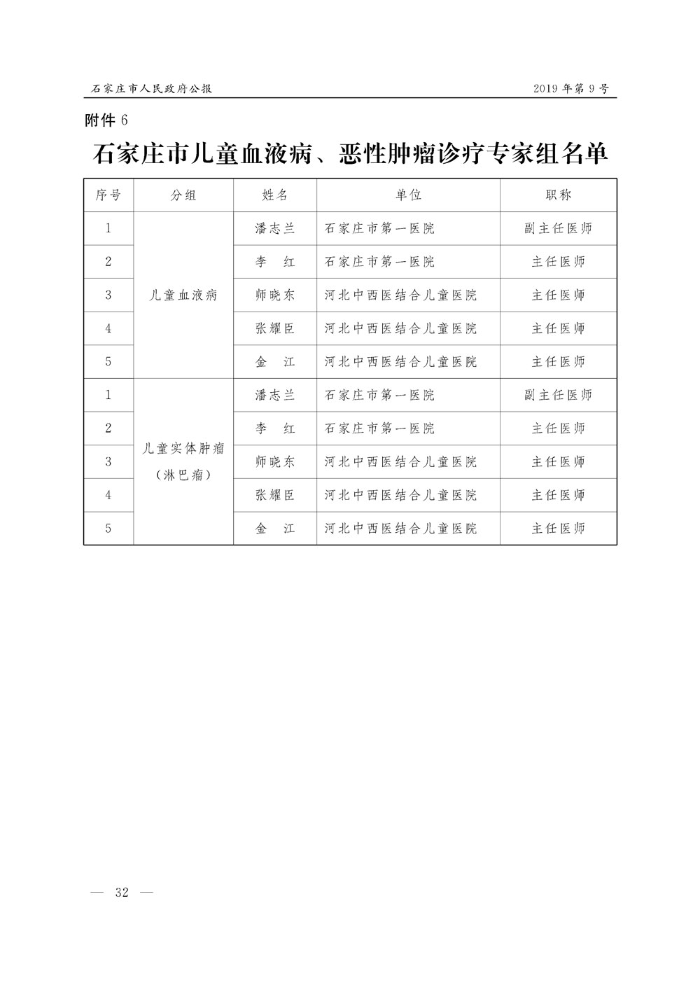 石家莊市人民政府公報2019年第9號