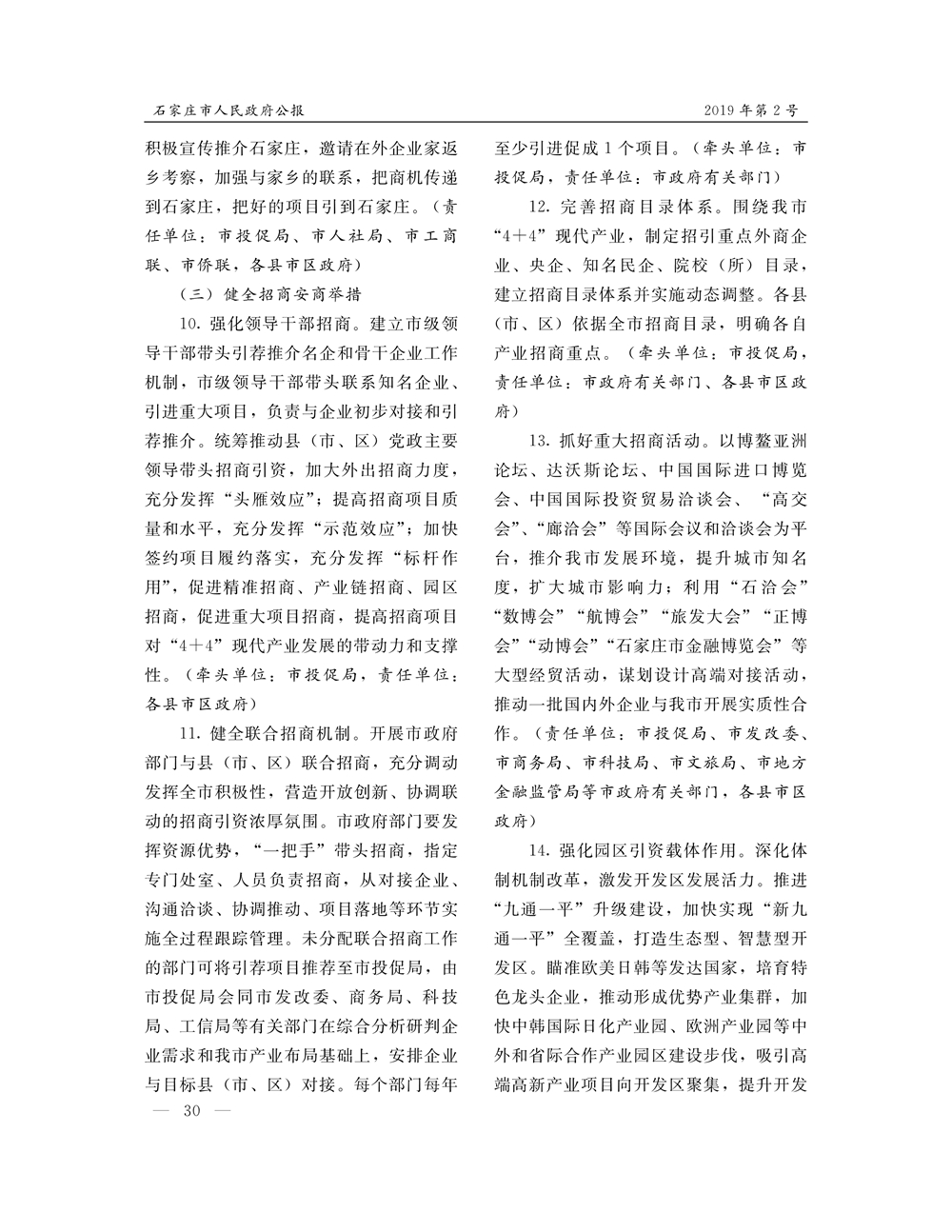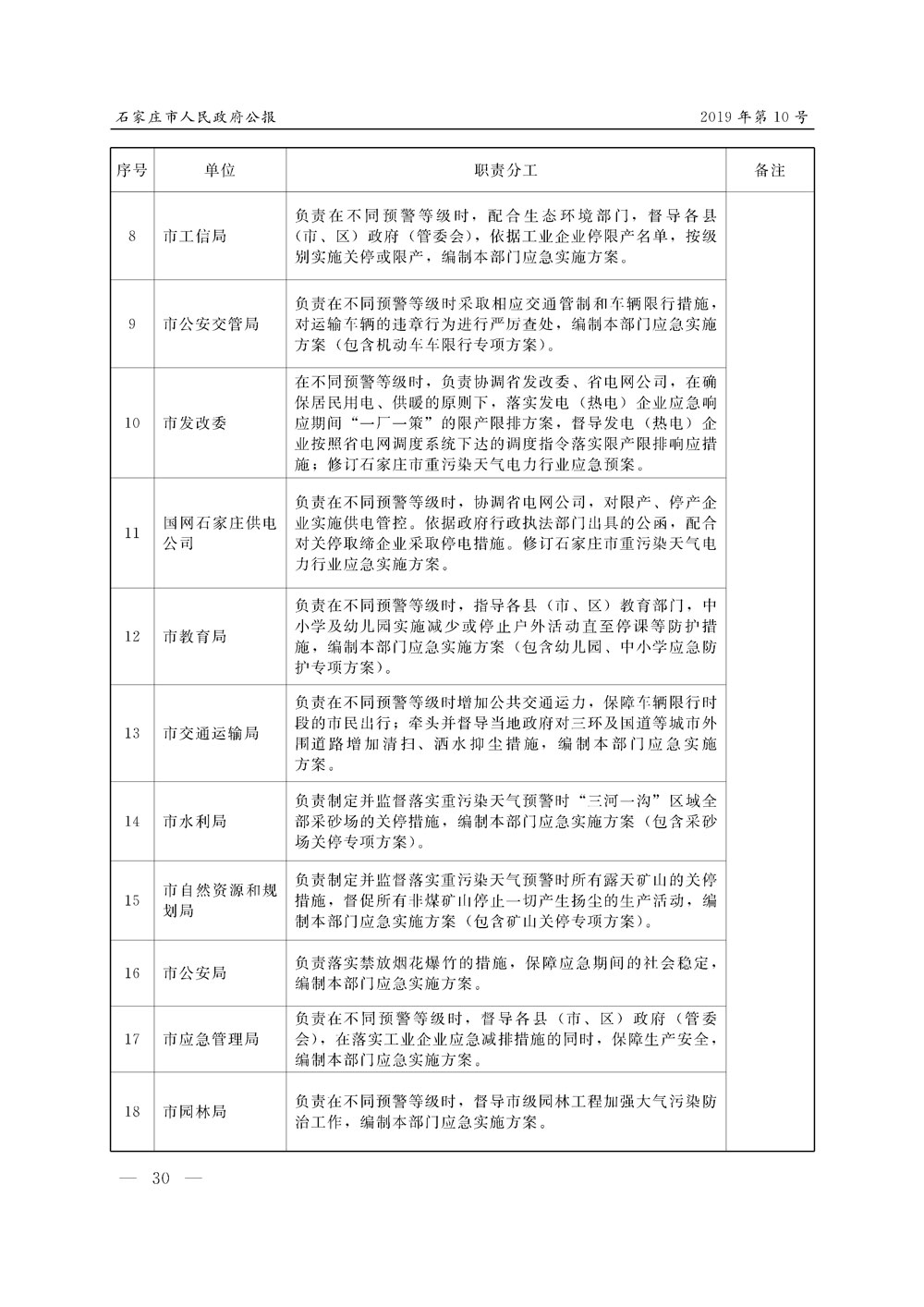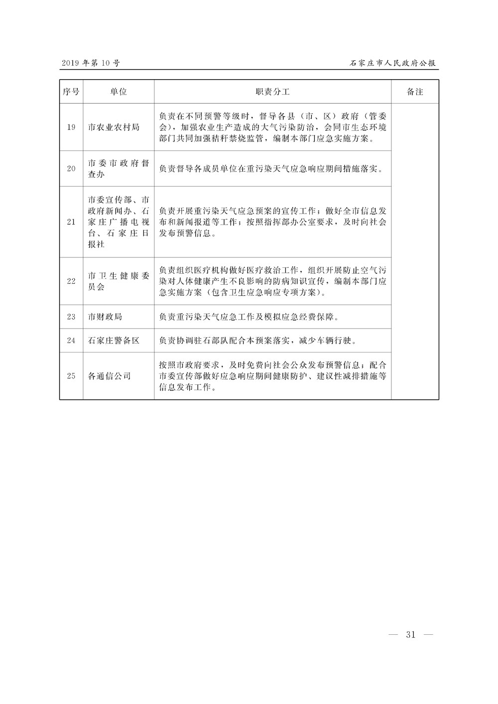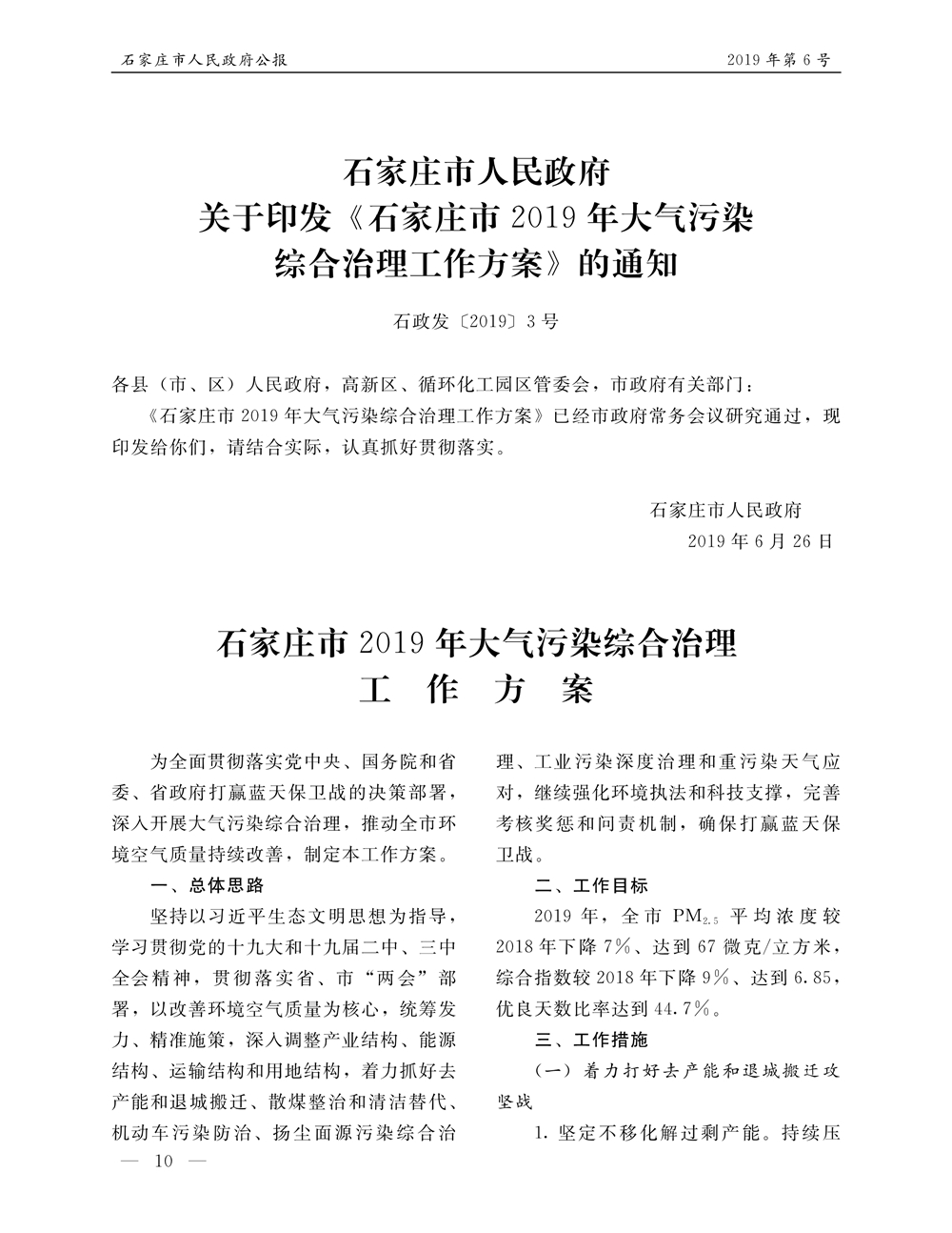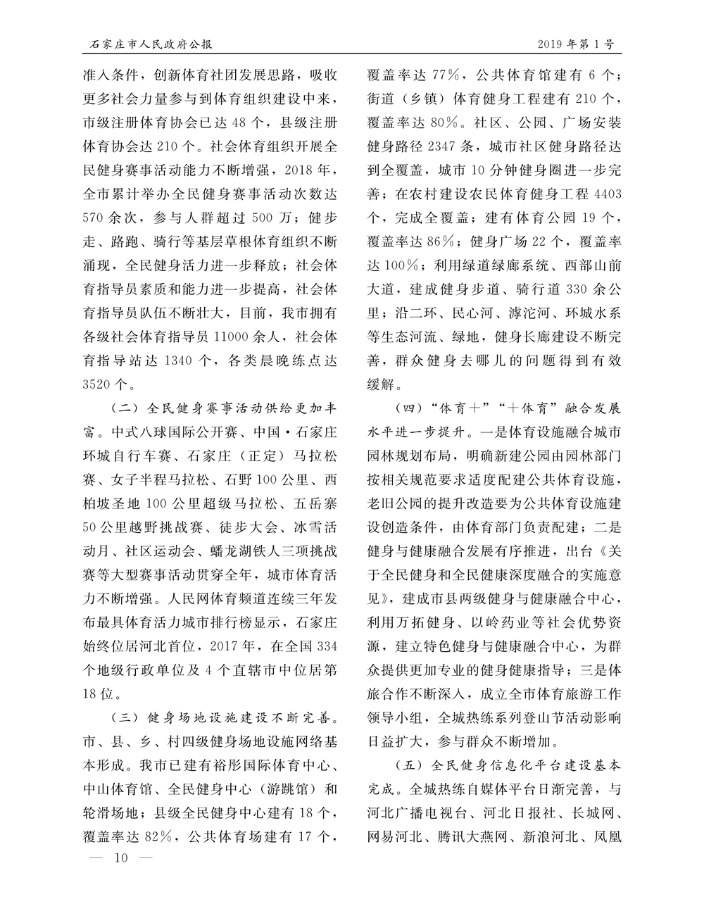 石家莊市人民政府公報2019年第10號