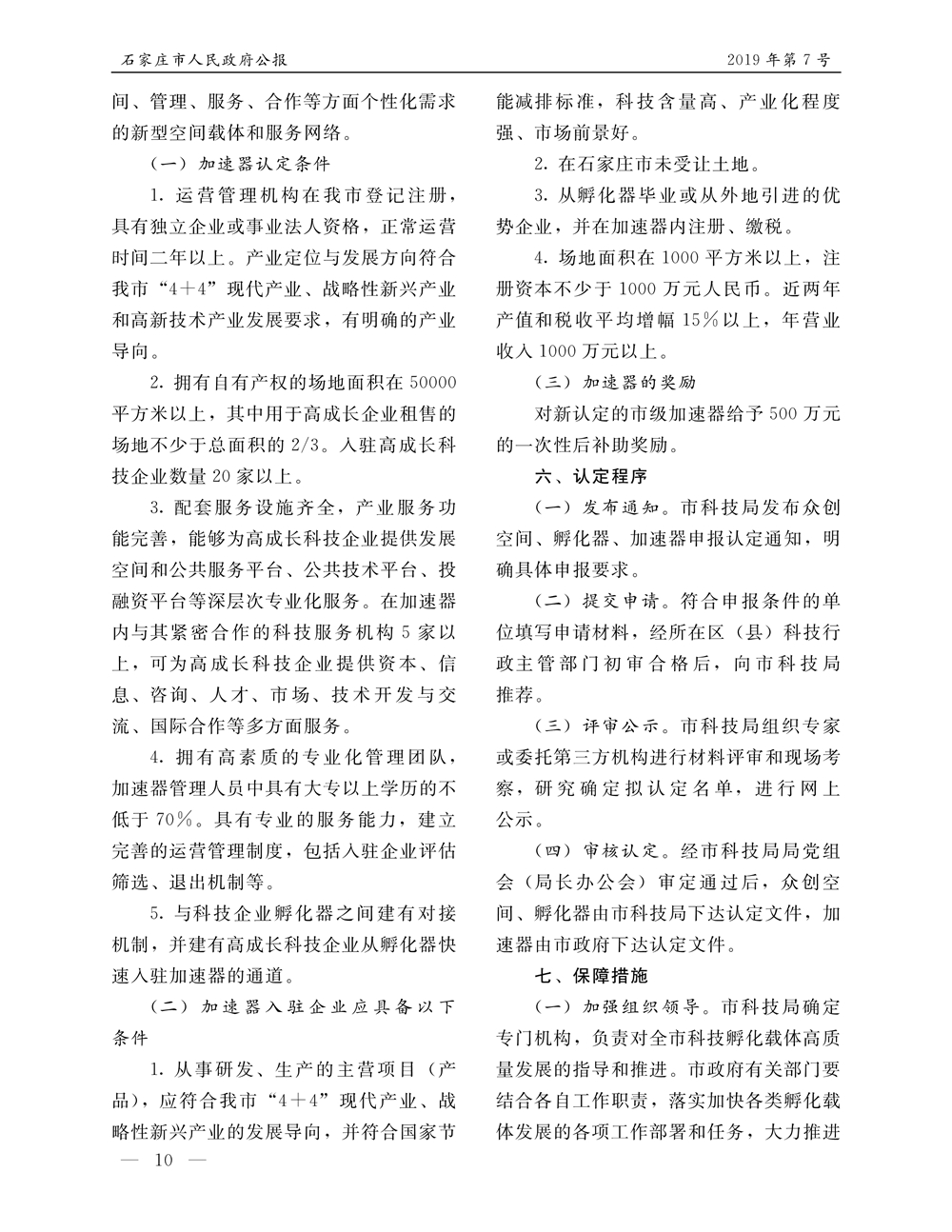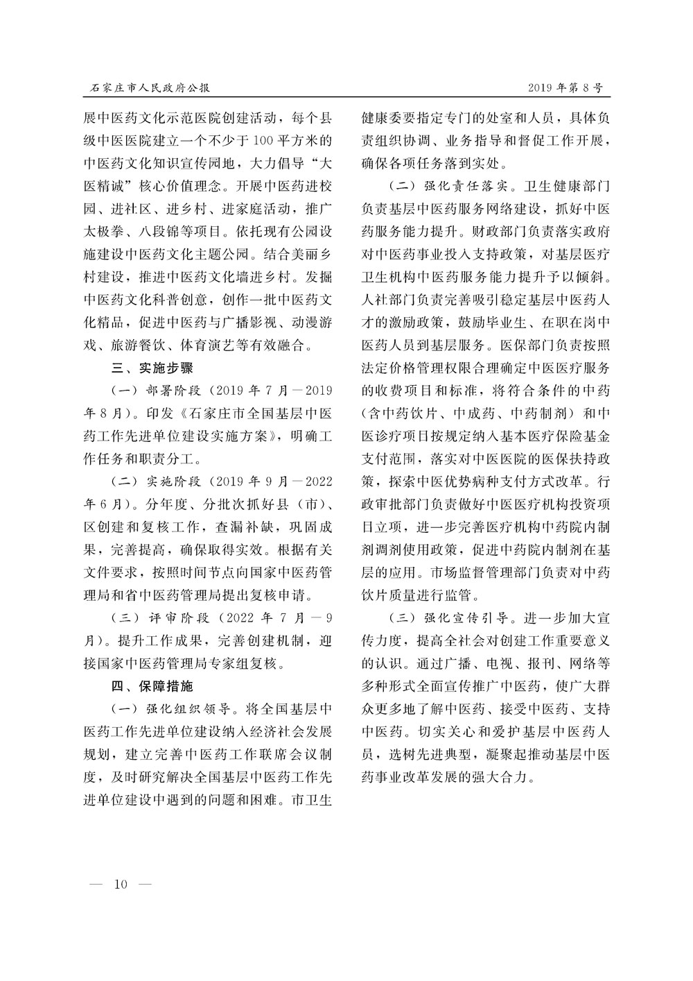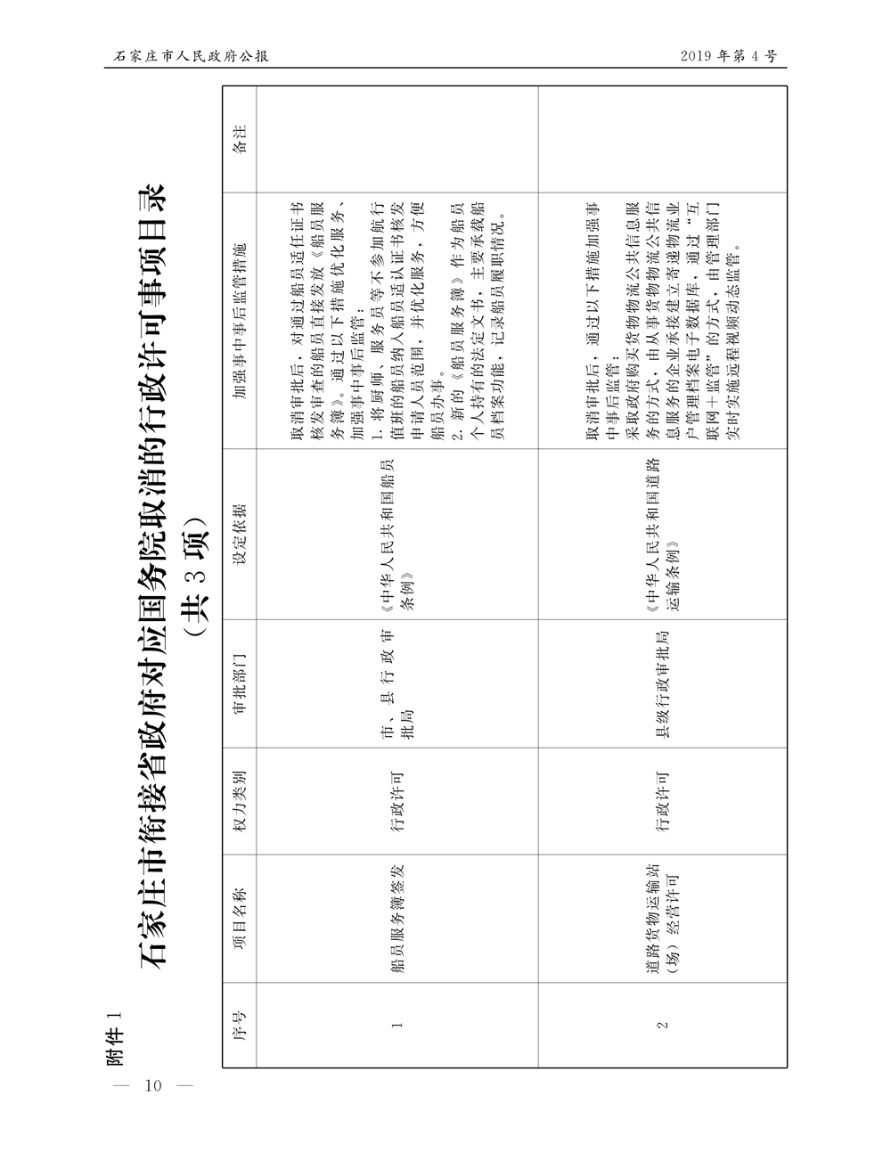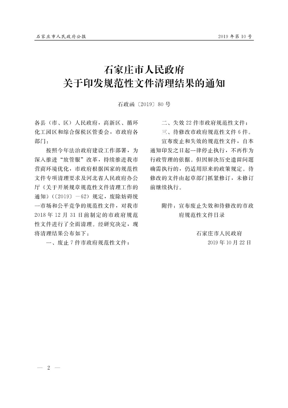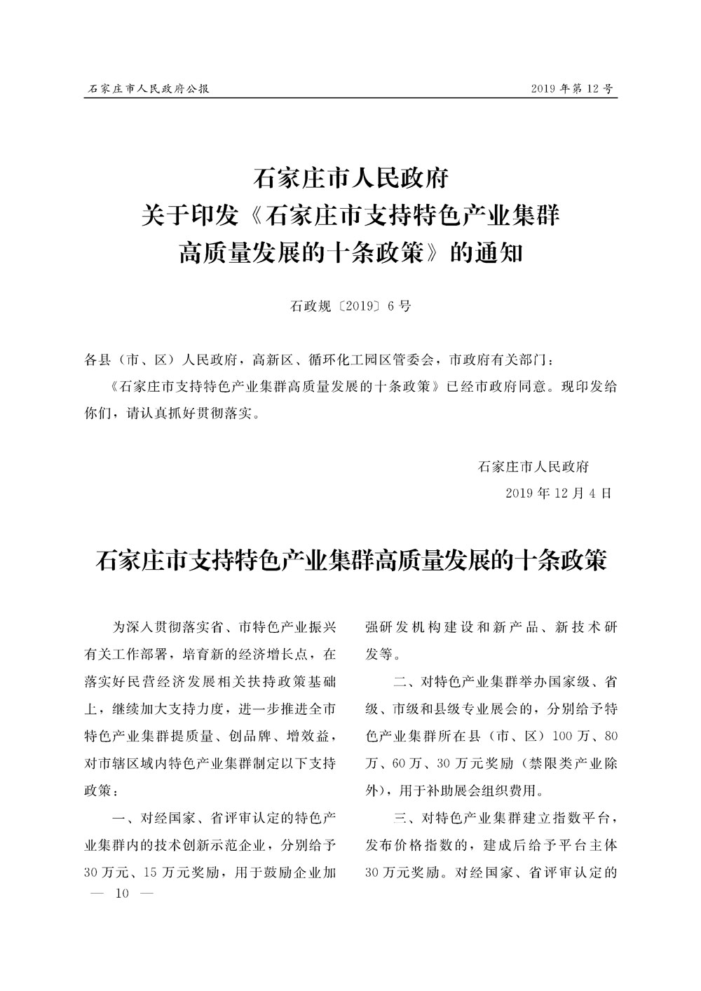 石家莊市人民政府公報2019年第10號