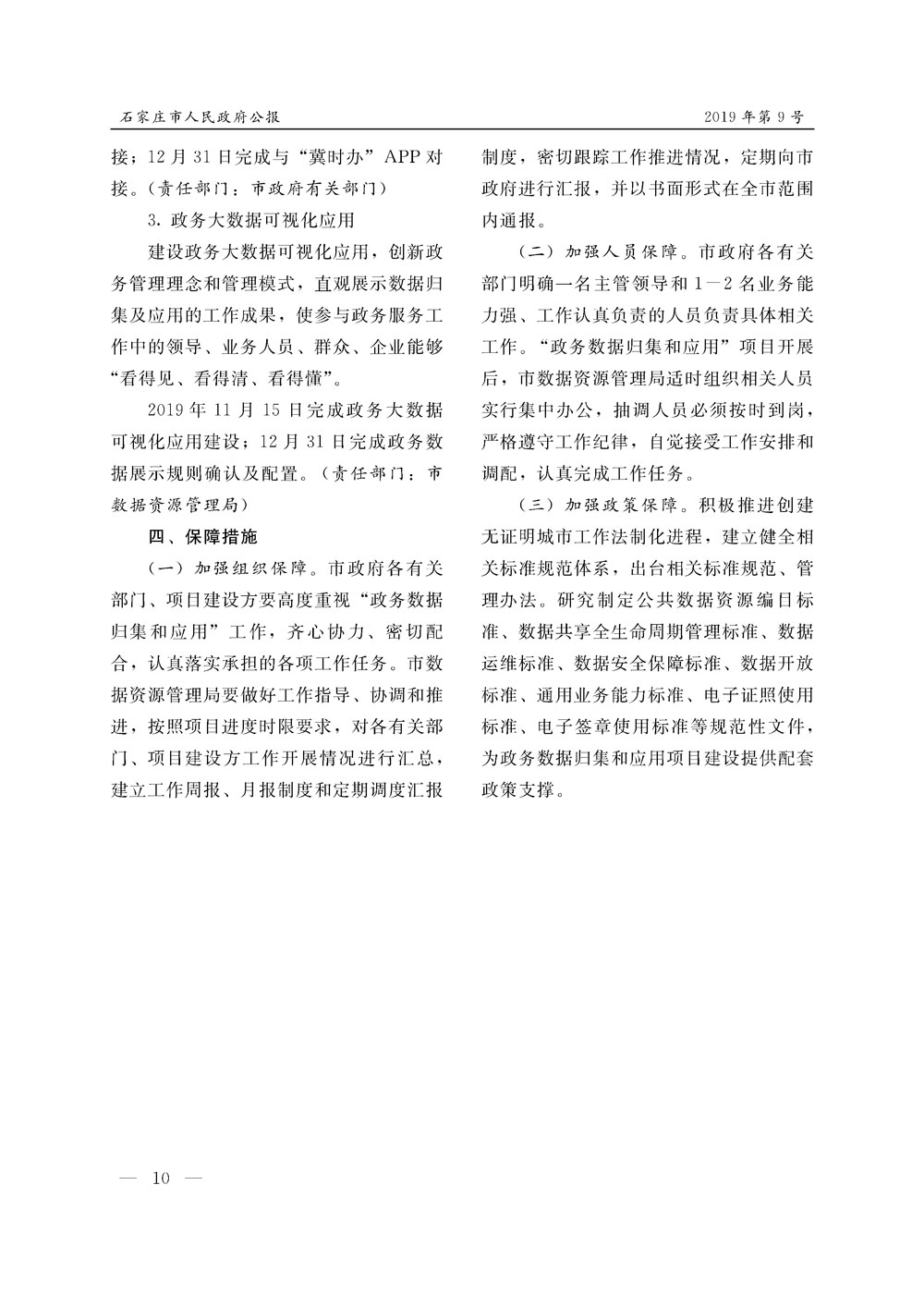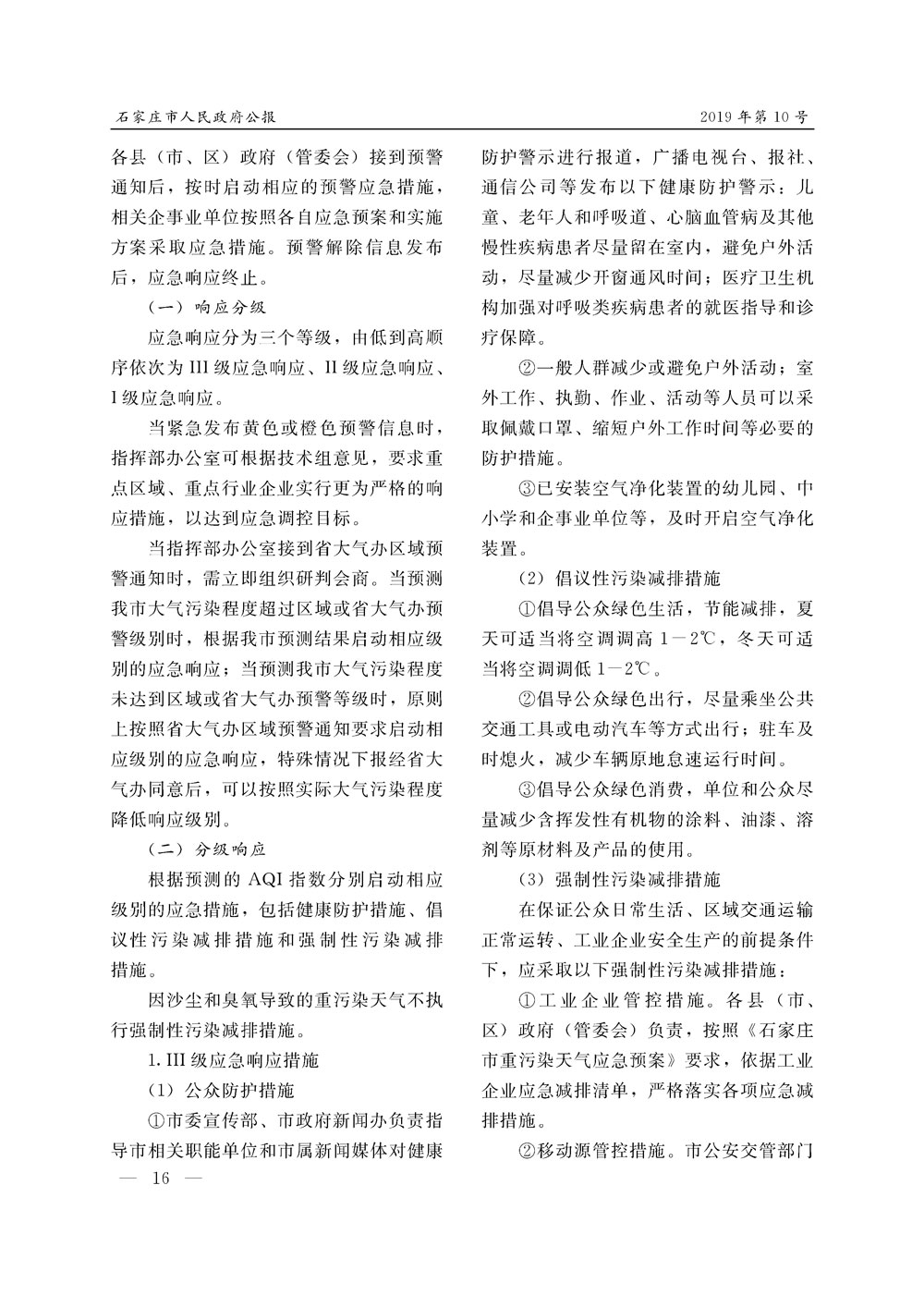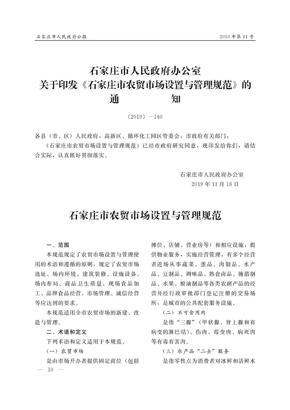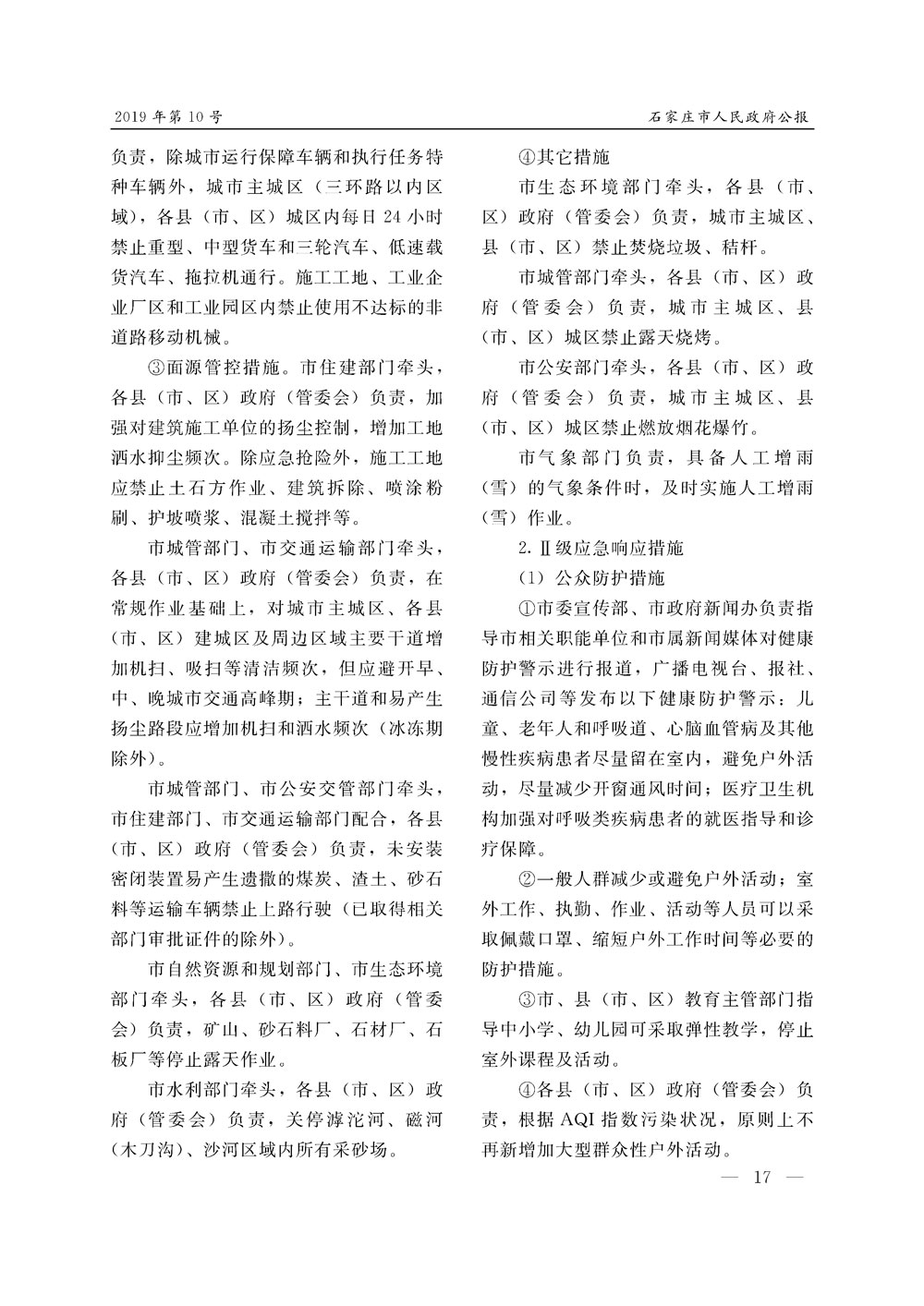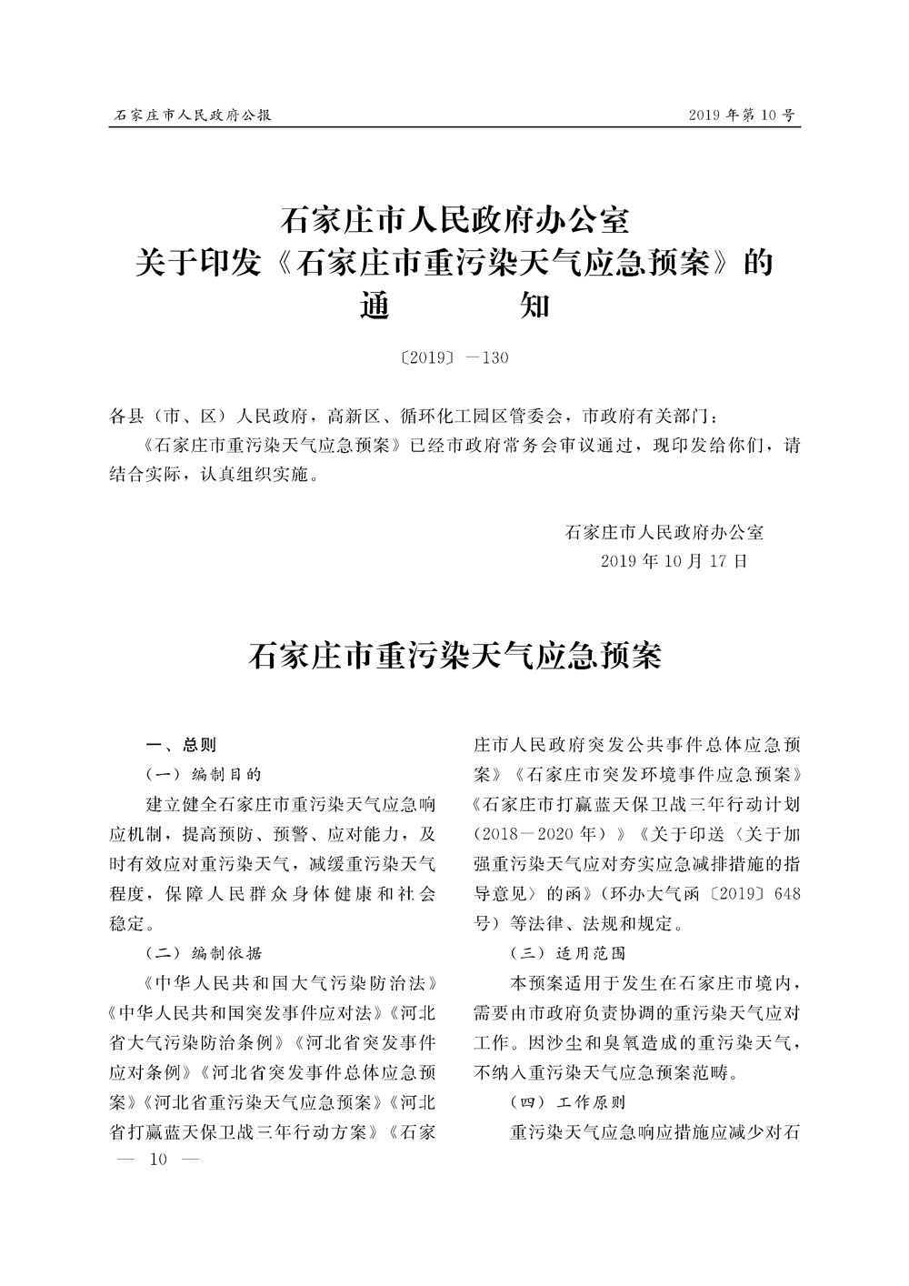 石家莊市人民政府公報2019年第10號