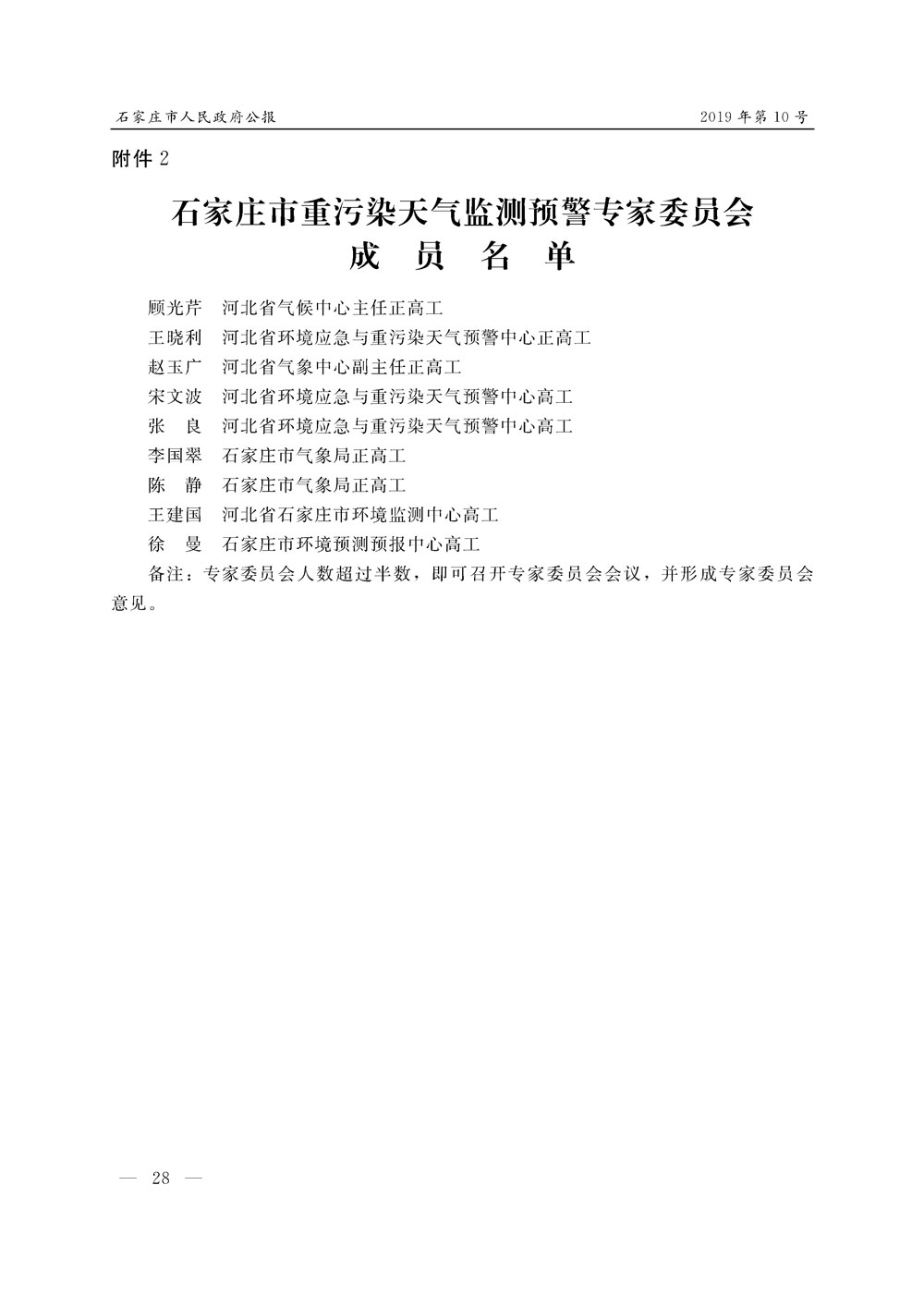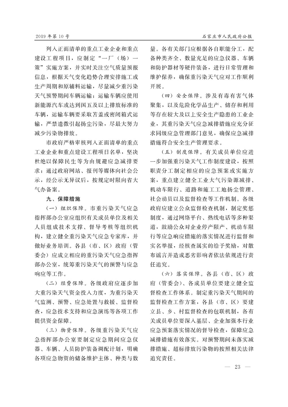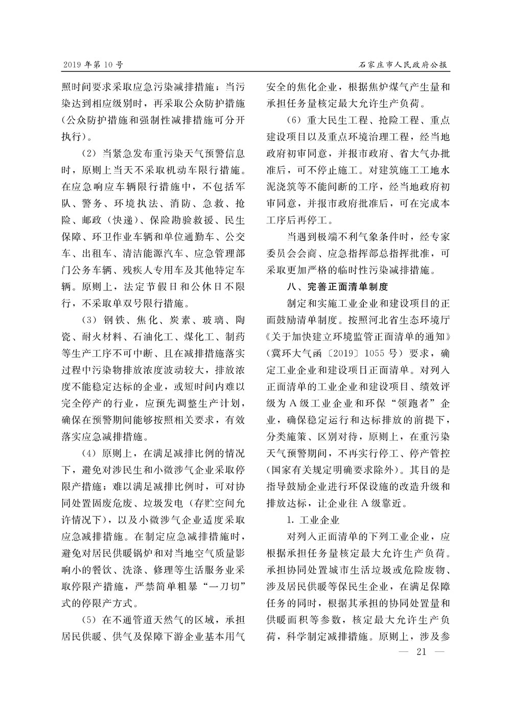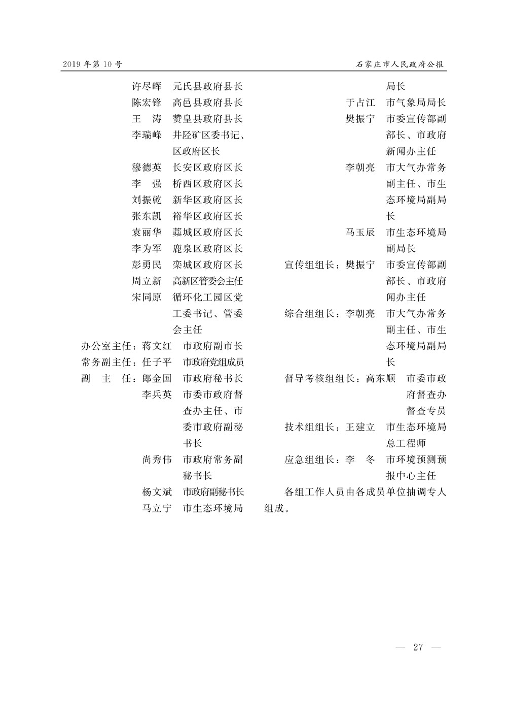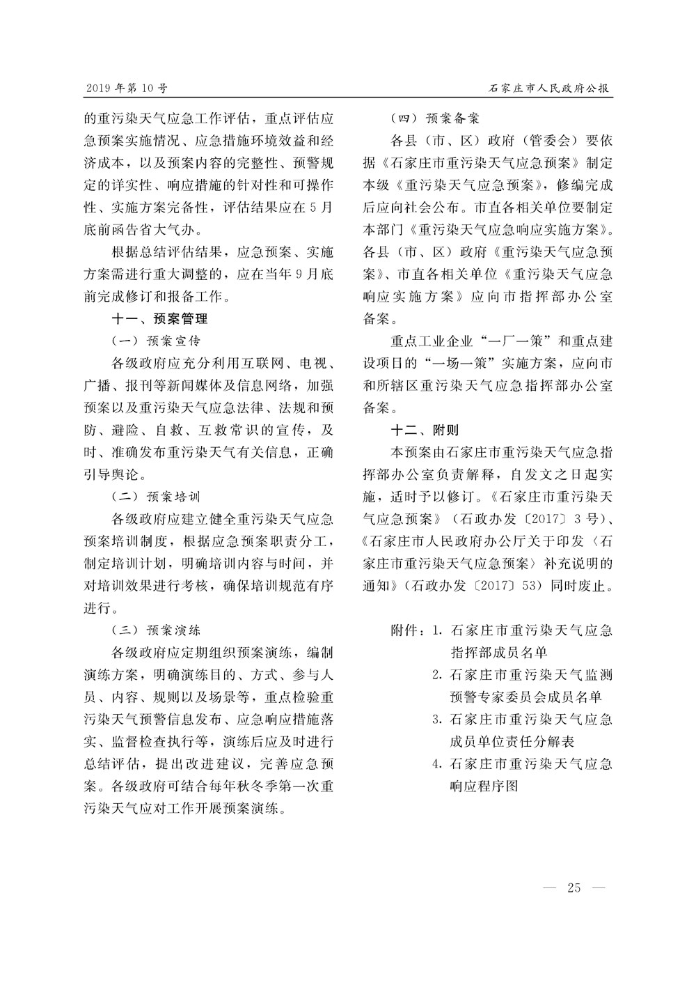 石家莊市人民政府公報2019年第10號