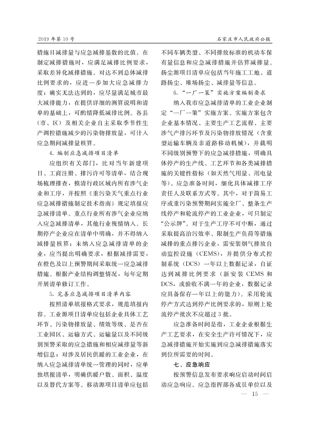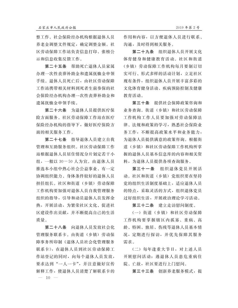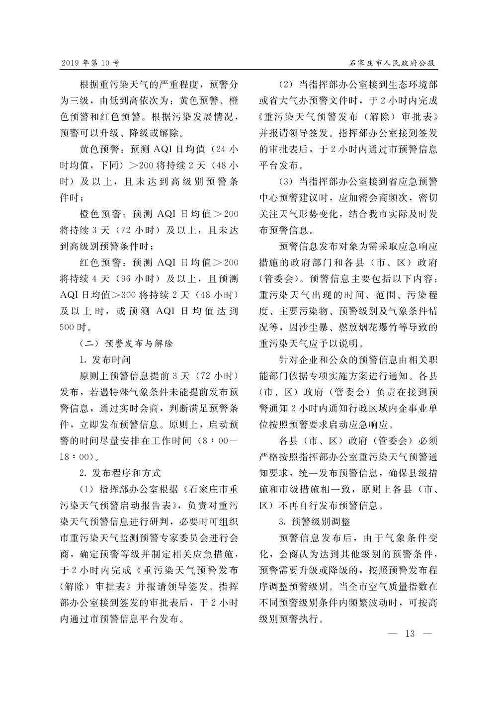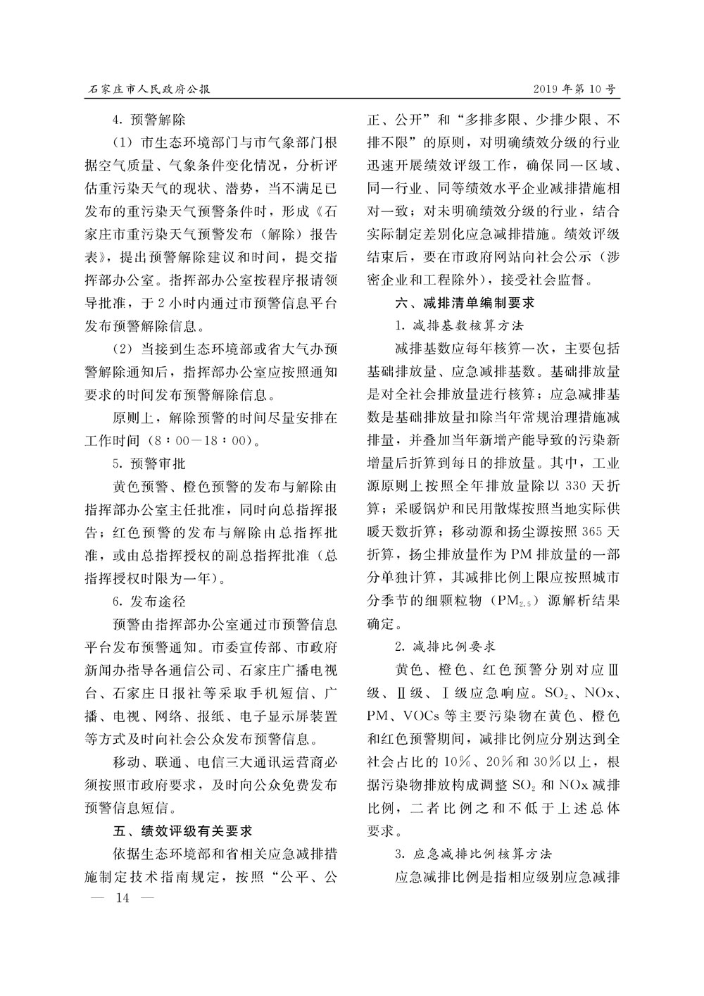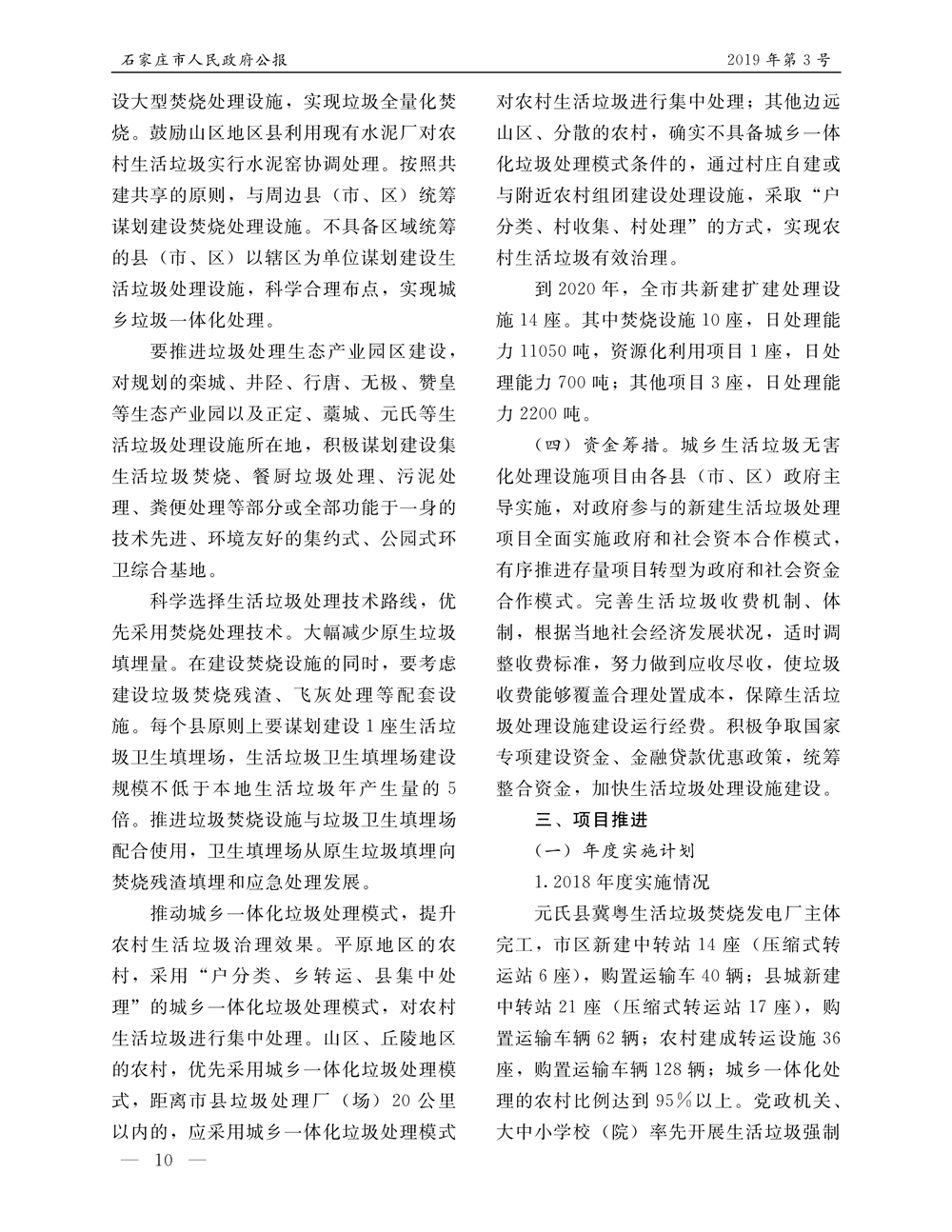 石家莊市人民政府公報2019年第10號