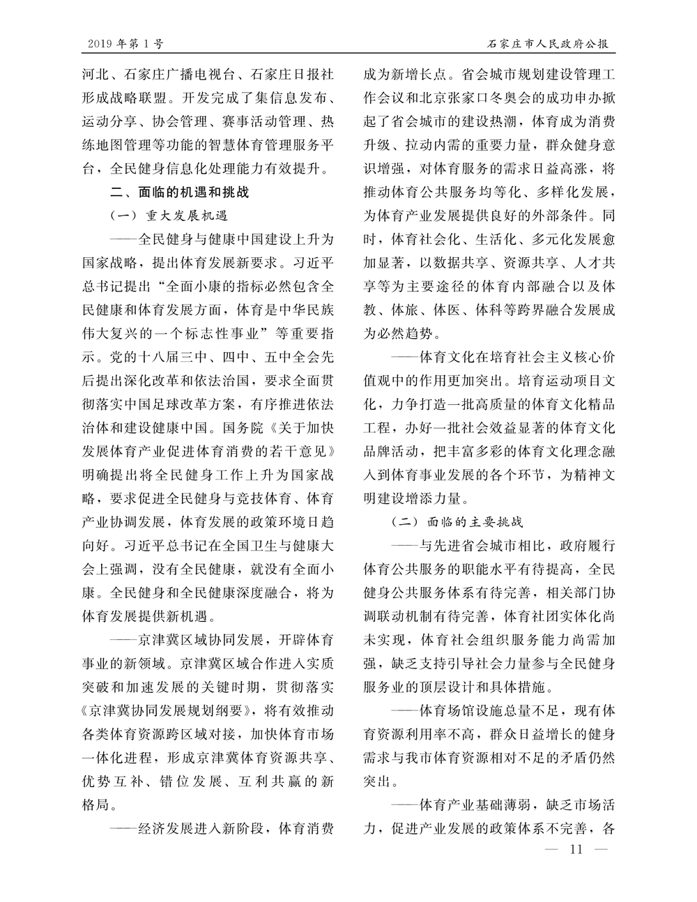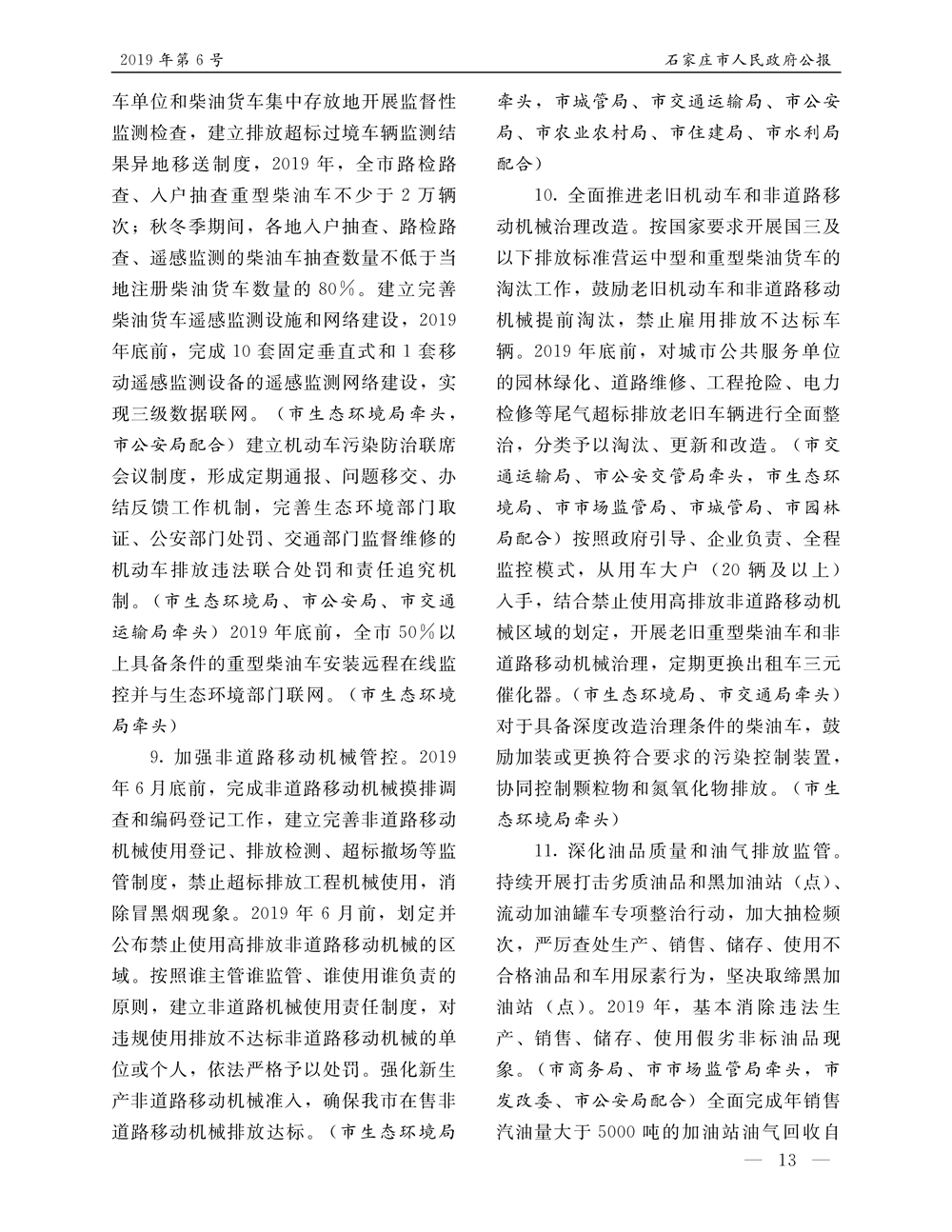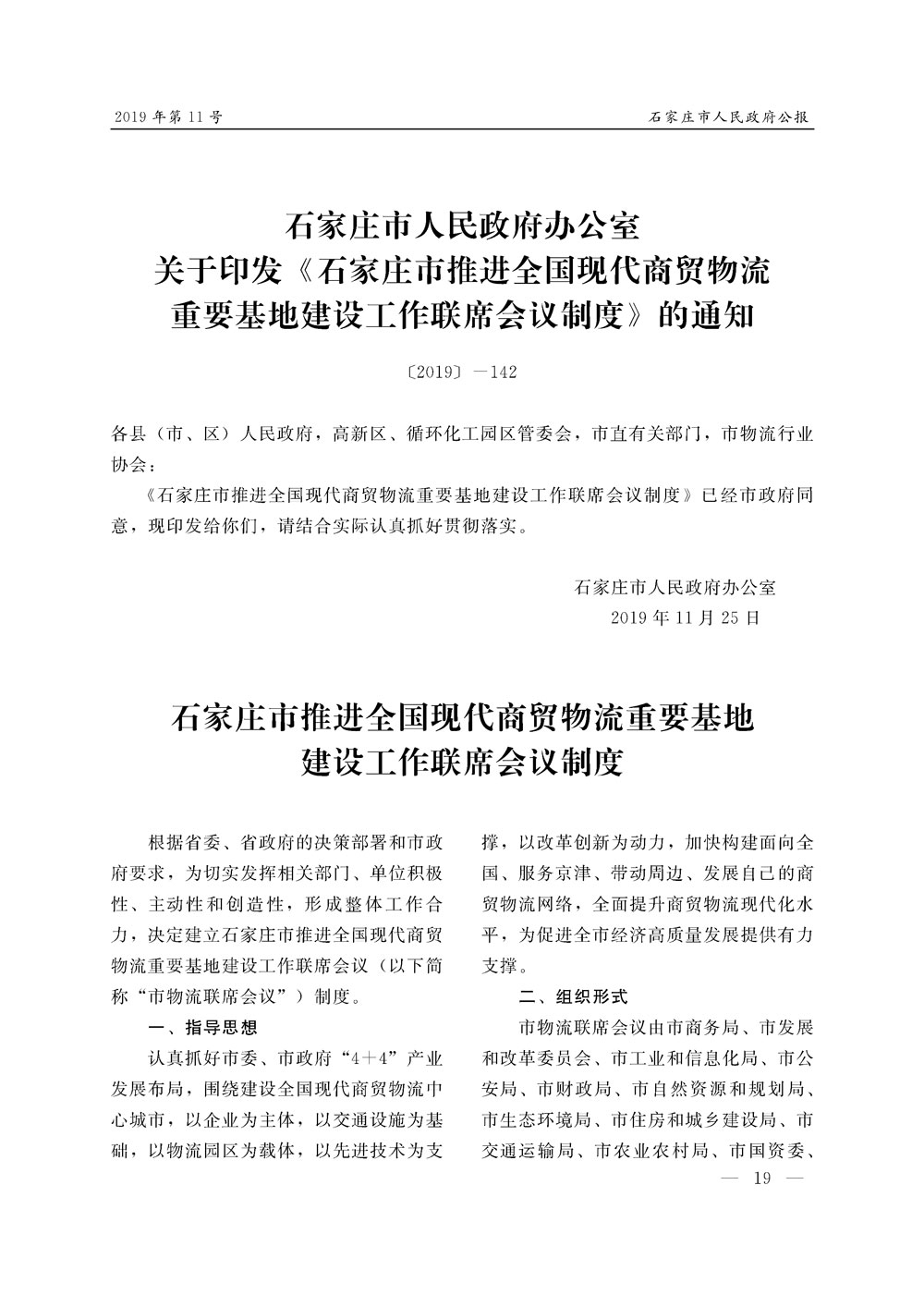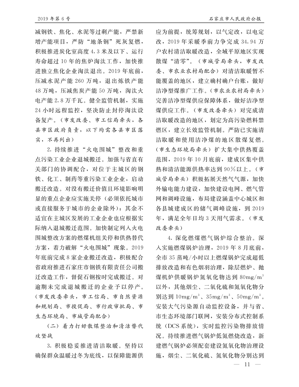 石家莊市人民政府公報2019年第11號