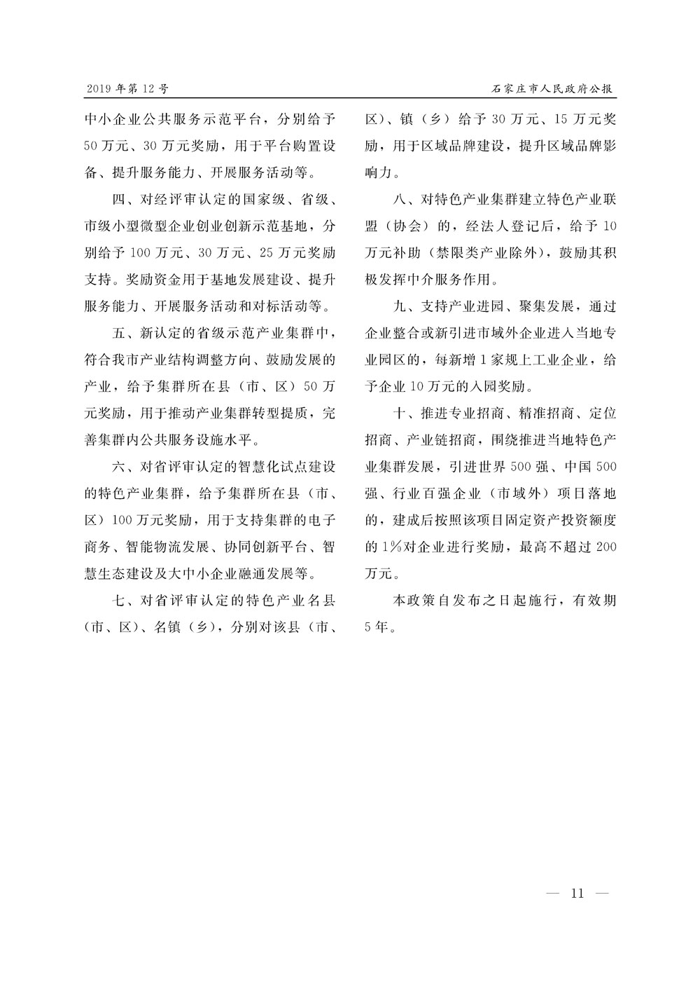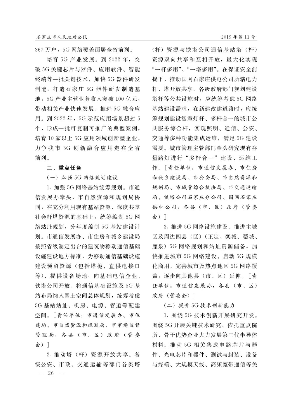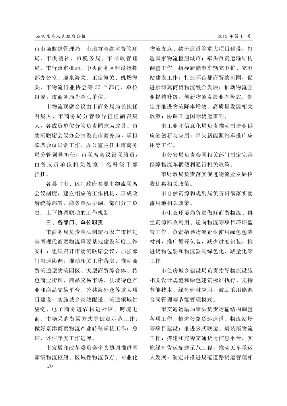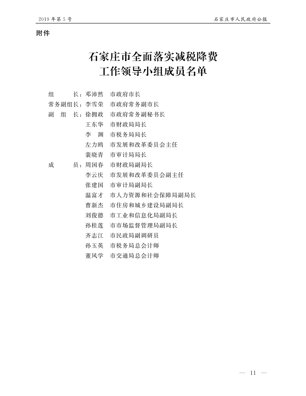 石家莊市人民政府公報2019年第11號