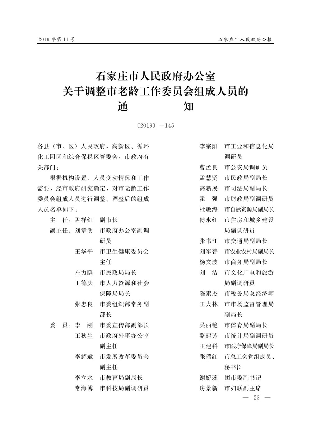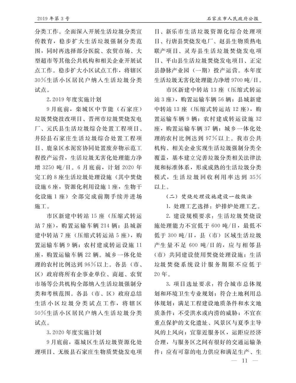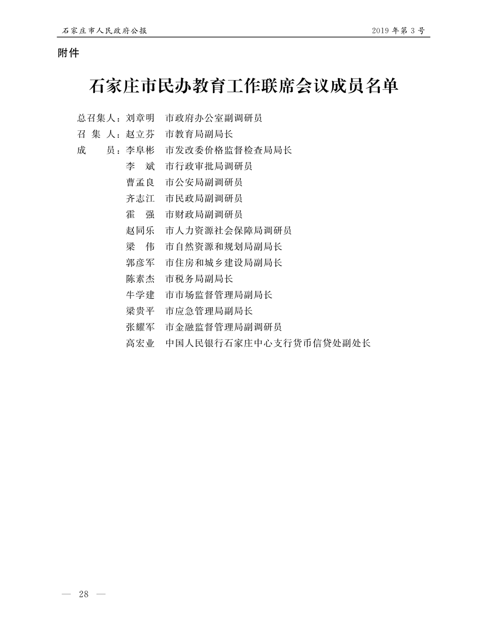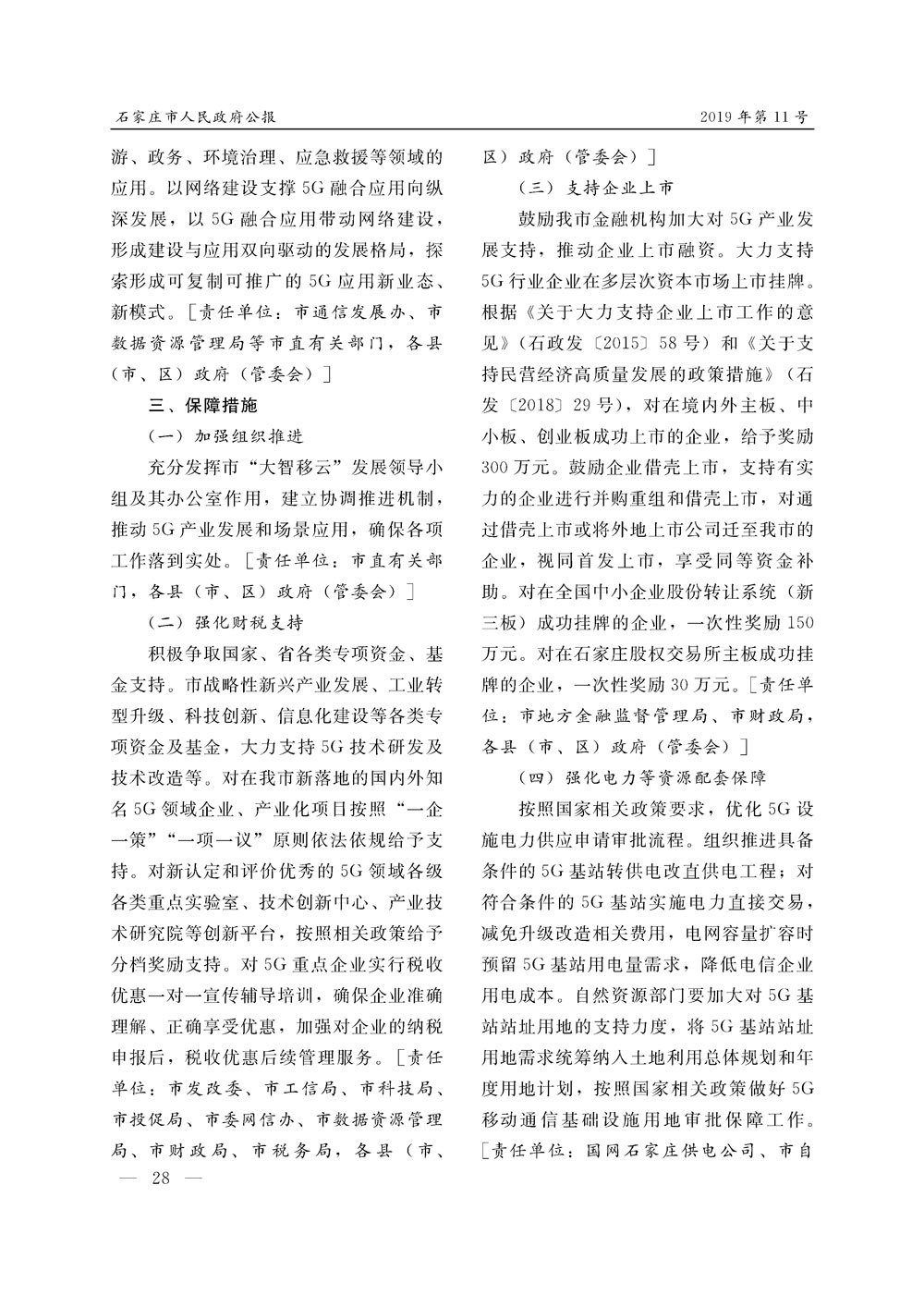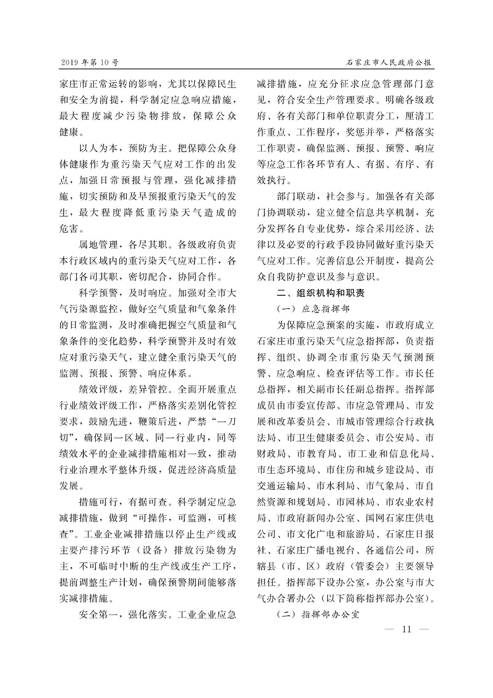 石家莊市人民政府公報2019年第11號