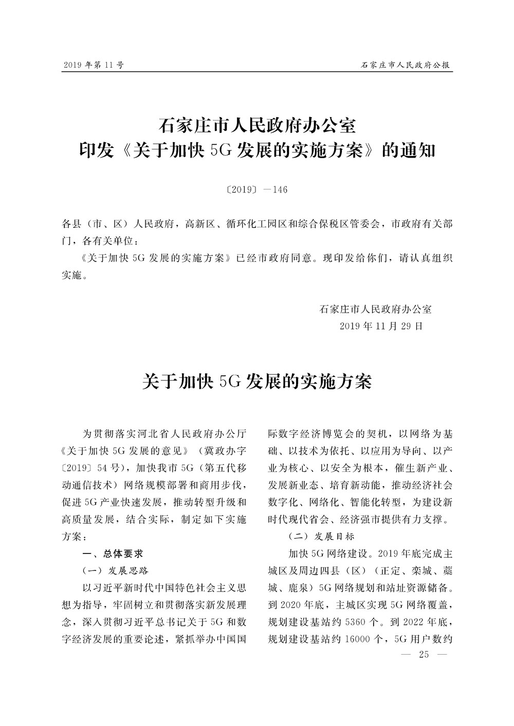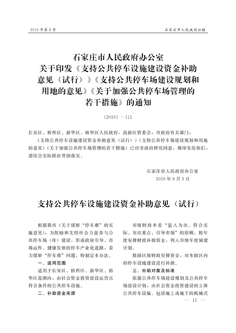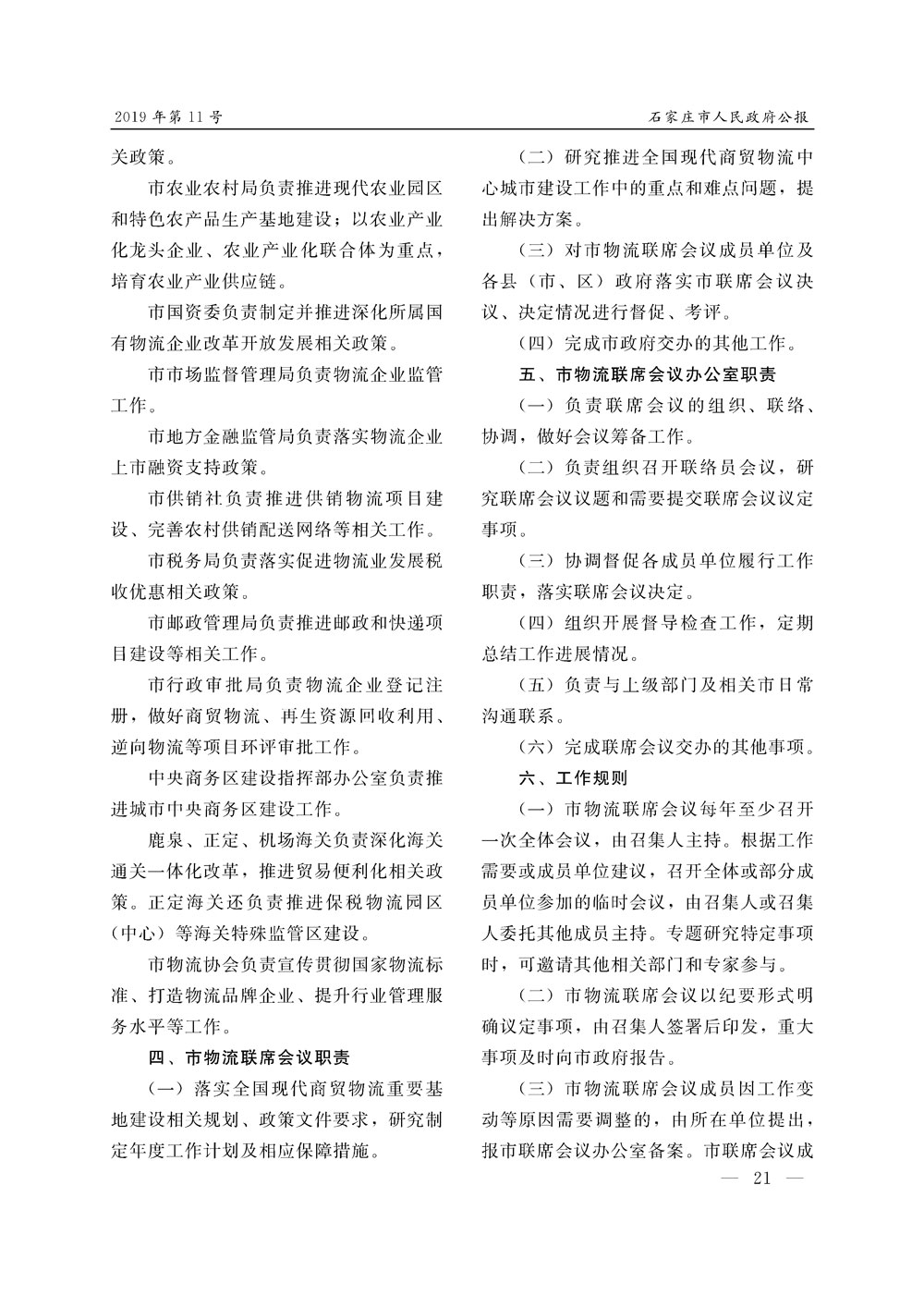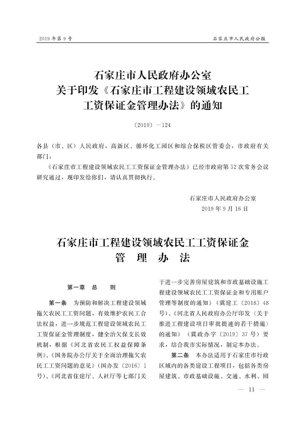 石家莊市人民政府公報2019年第11號