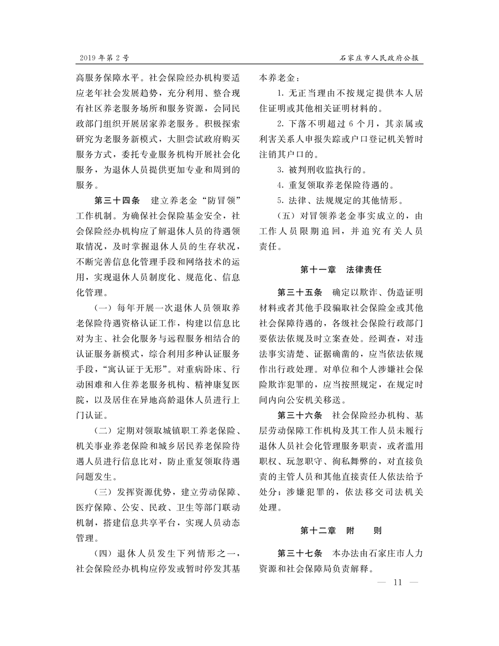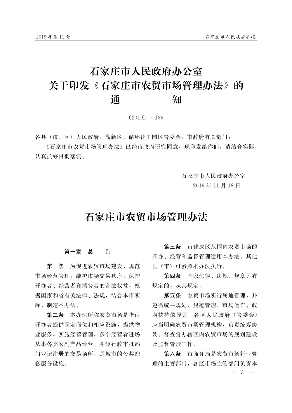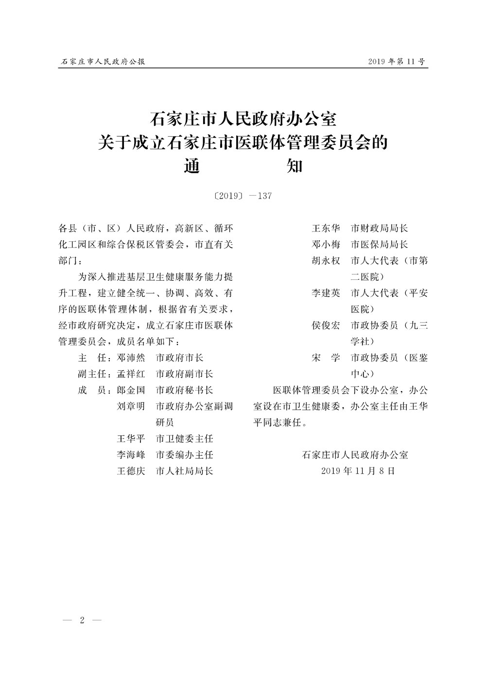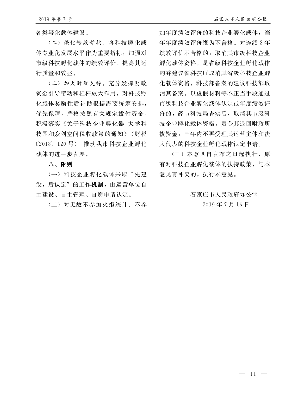 石家莊市人民政府公報2019年第11號