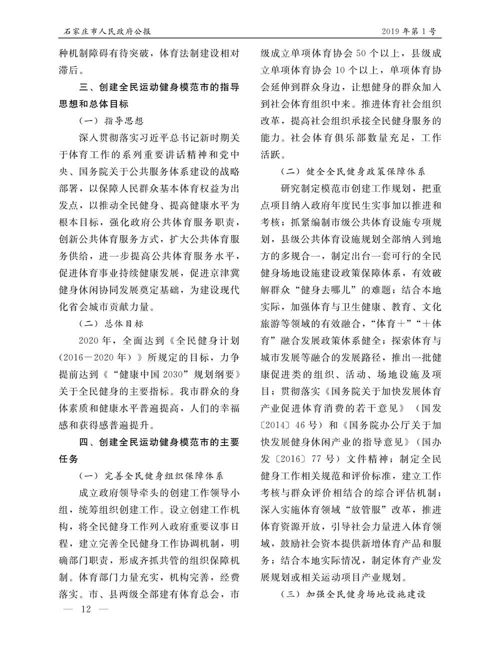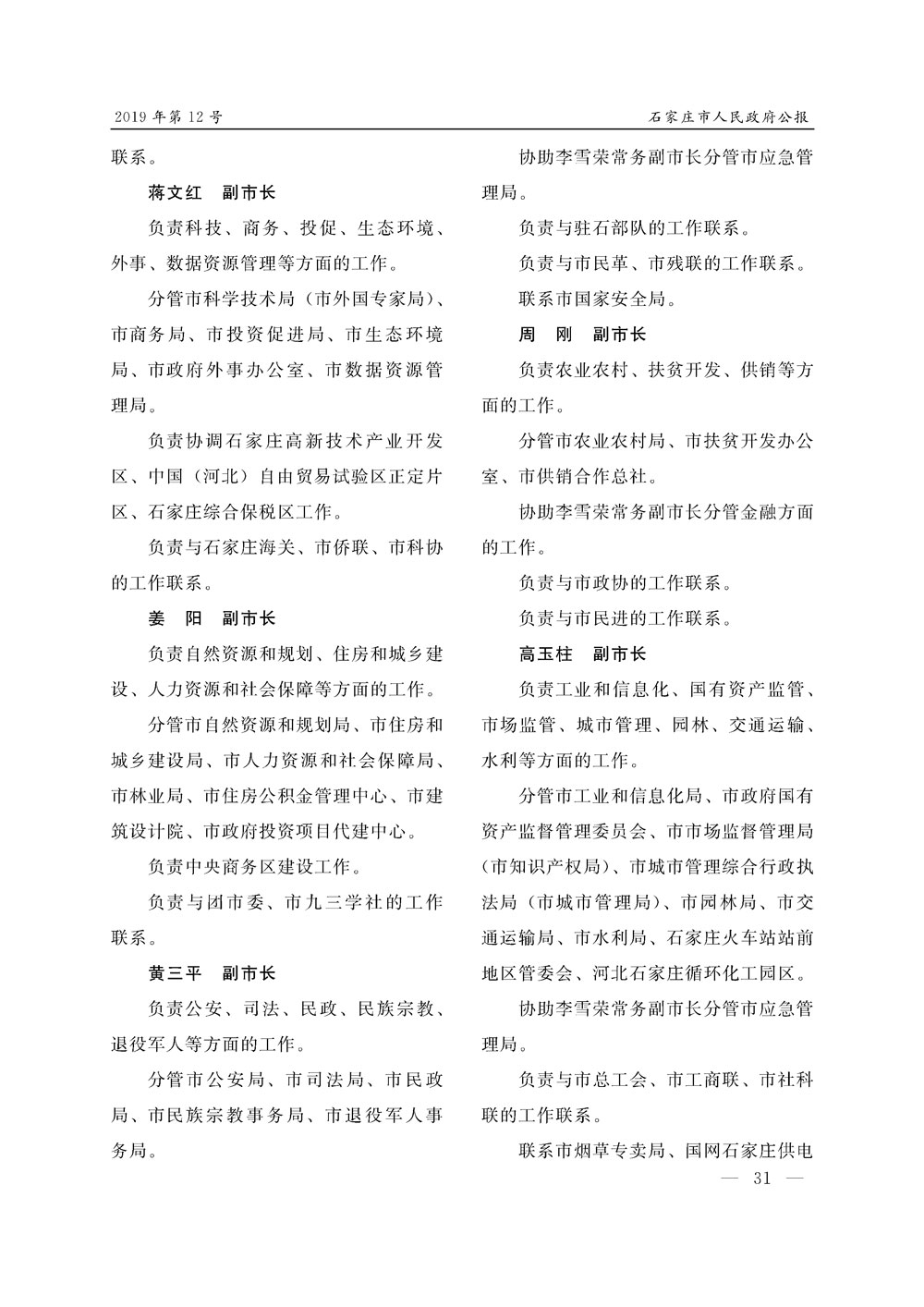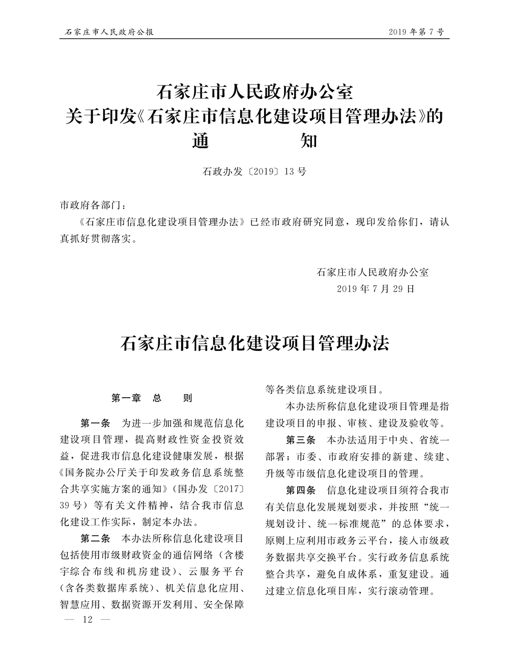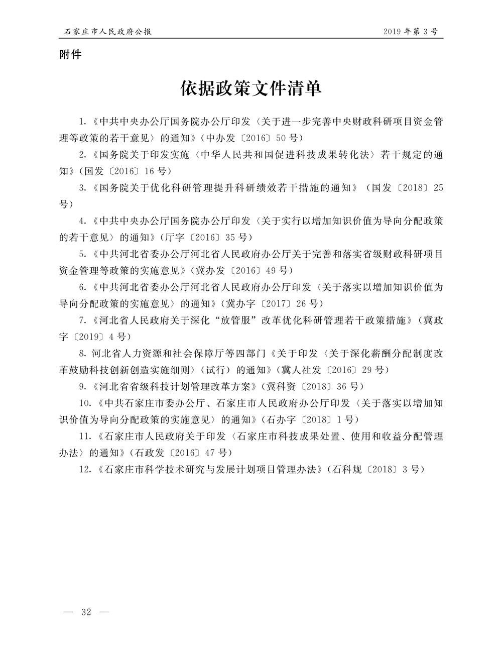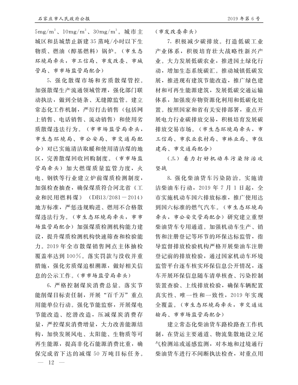 石家莊市人民政府公報2019年第12號