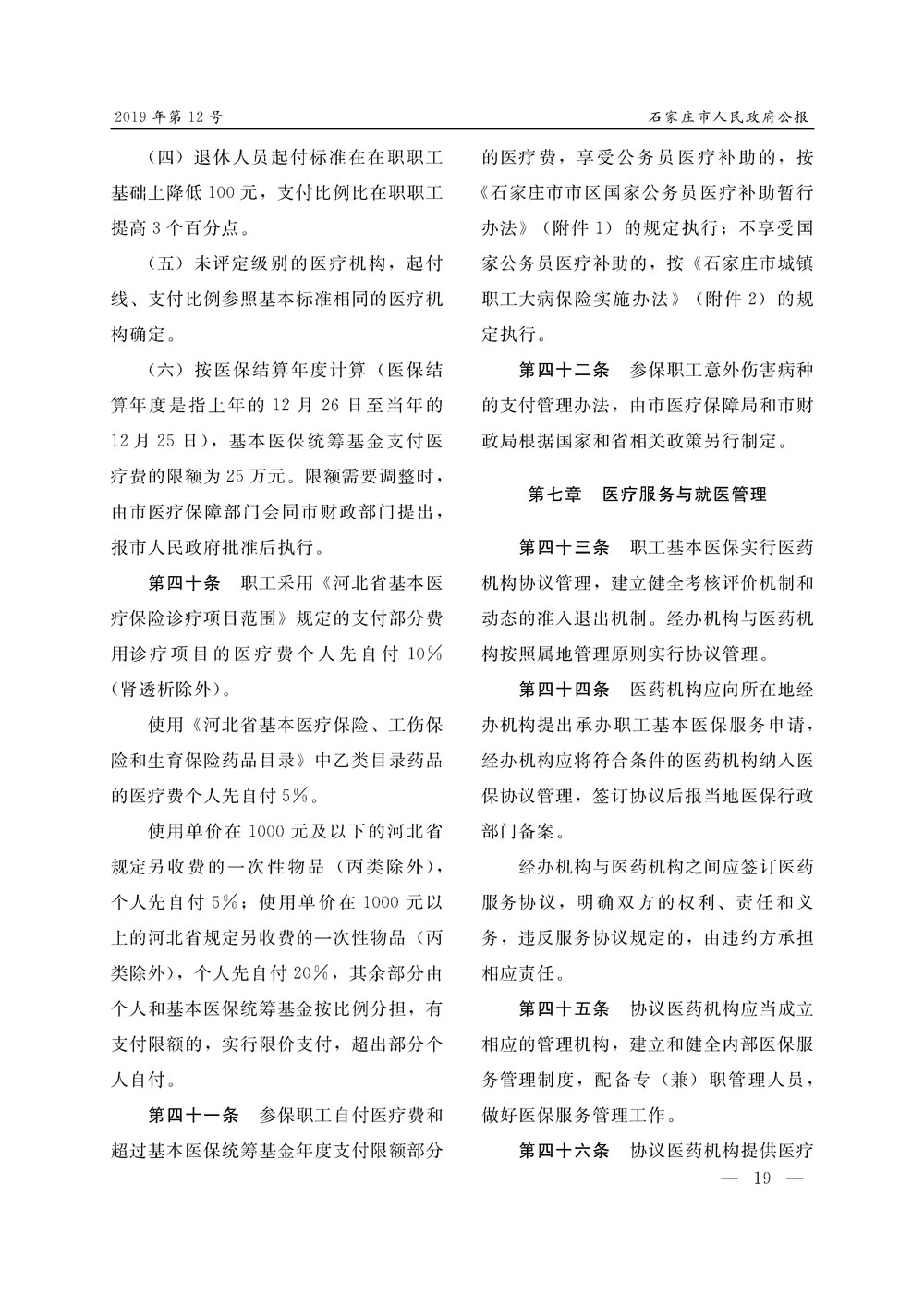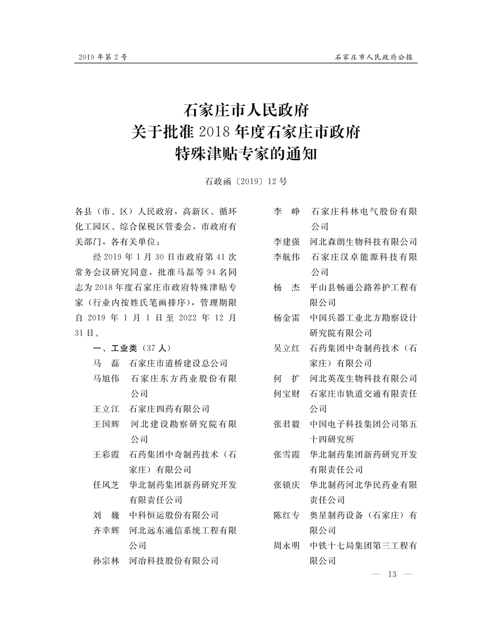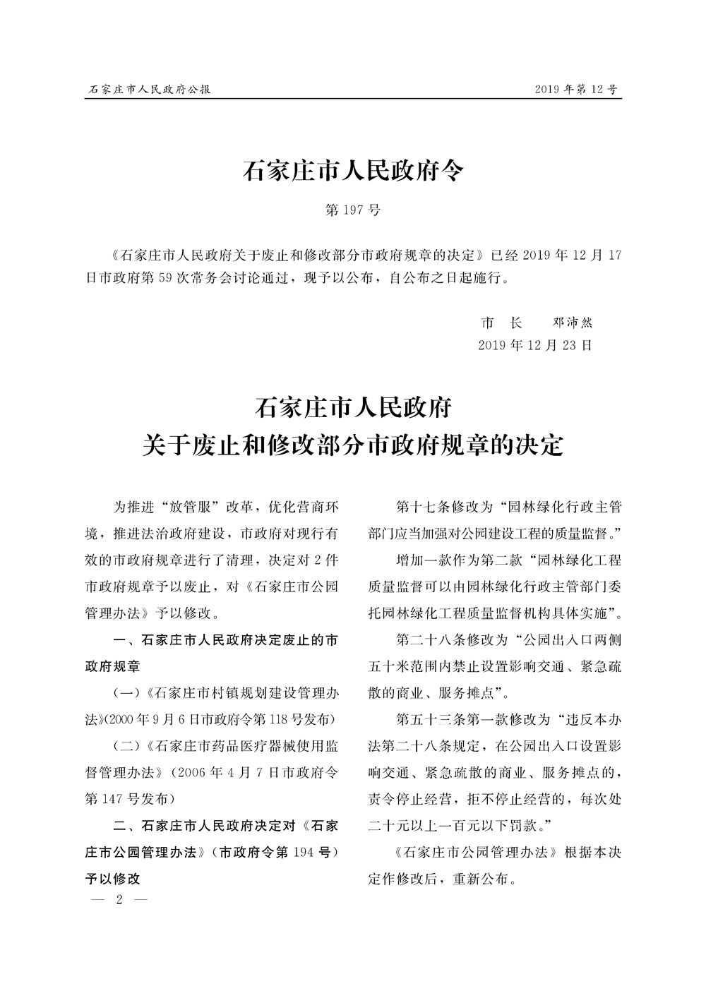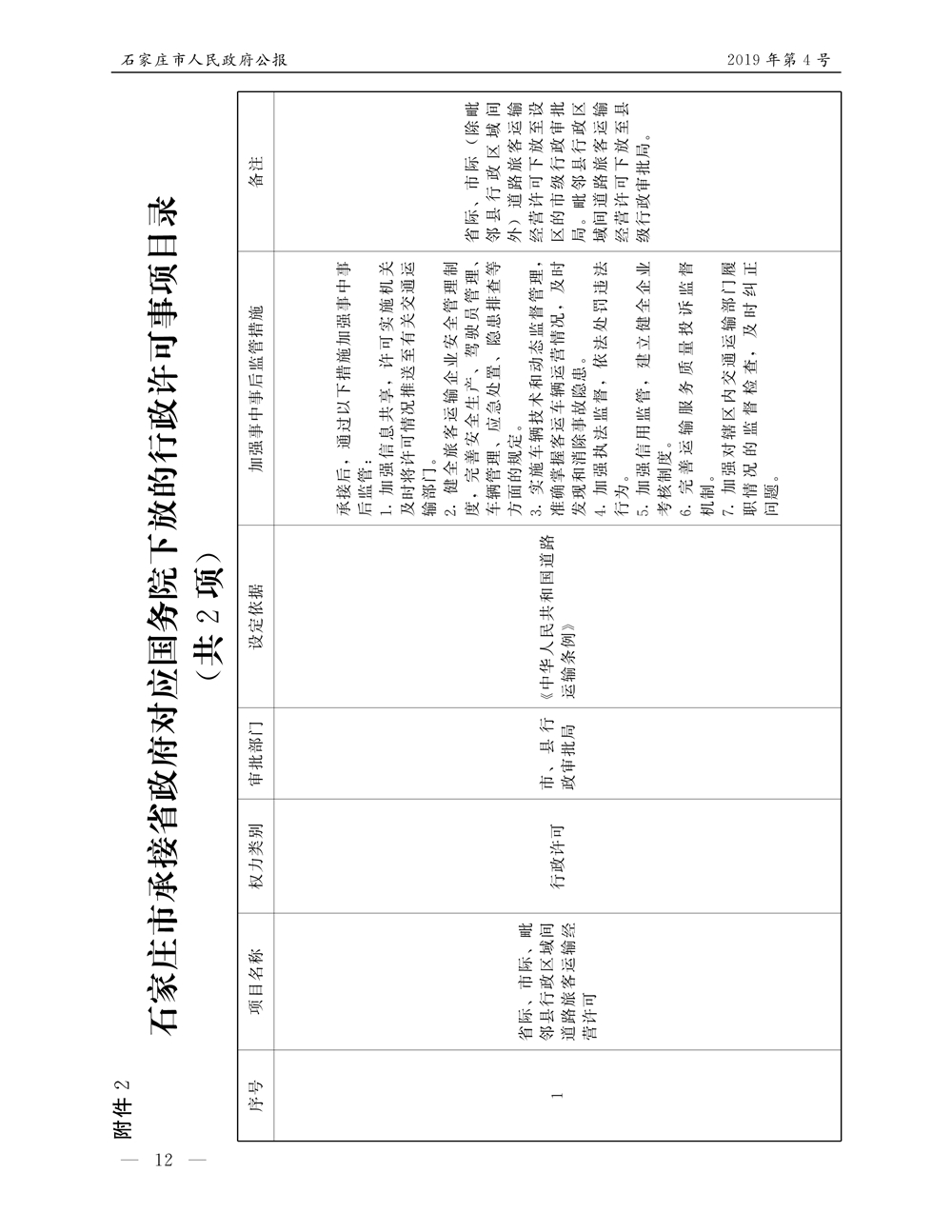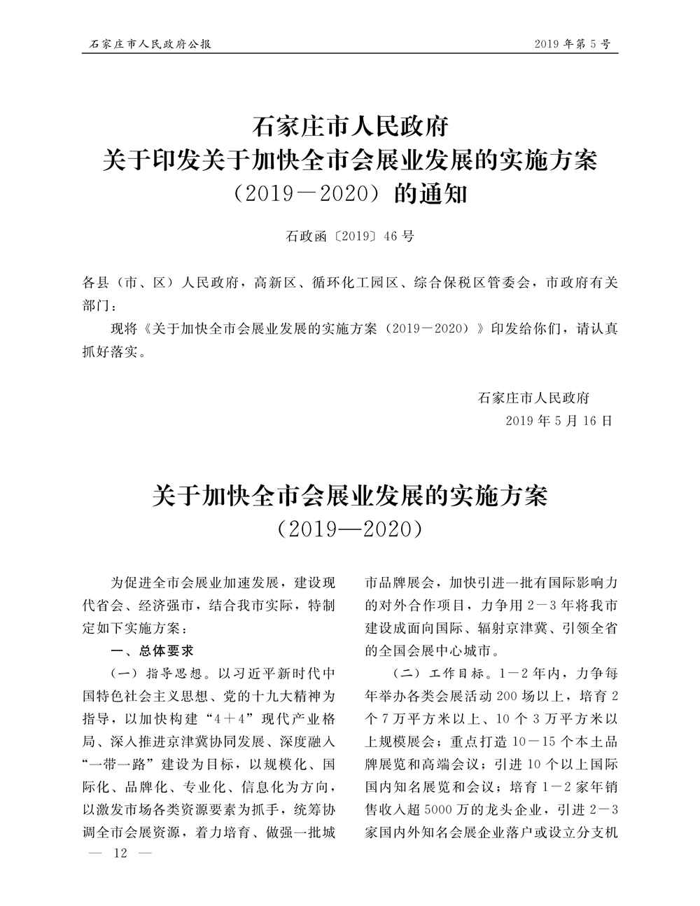 石家莊市人民政府公報2019年第12號