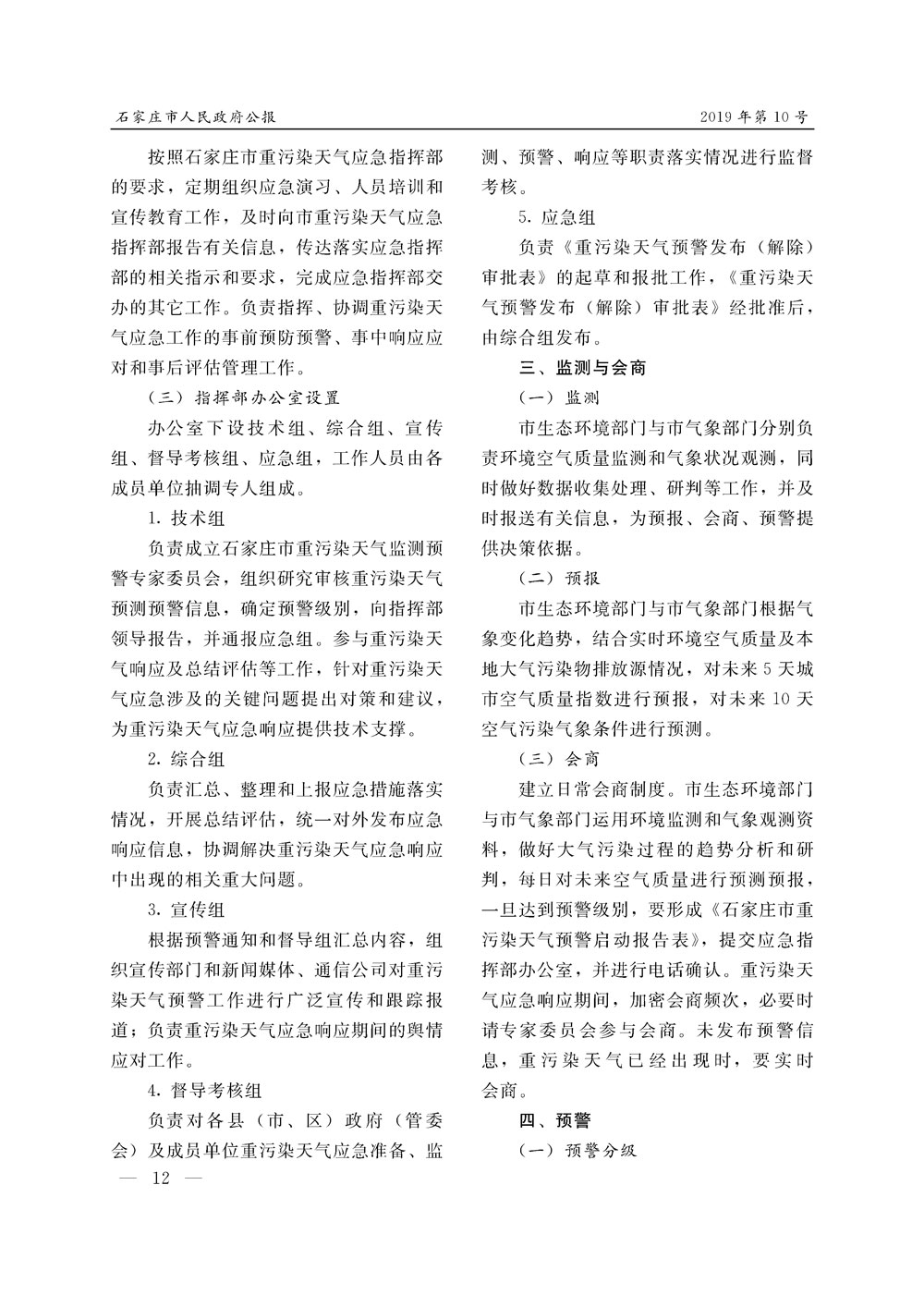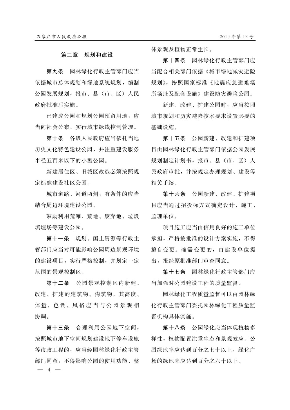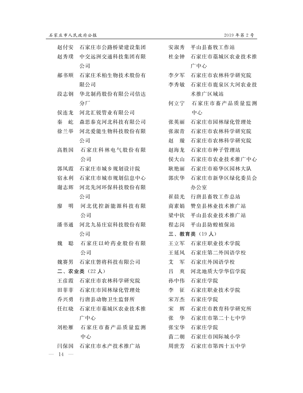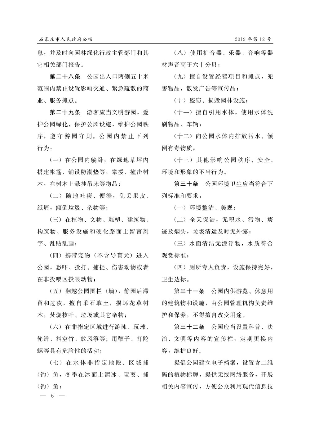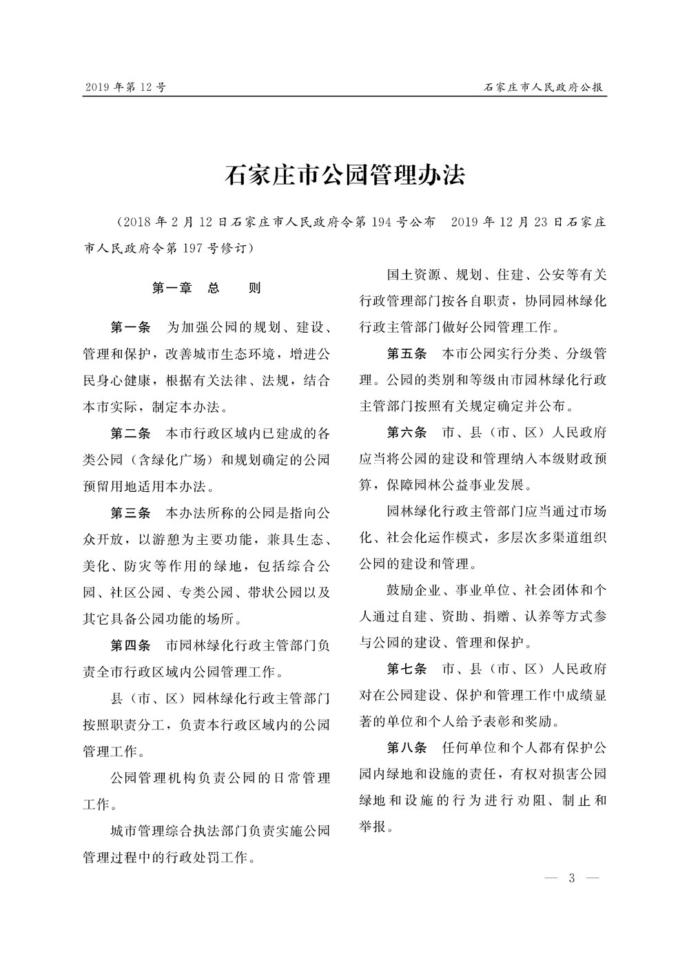 石家莊市人民政府公報2019年第12號