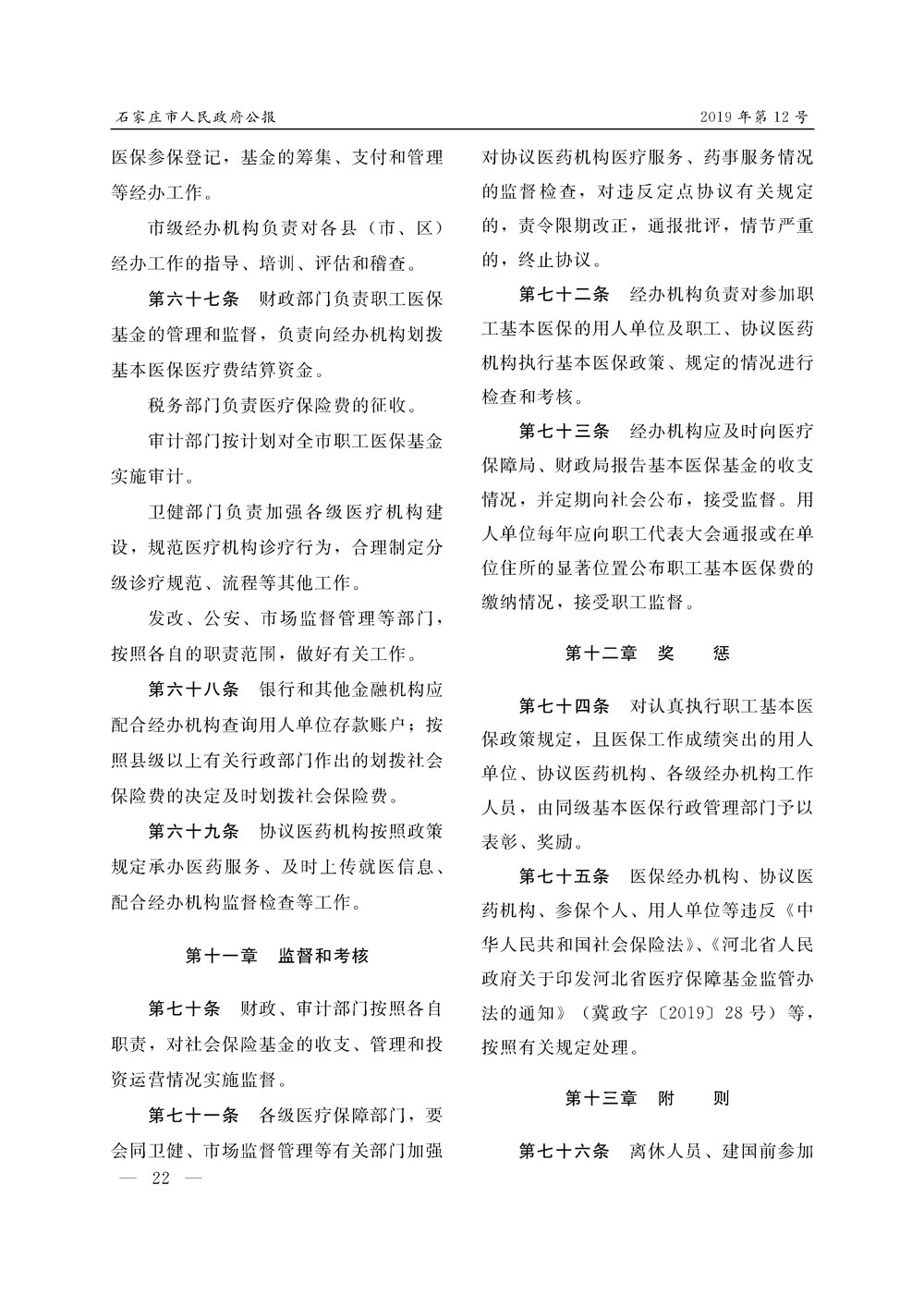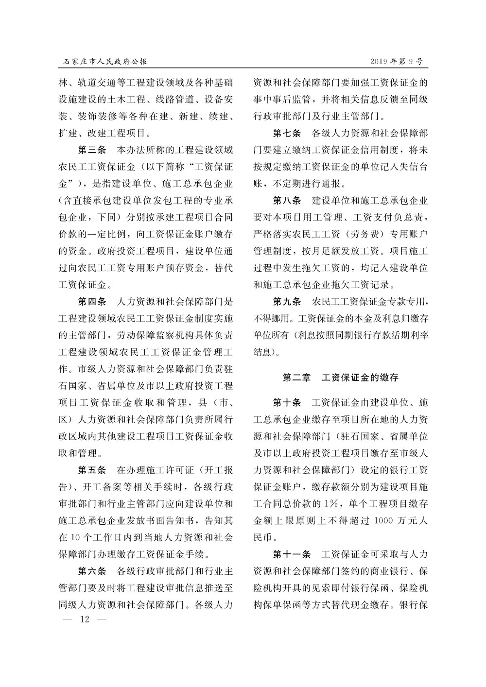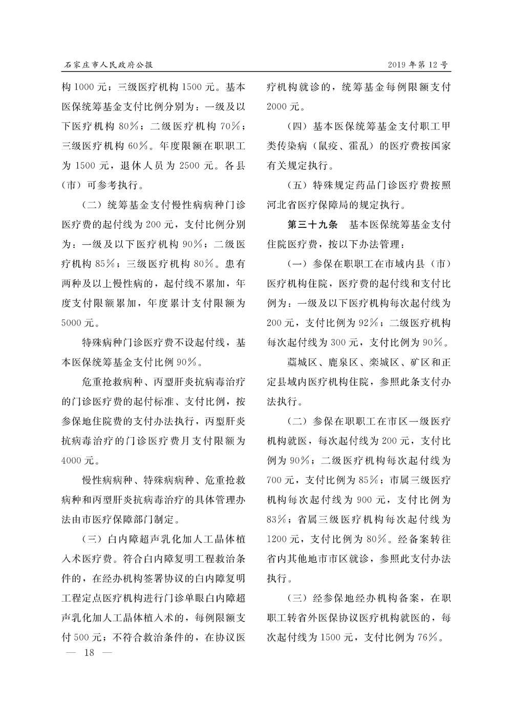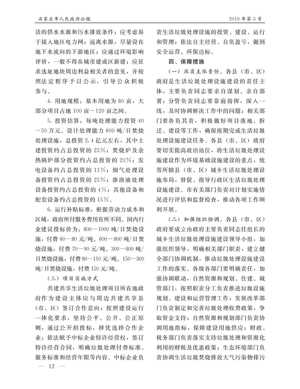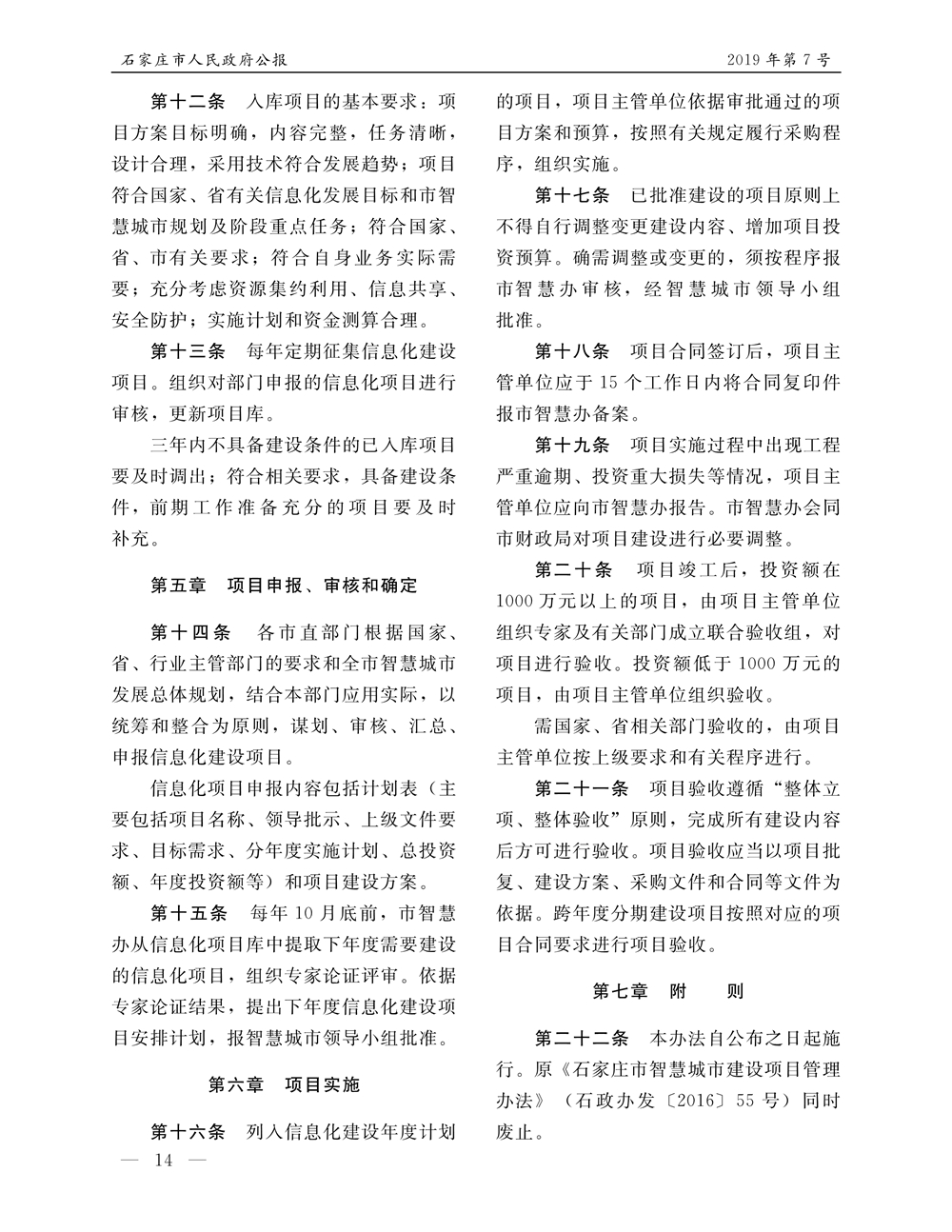 石家莊市人民政府公報2019年第12號