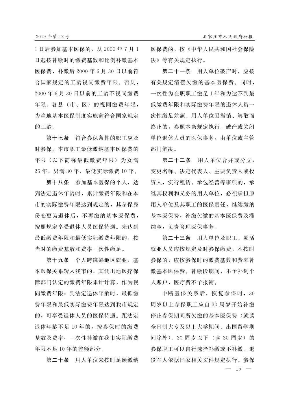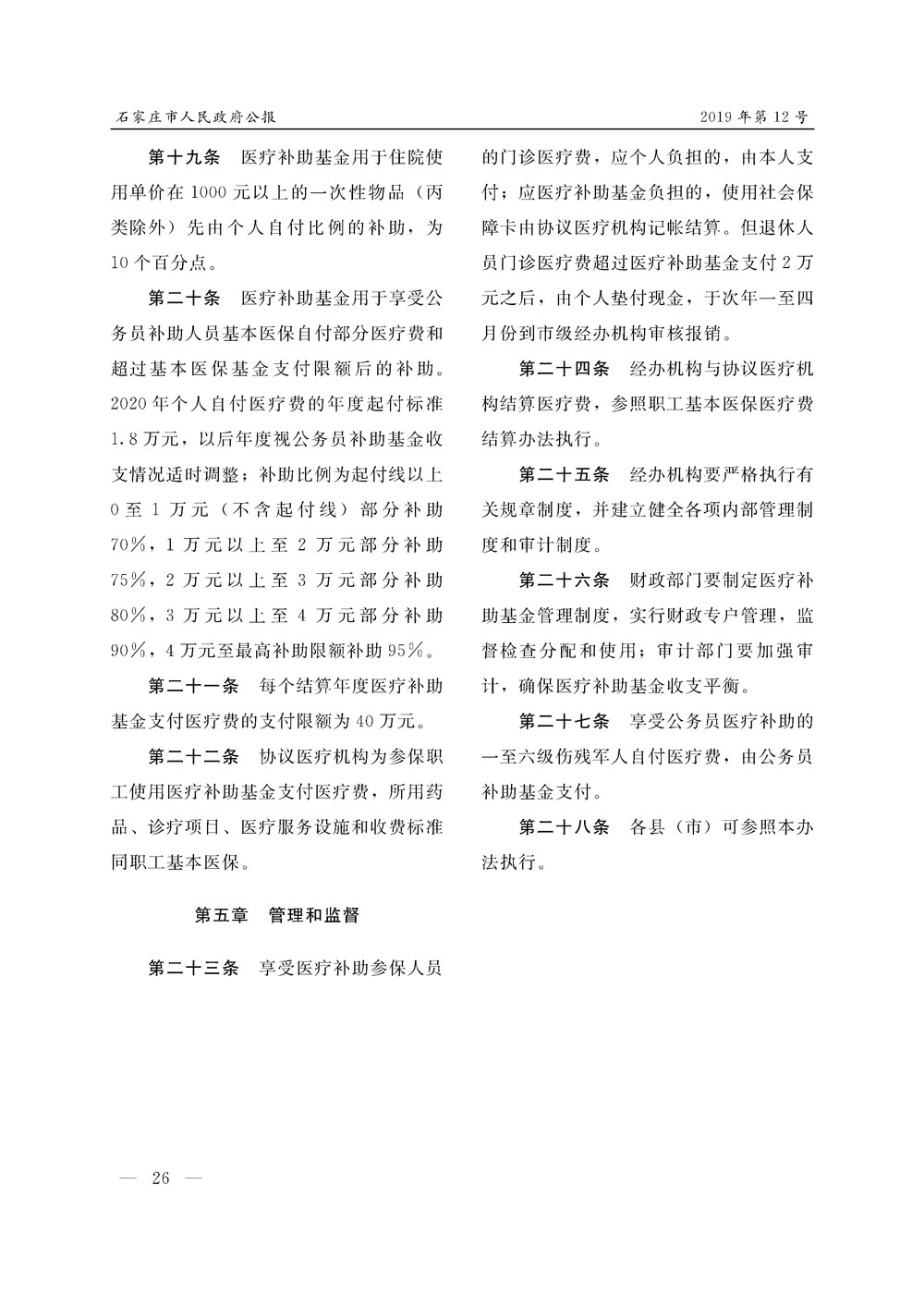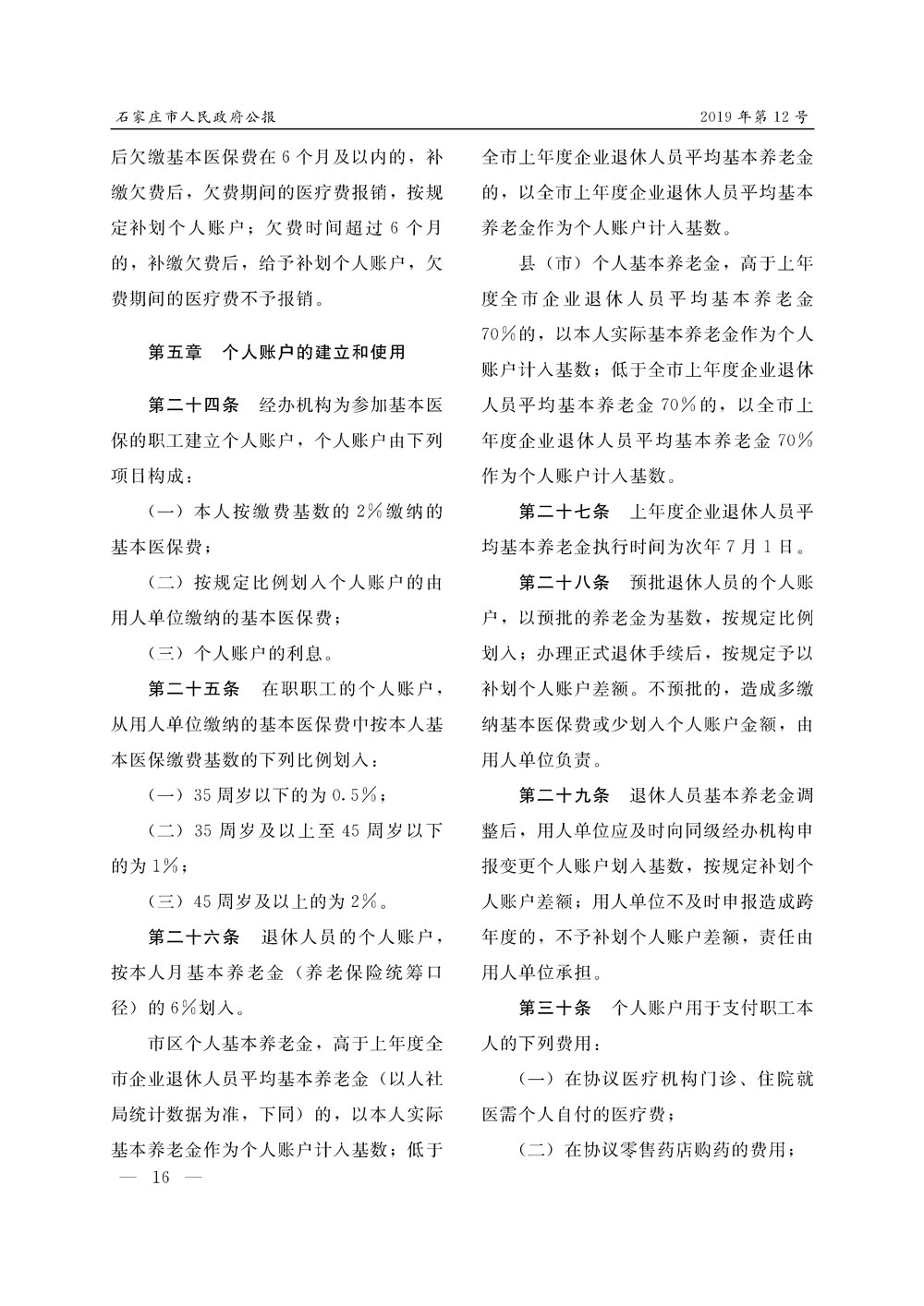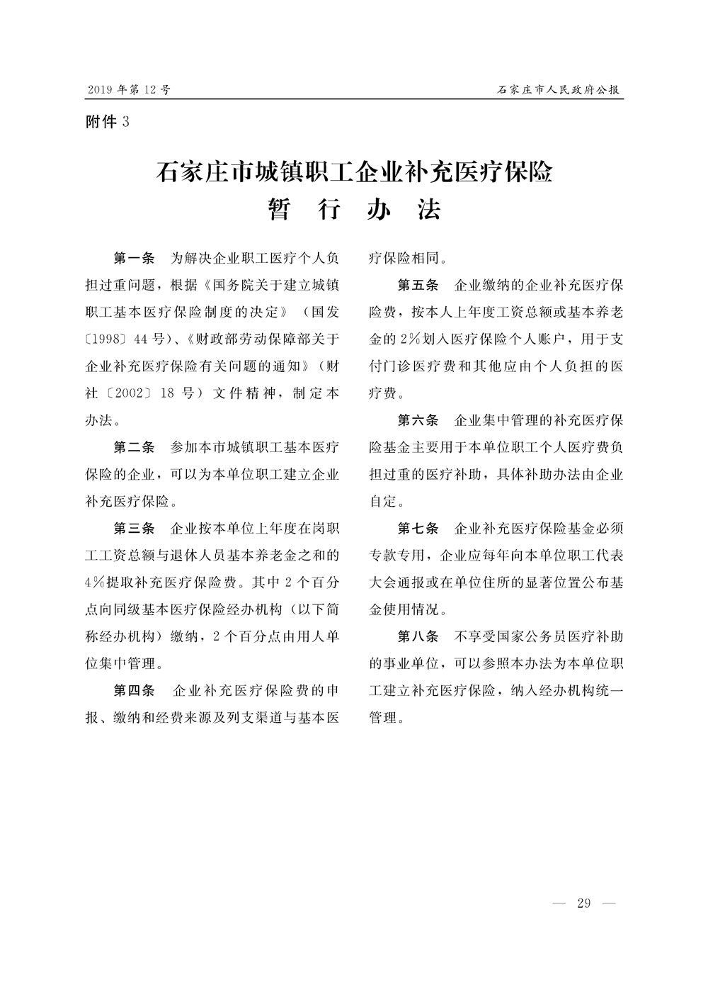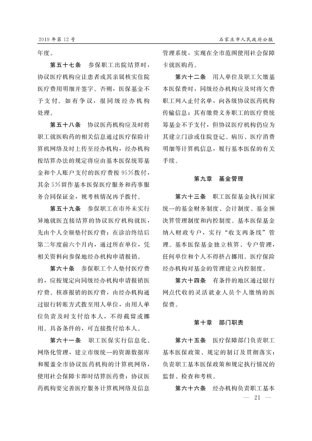 石家莊市人民政府公報2019年第12號