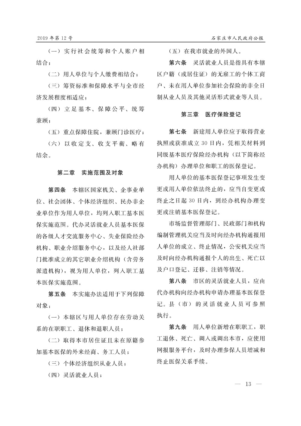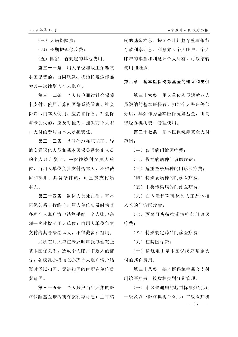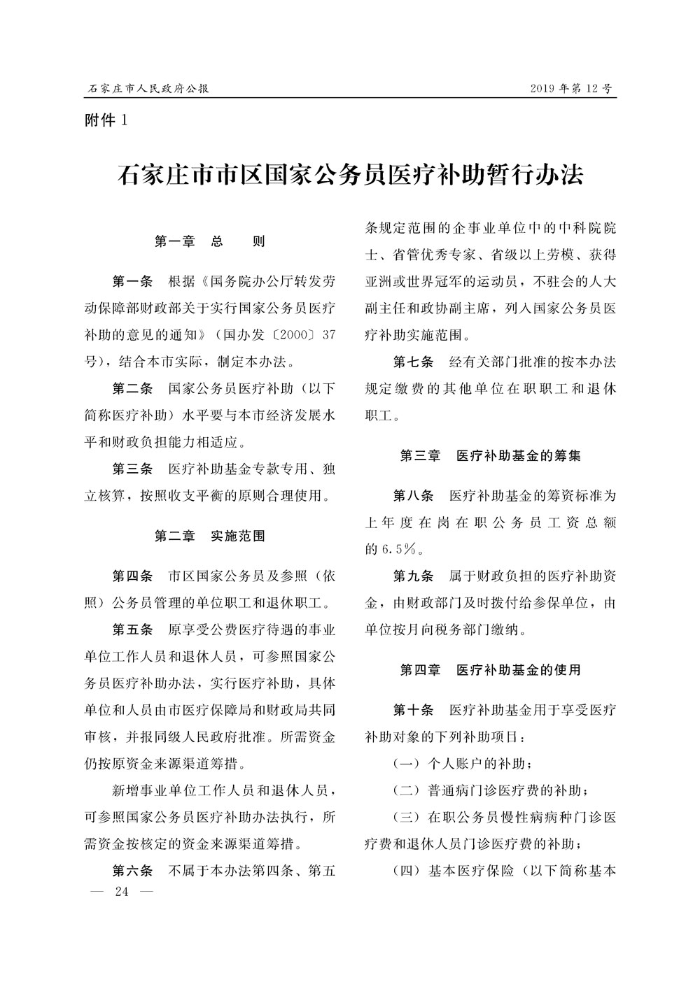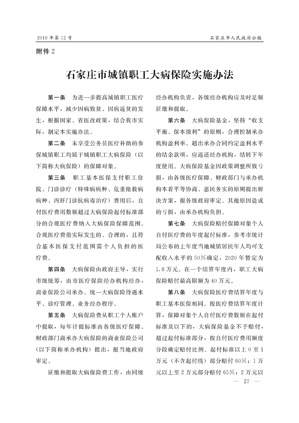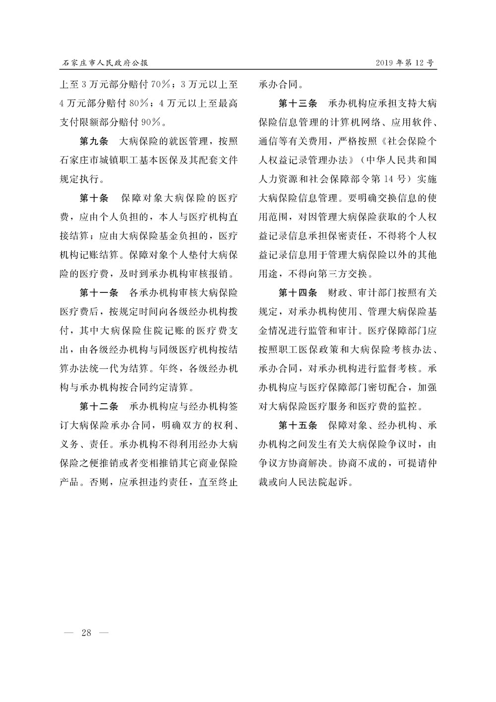 石家莊市人民政府公報2019年第12號