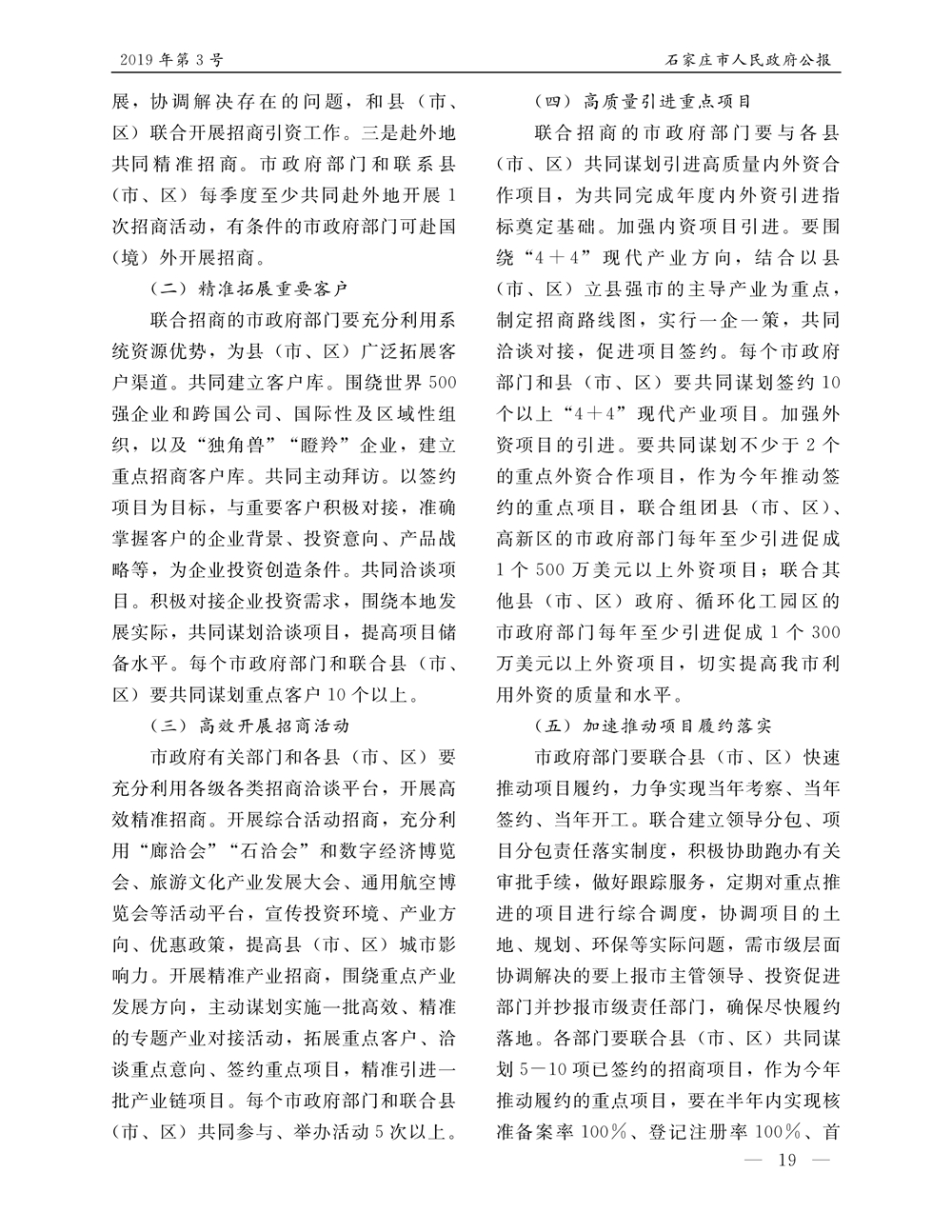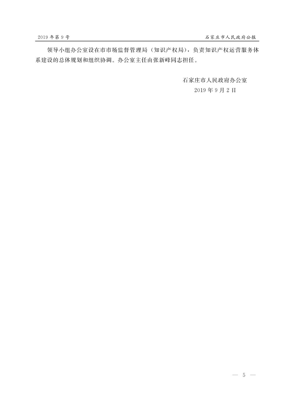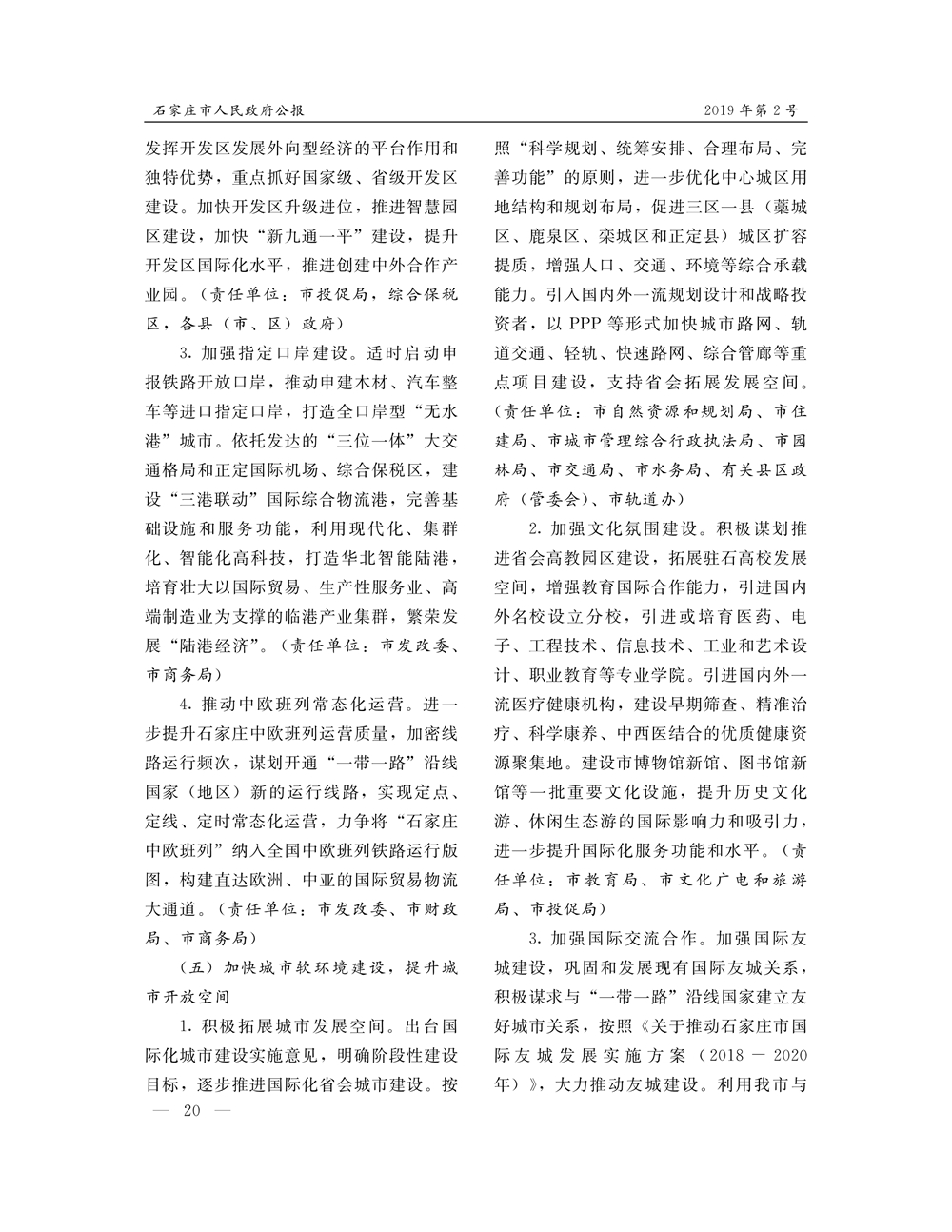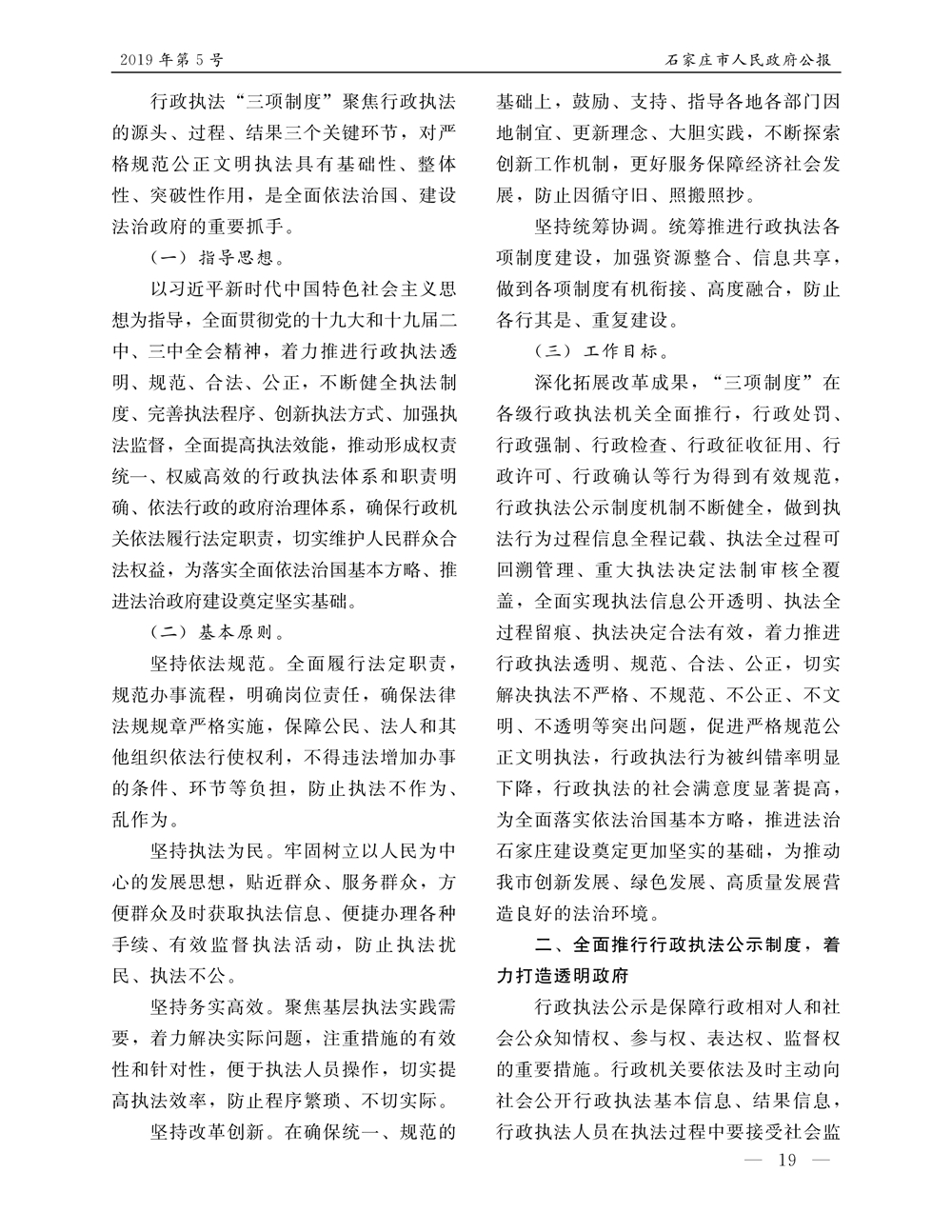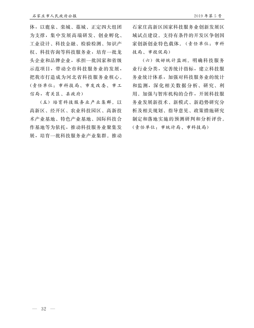 石家莊市人民政府公報2019年第5號