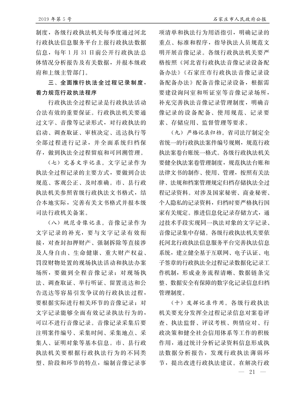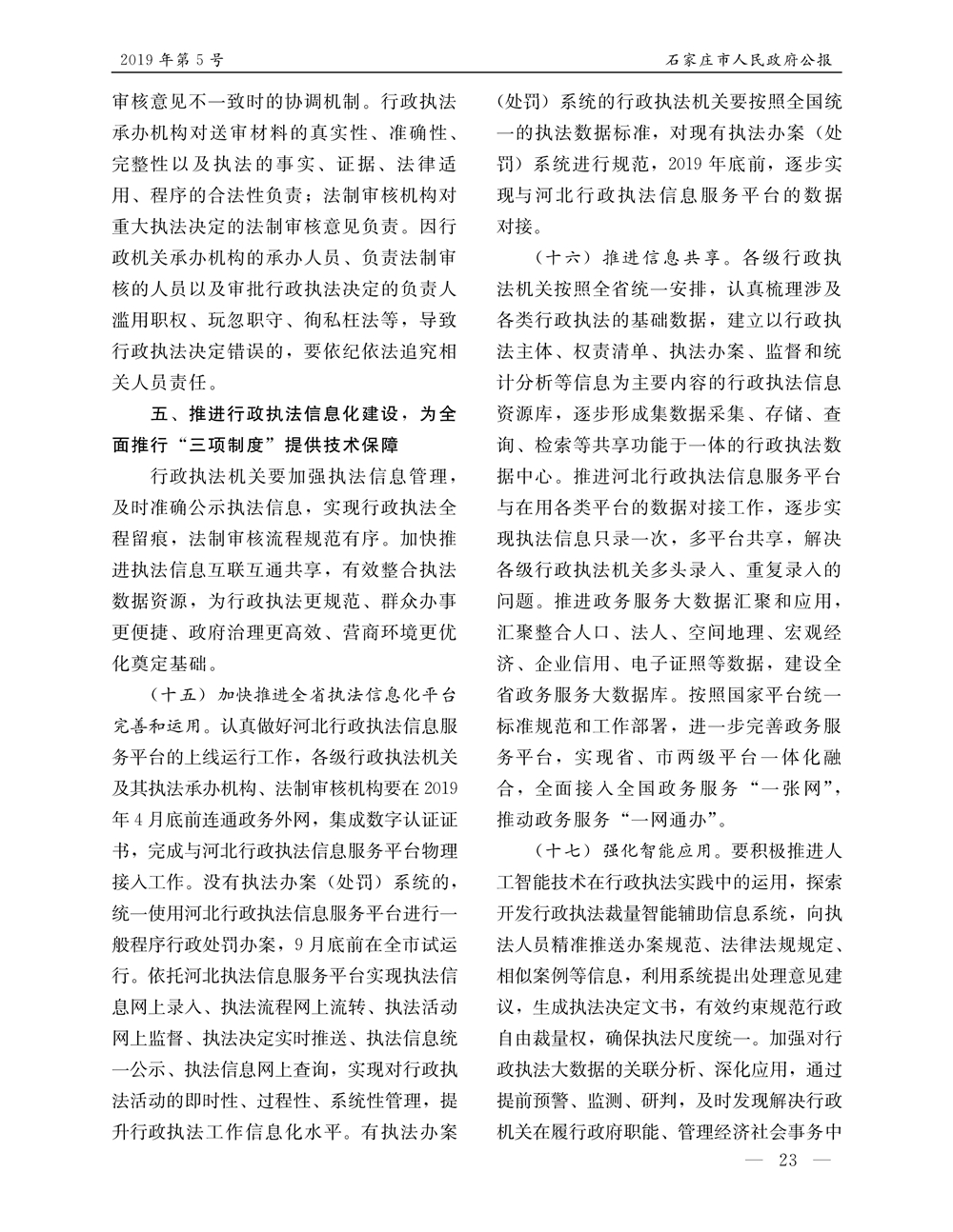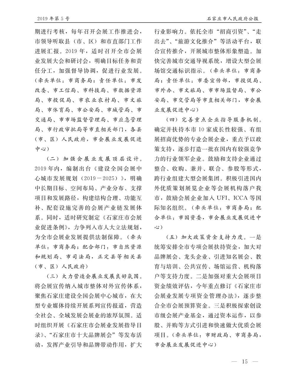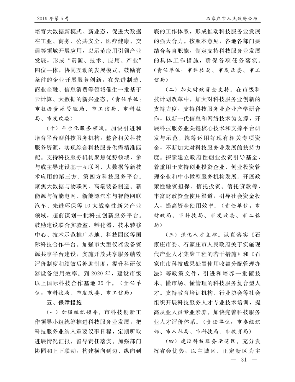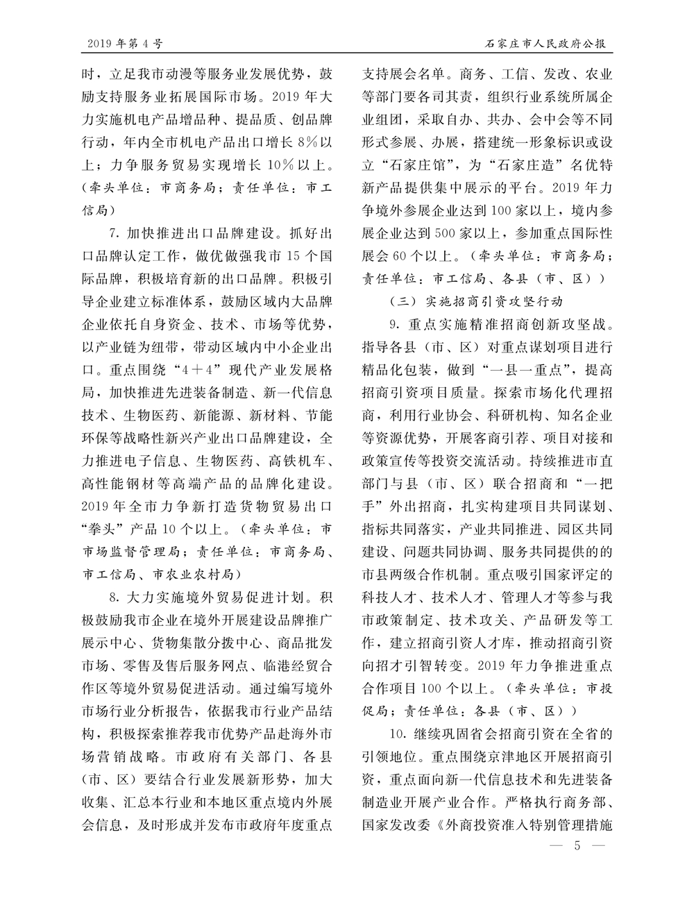 石家莊市人民政府公報2019年第5號