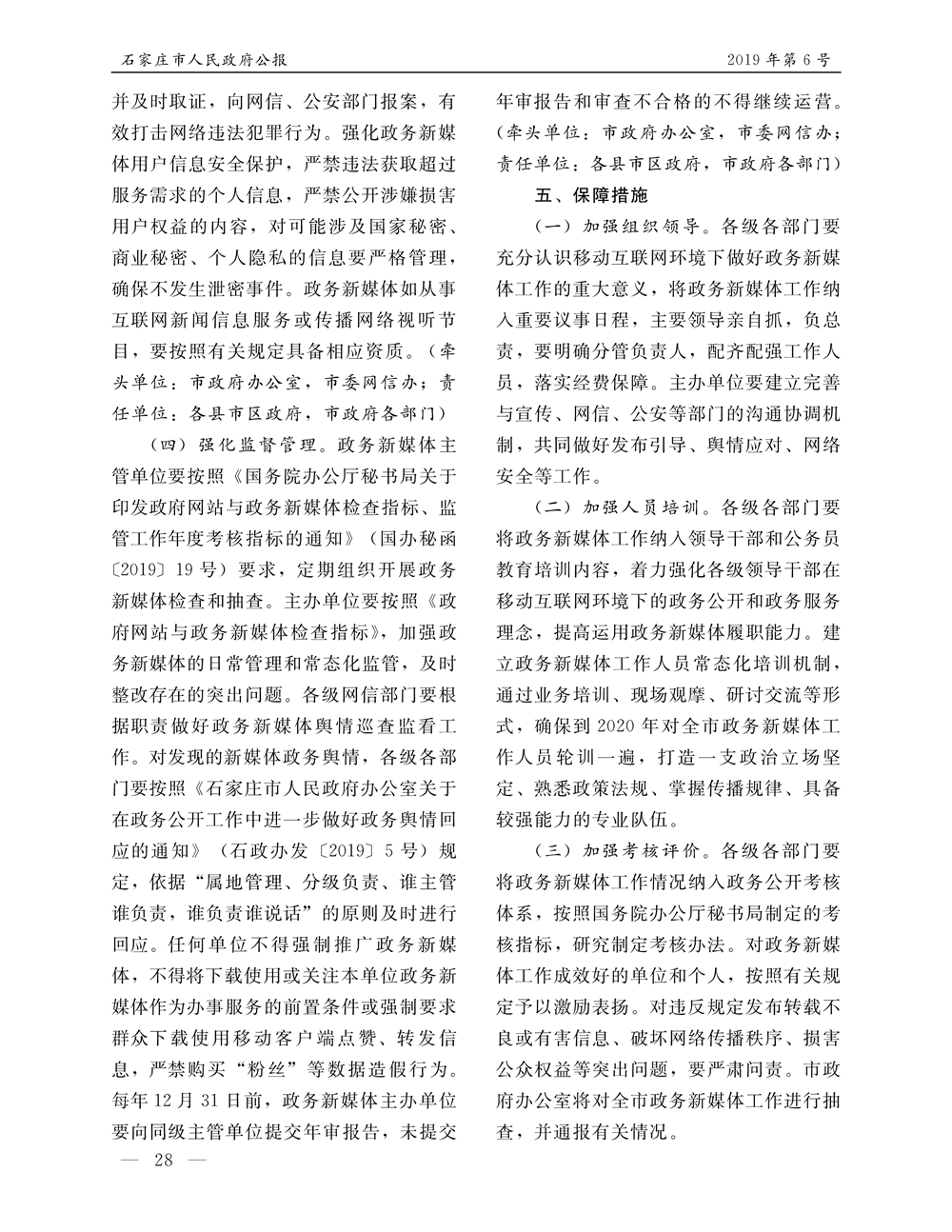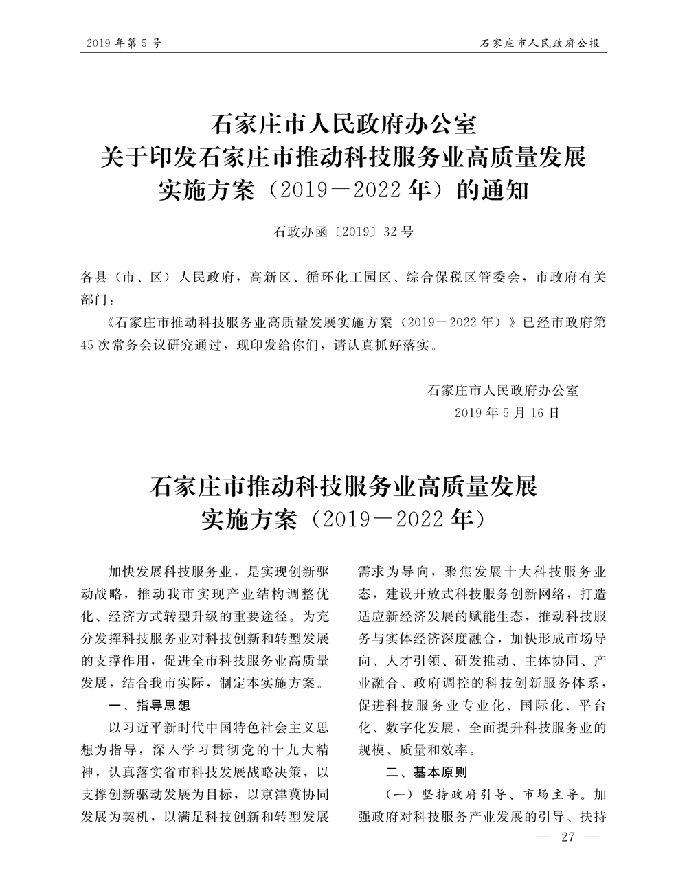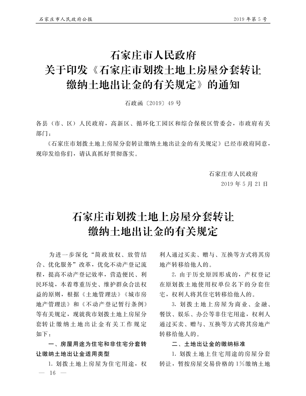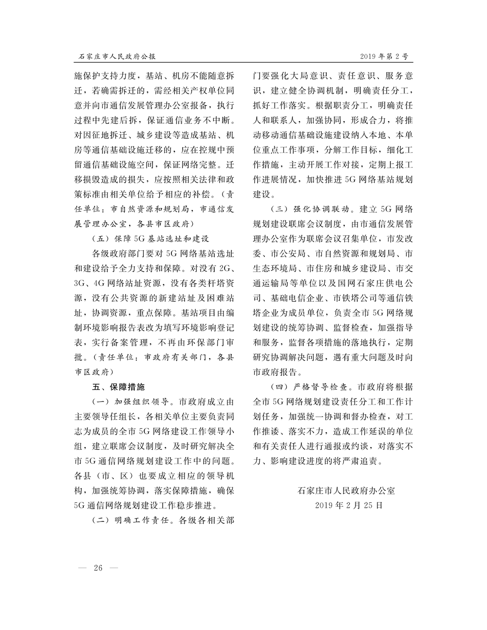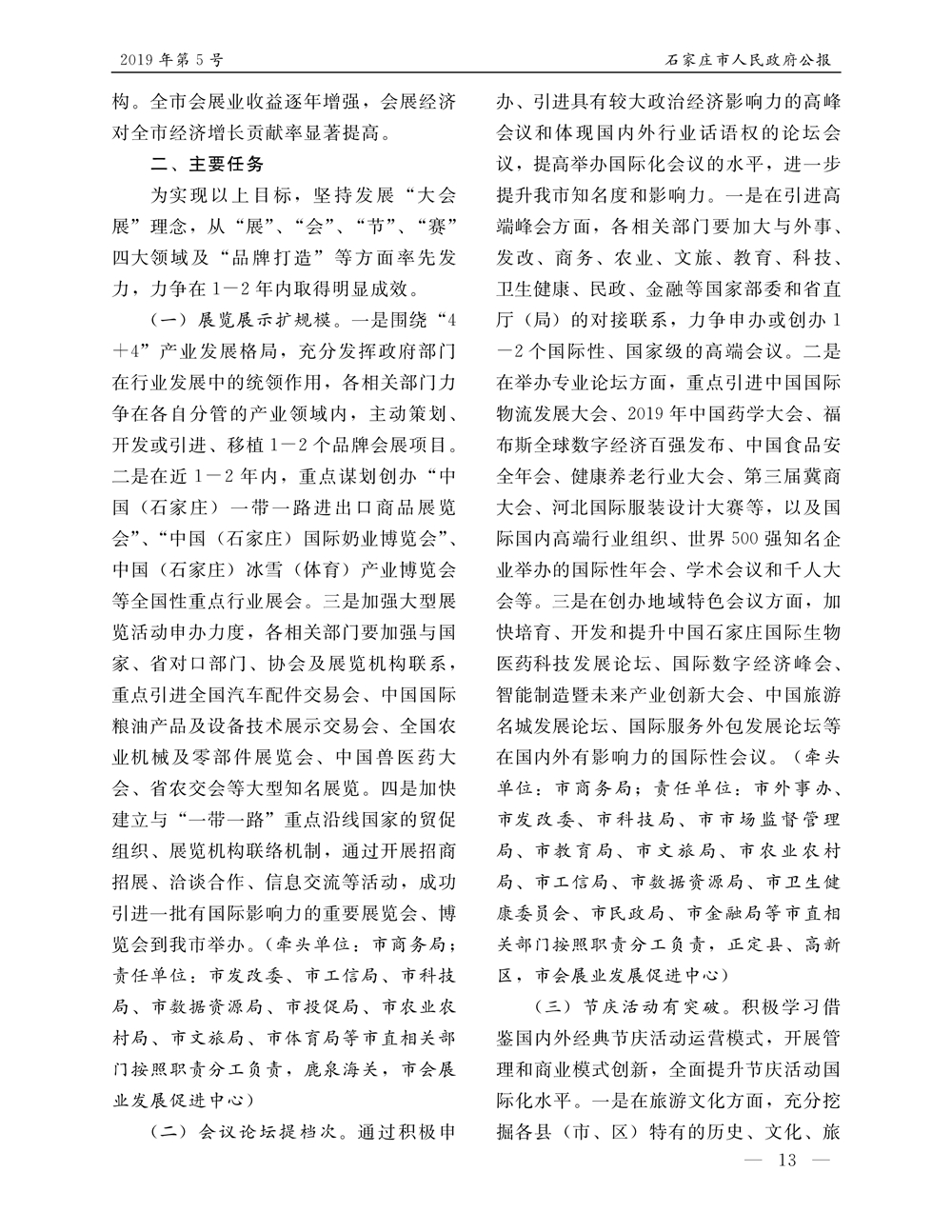 石家莊市人民政府公報2019年第5號