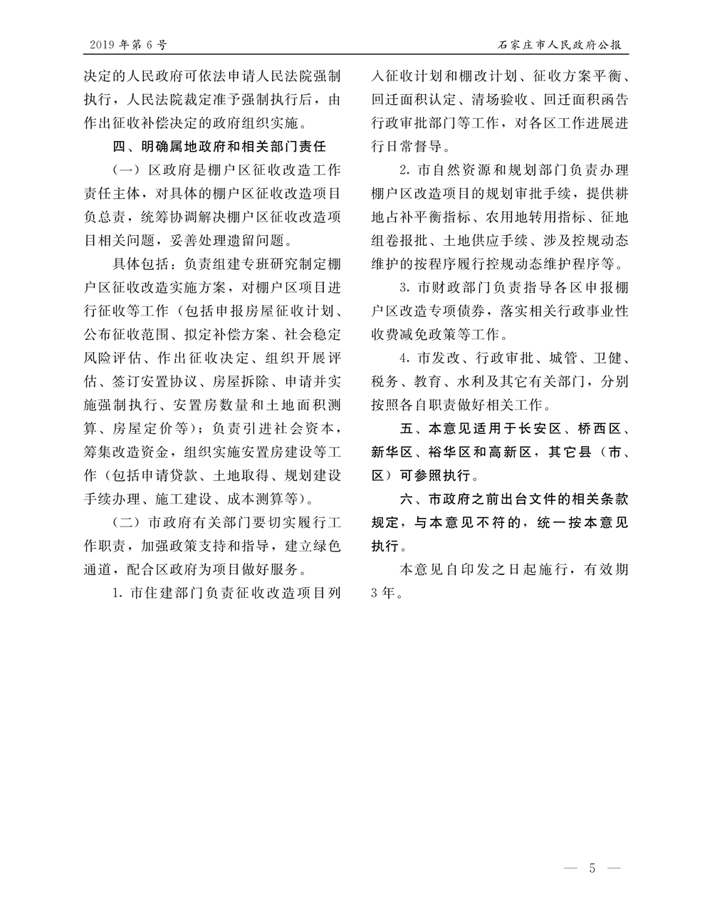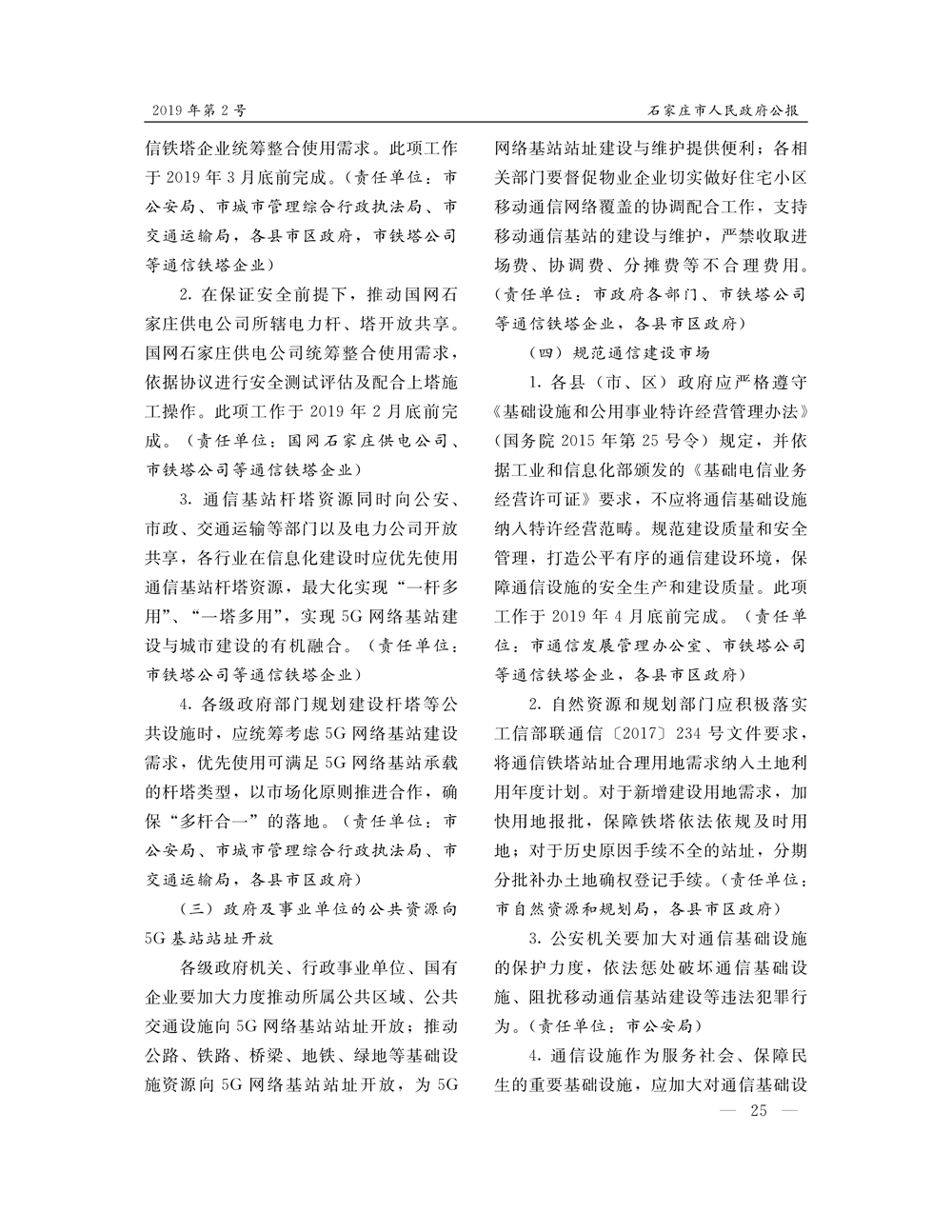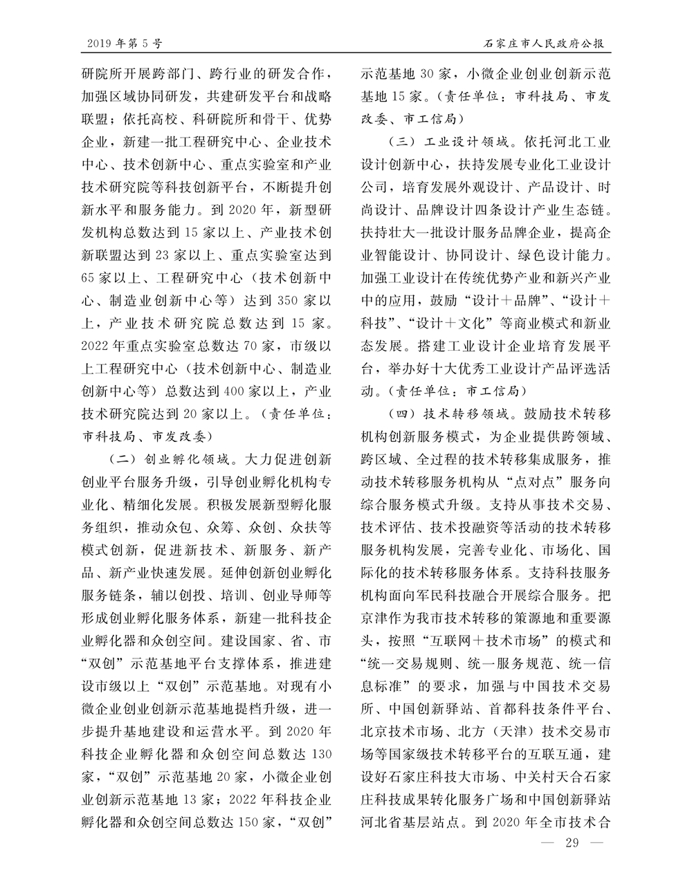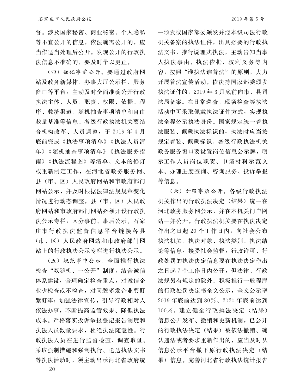 石家莊市人民政府公報2019年第5號