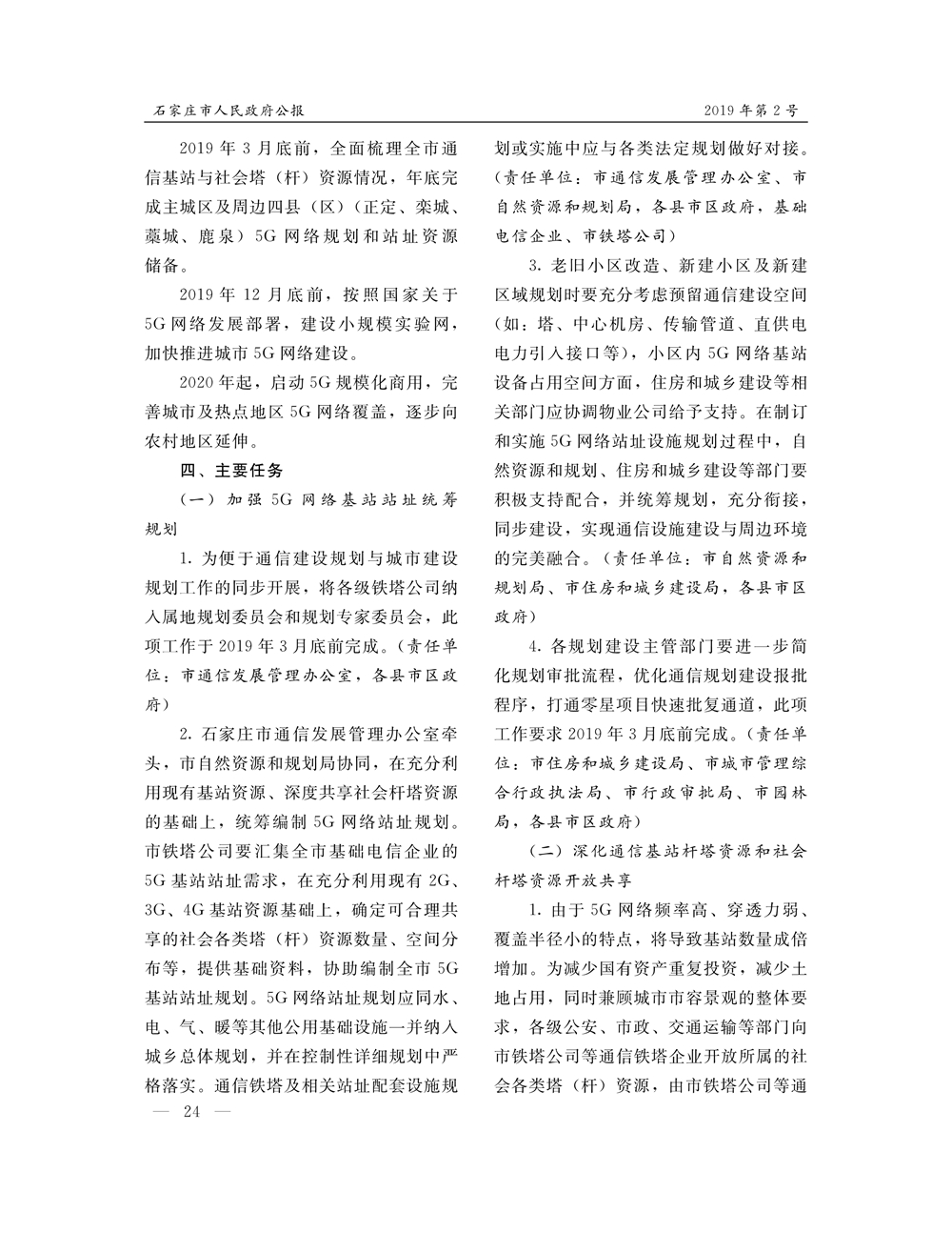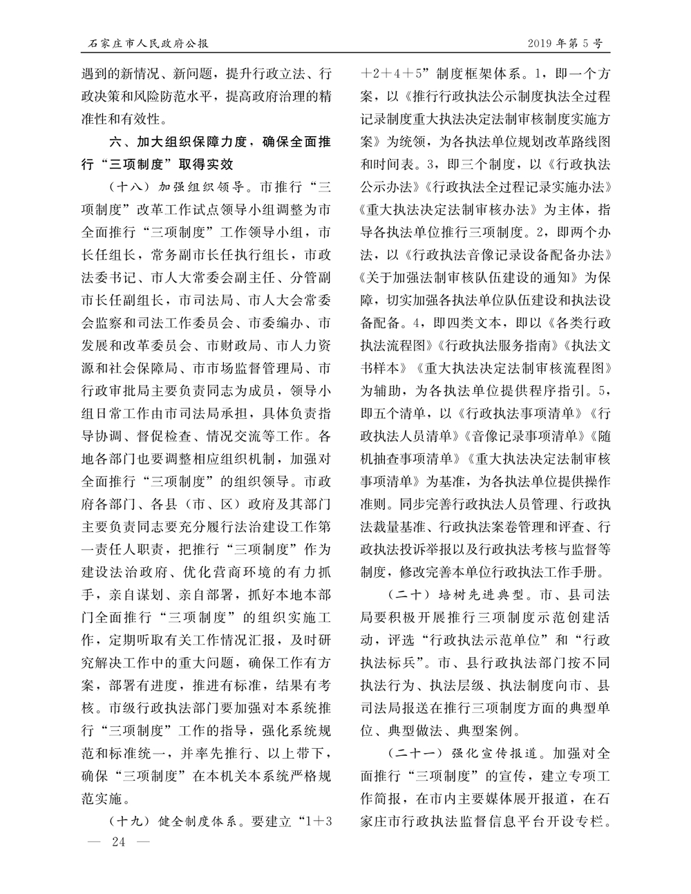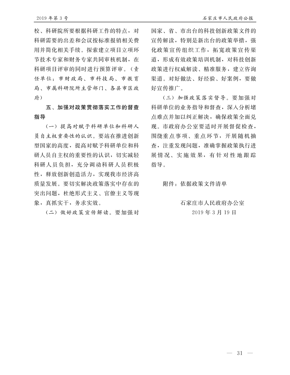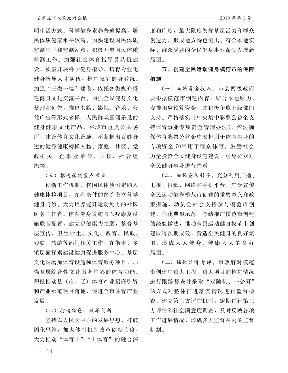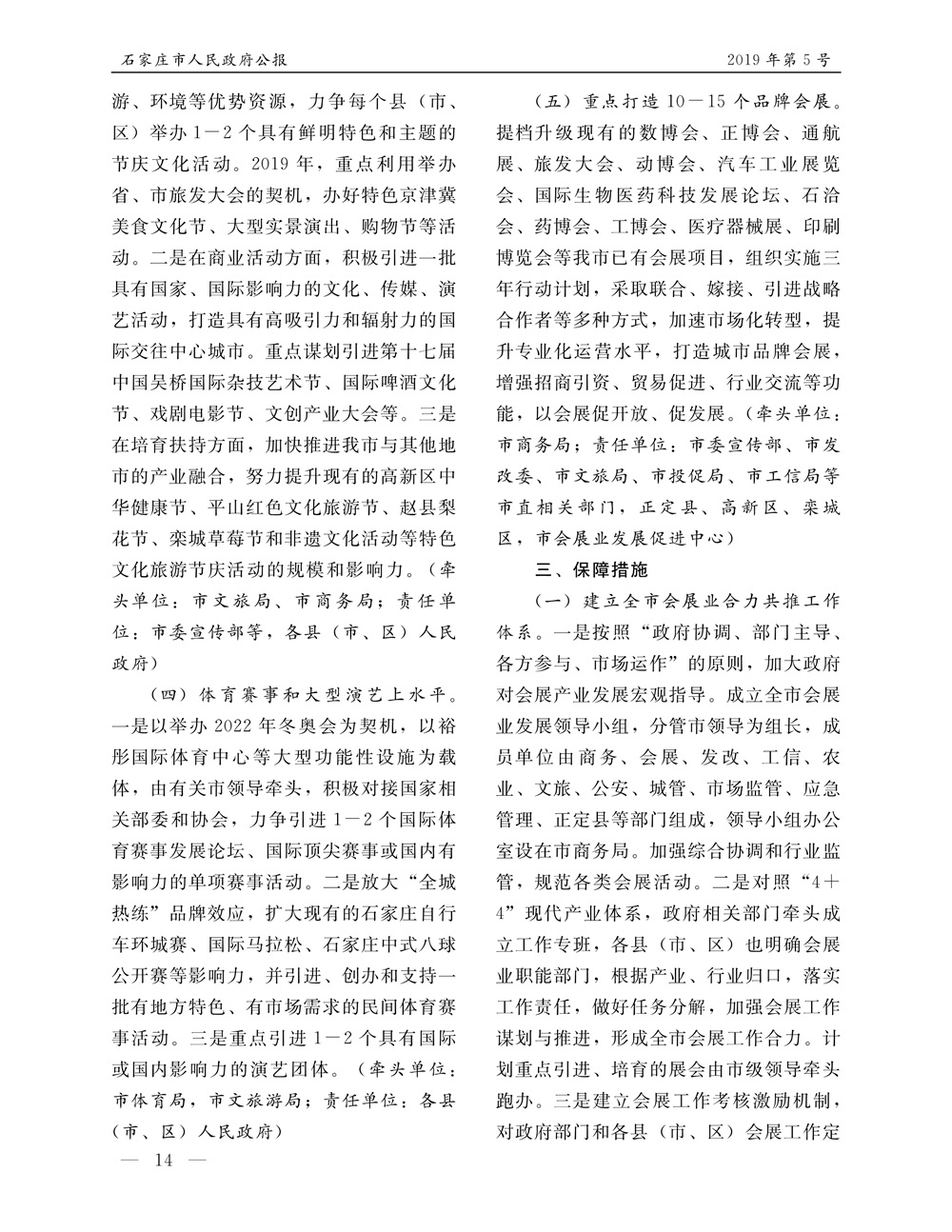 石家莊市人民政府公報2019年第5號