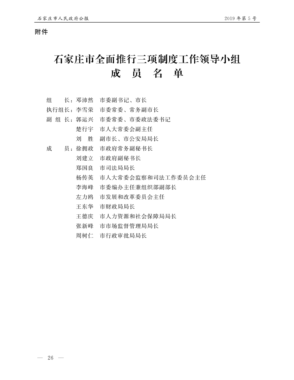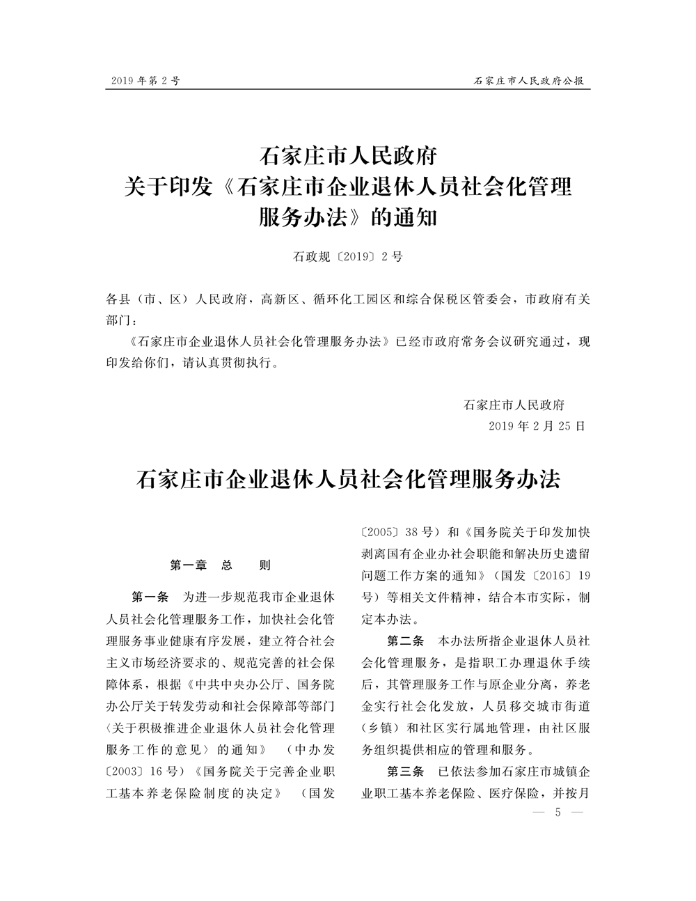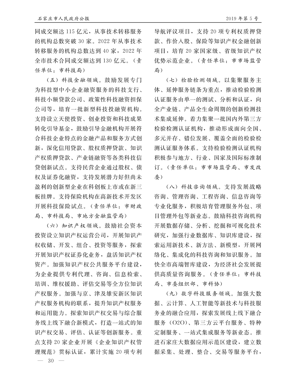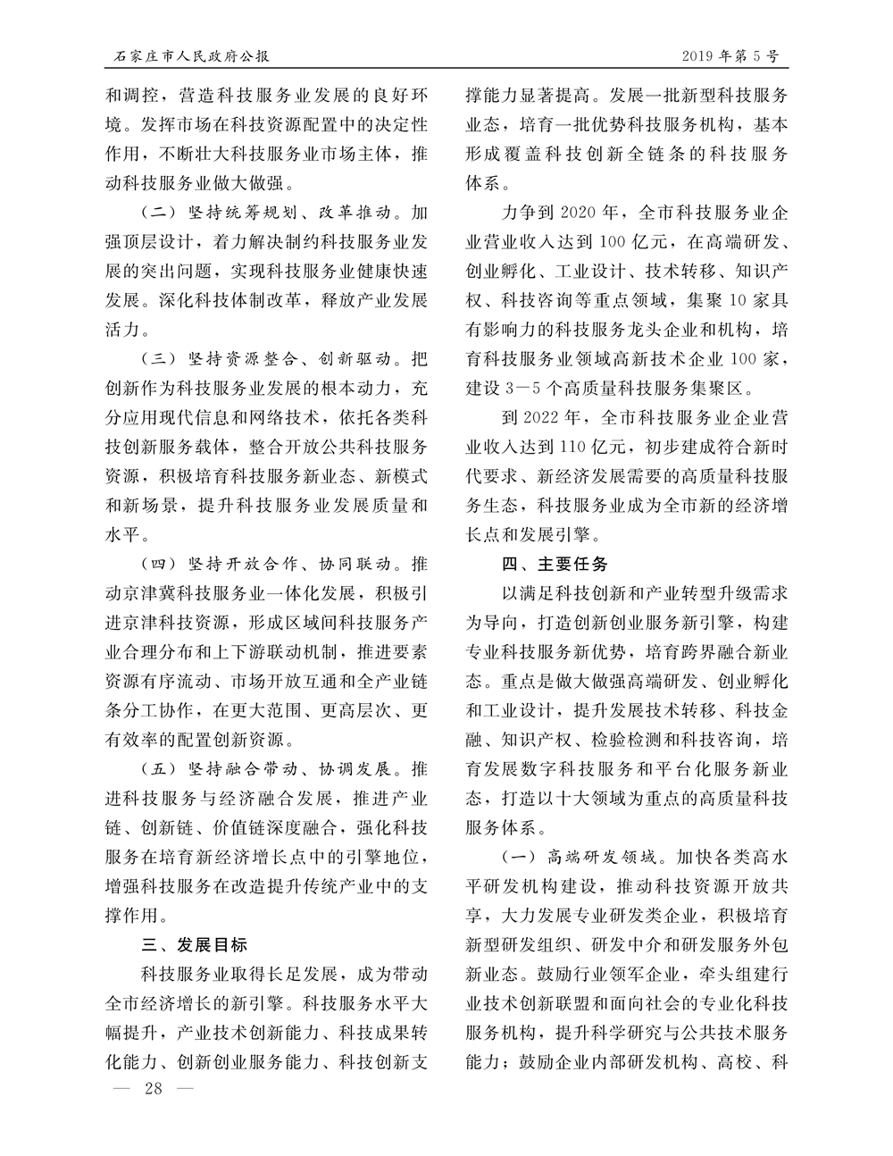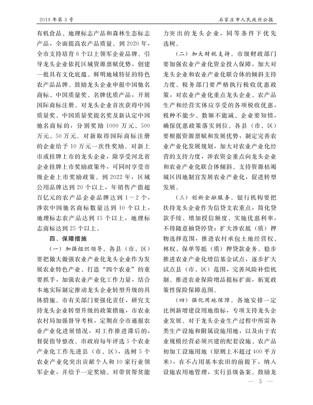 石家莊市人民政府公報2019年第5號