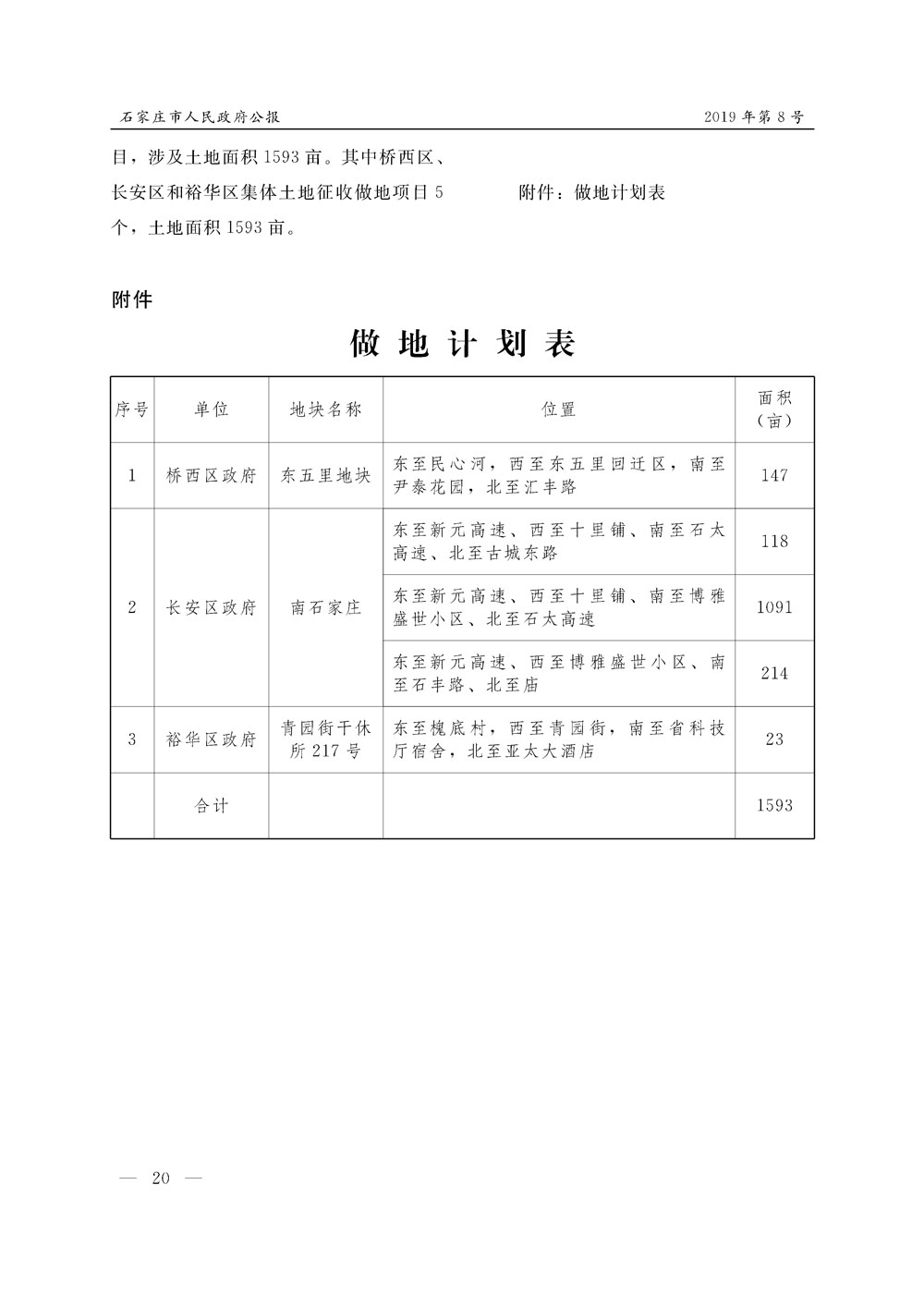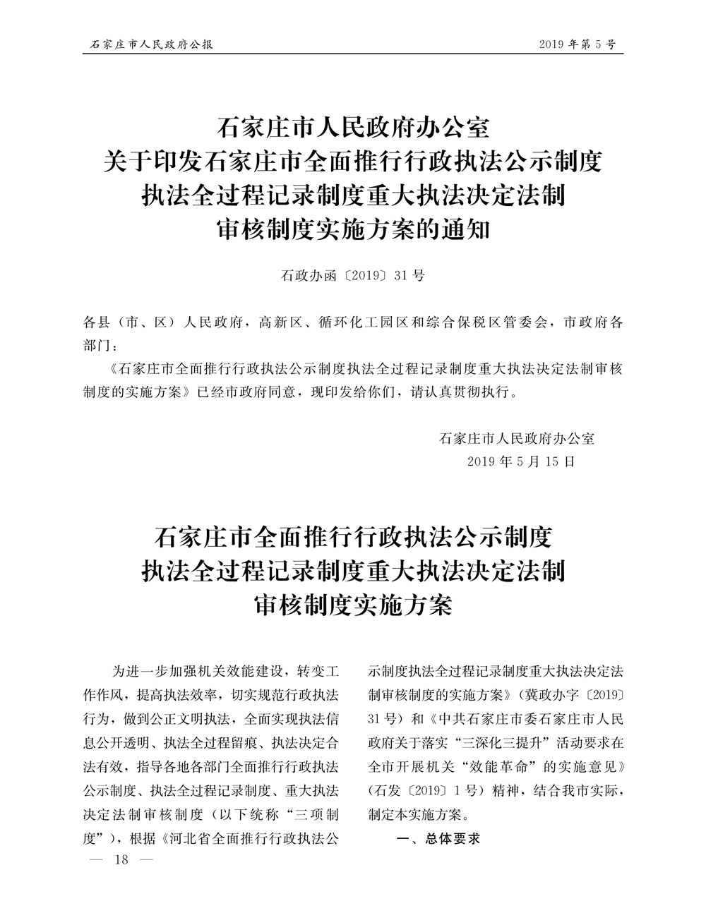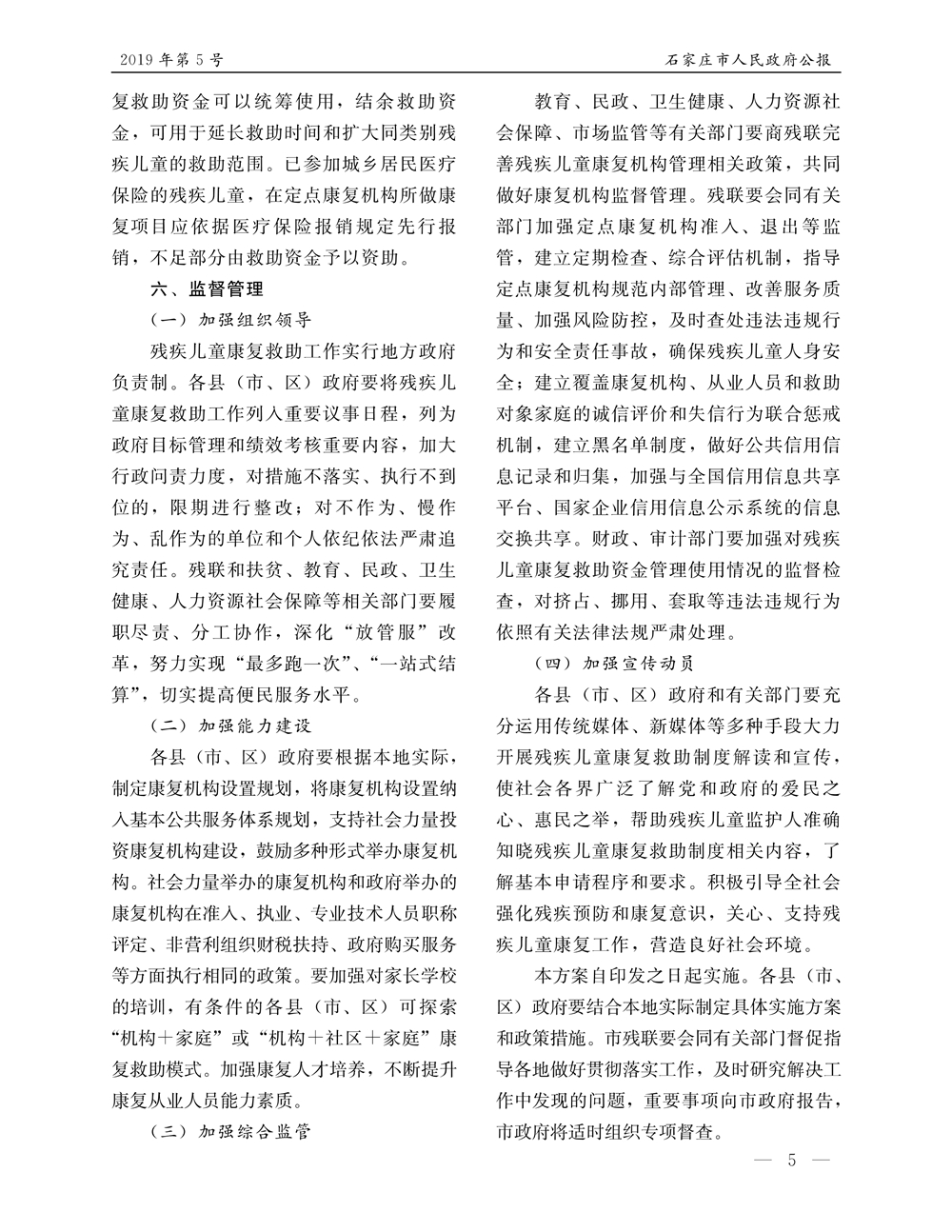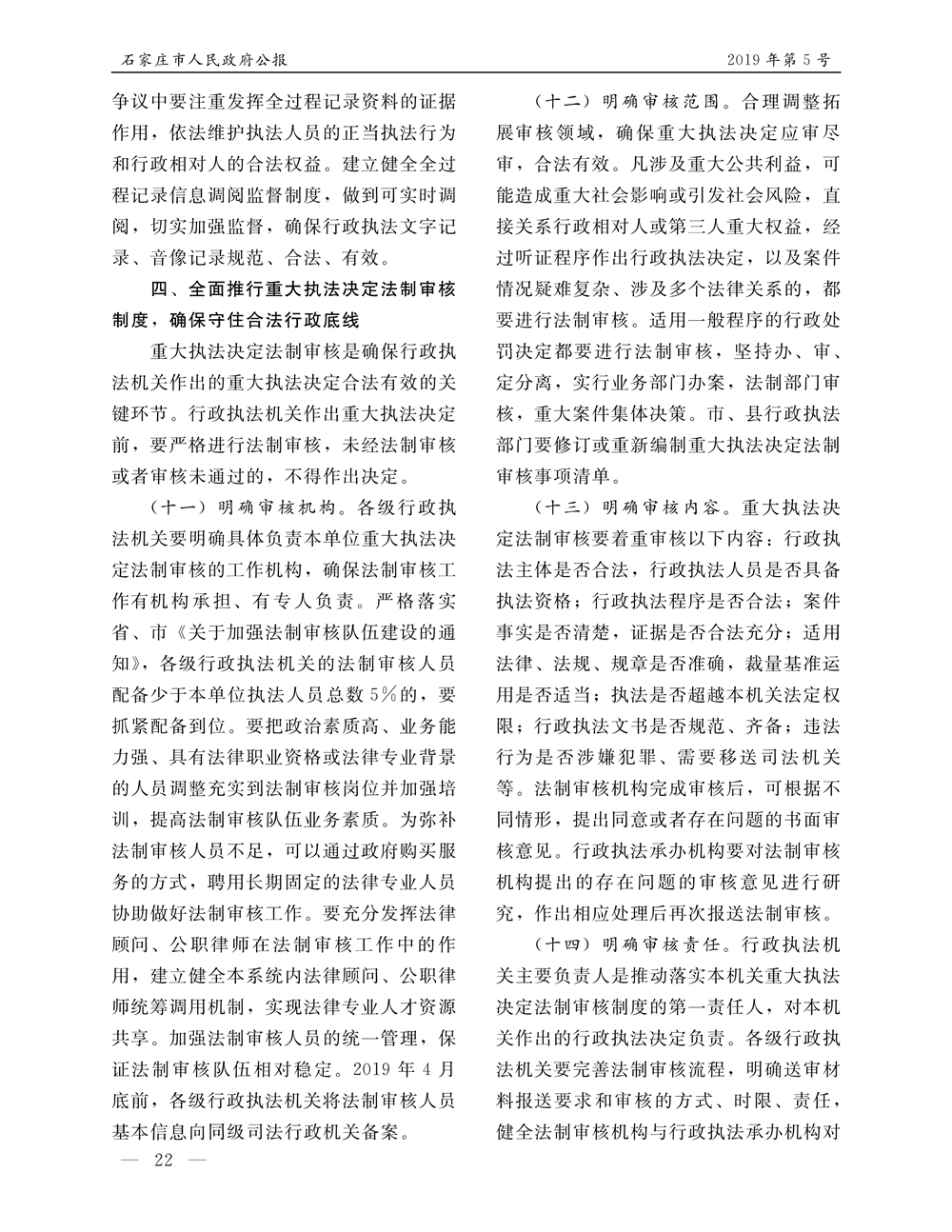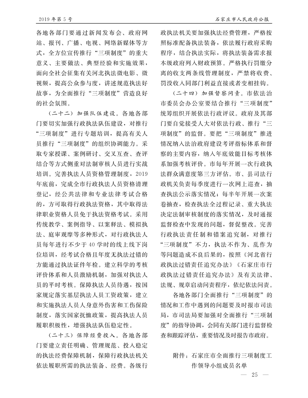 石家莊市人民政府公報2019年第5號