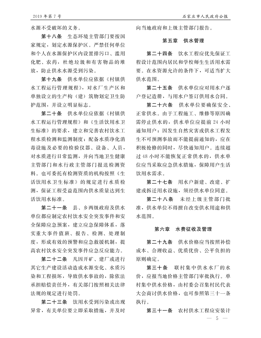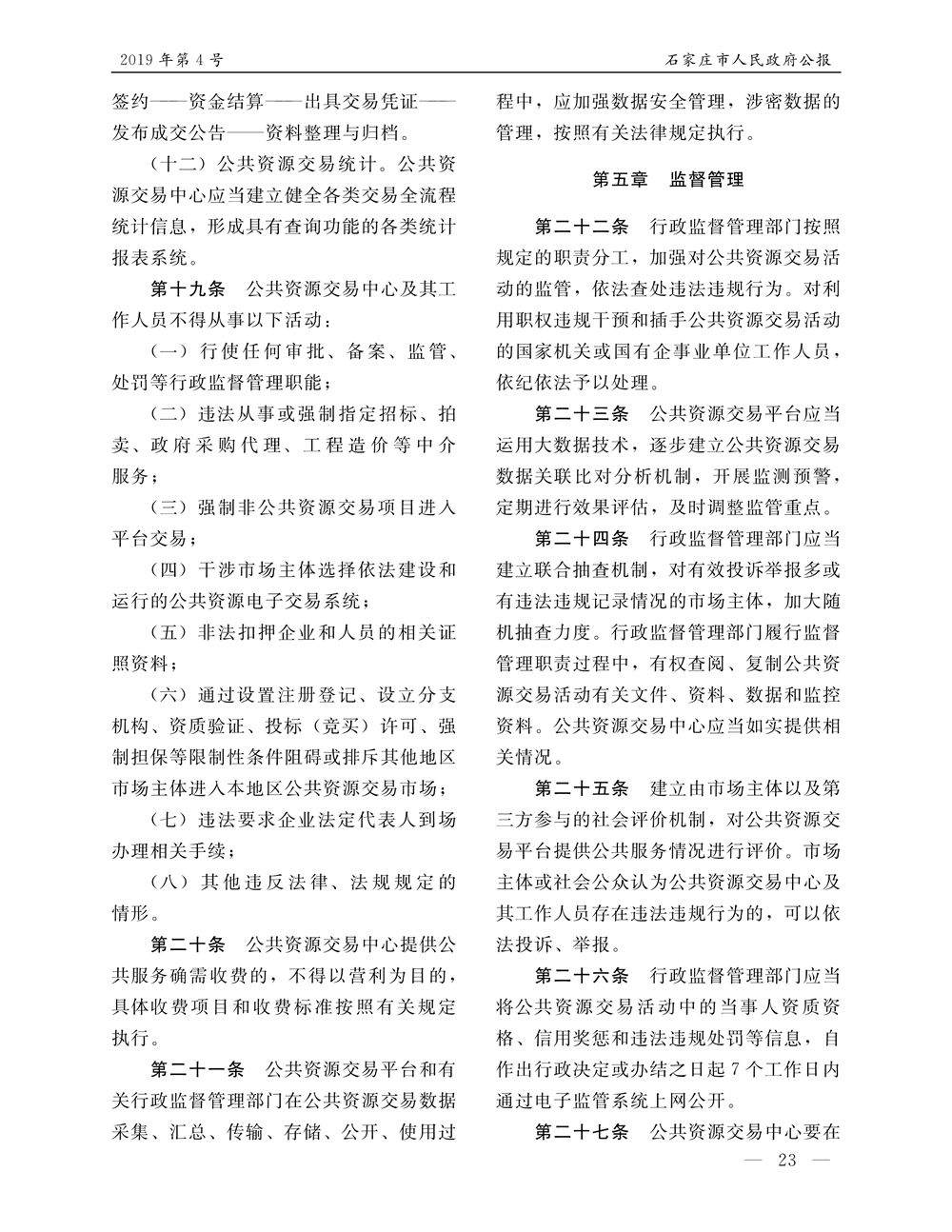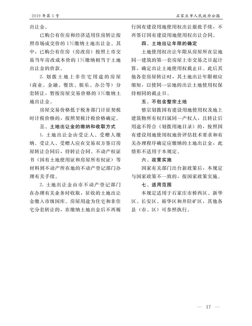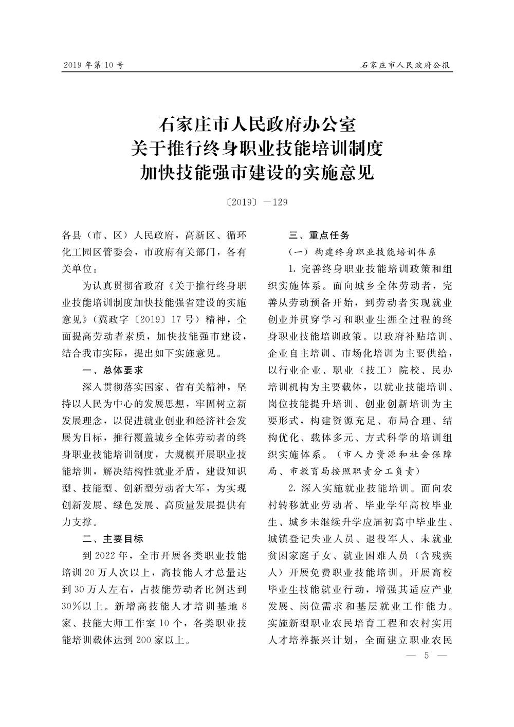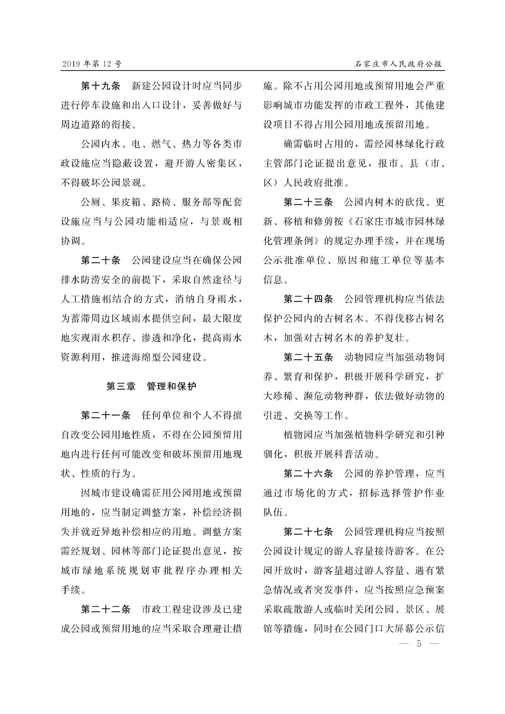 石家莊市人民政府公報2019年第5號