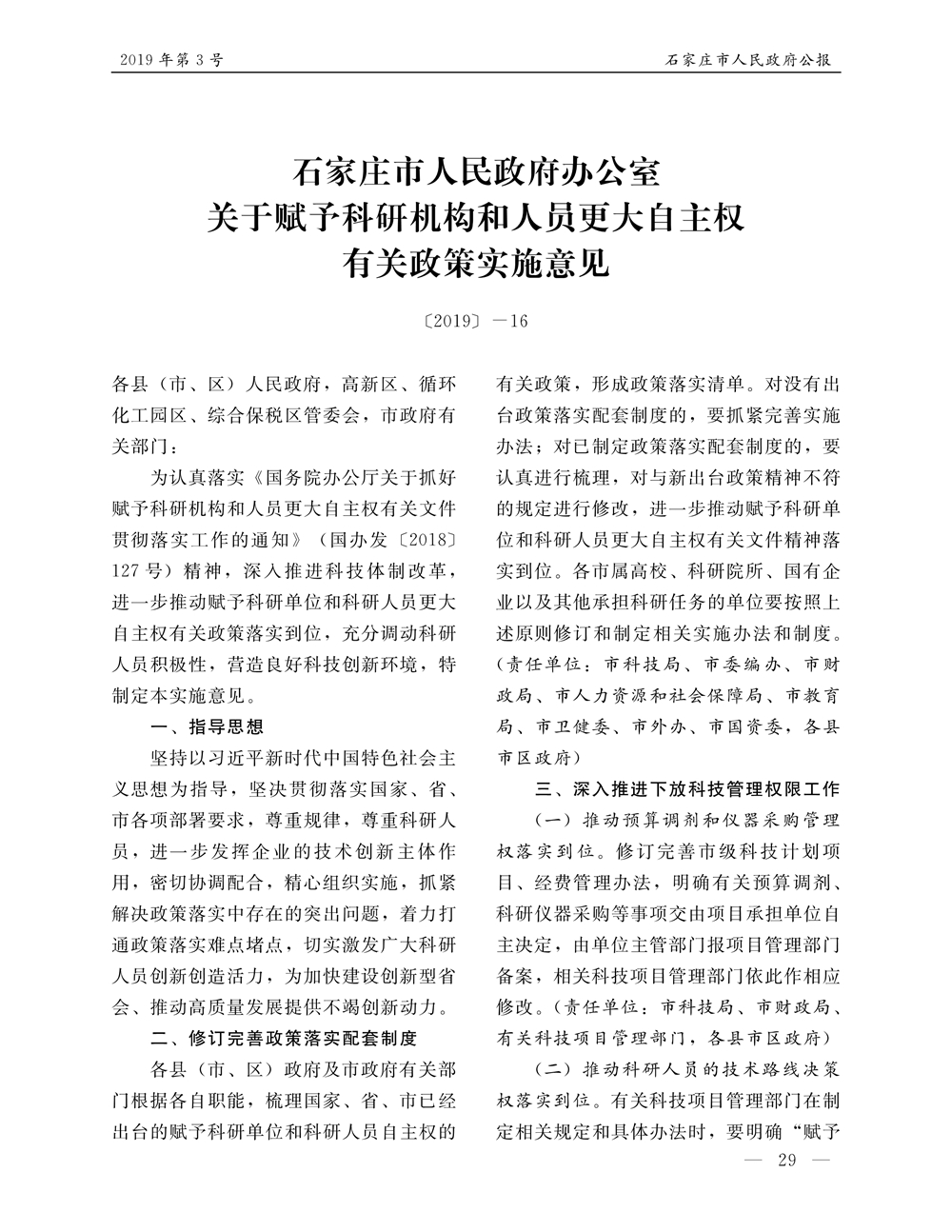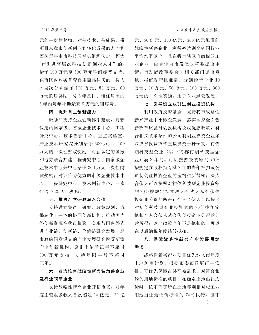 石家莊市人民政府公報2019年第3號
