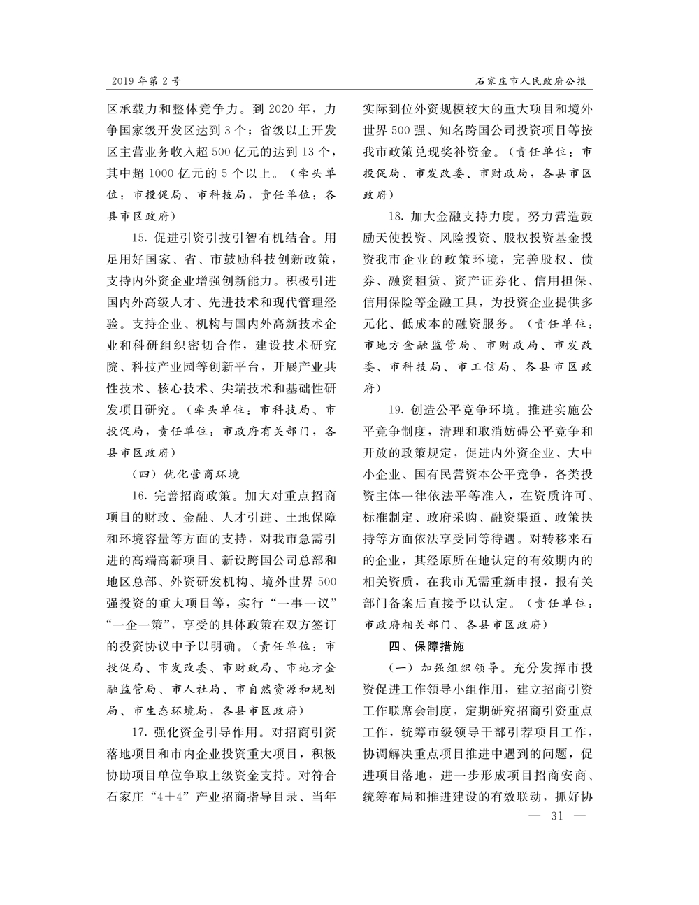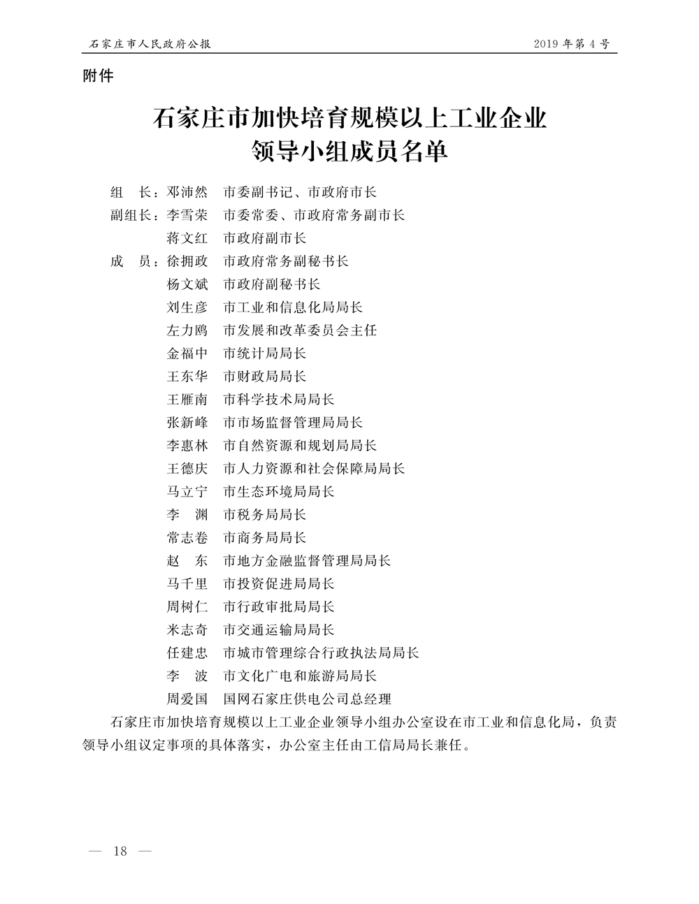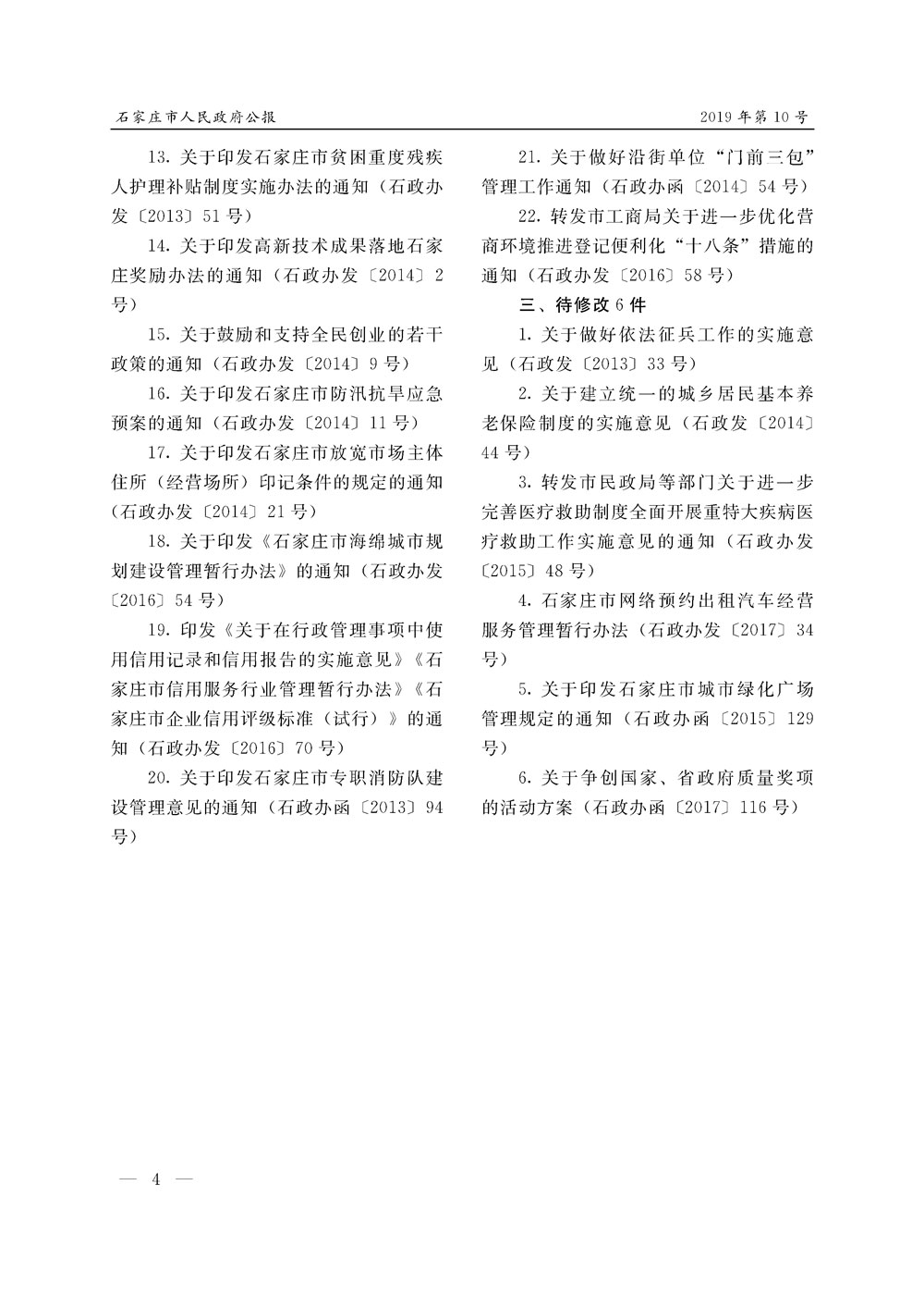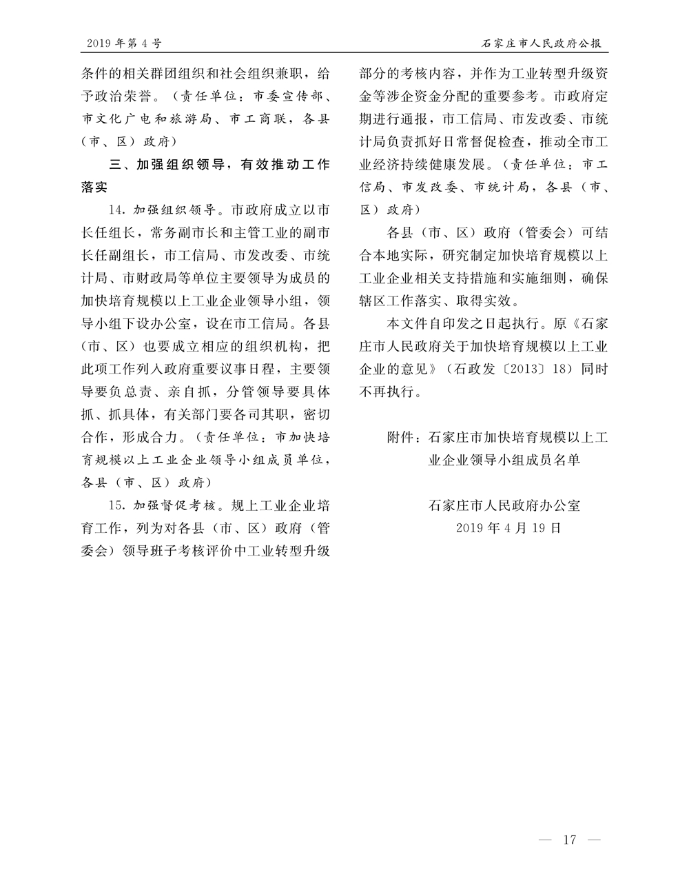 石家莊市人民政府公報2019年第4號