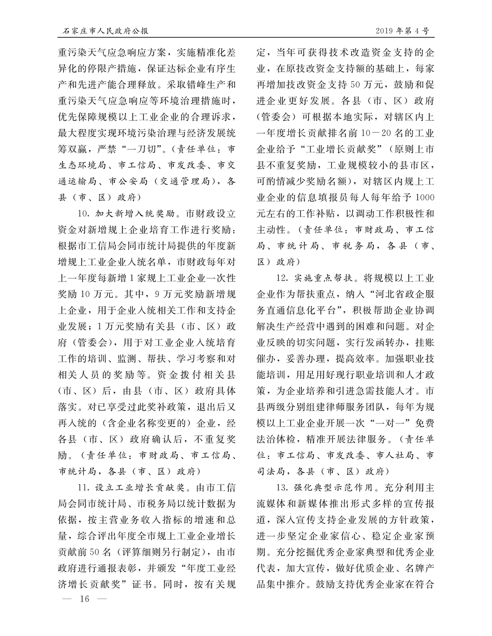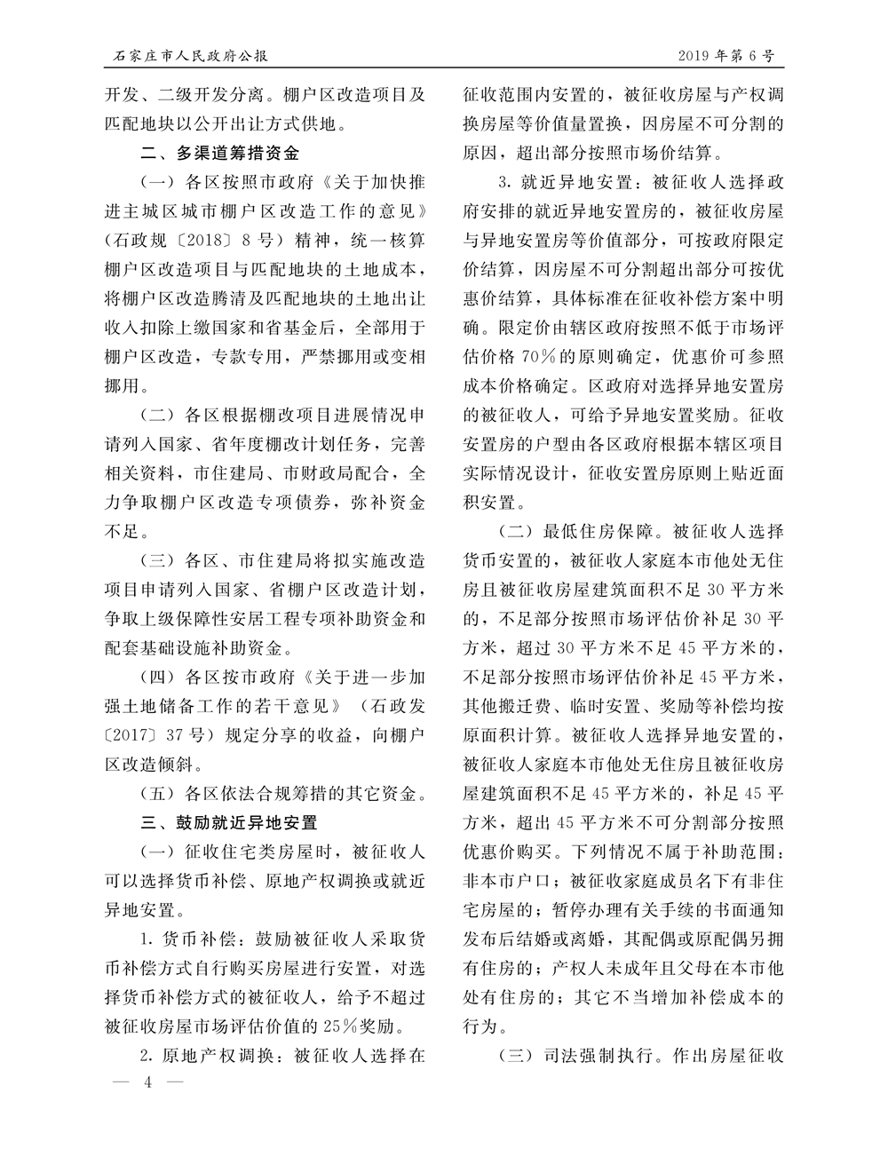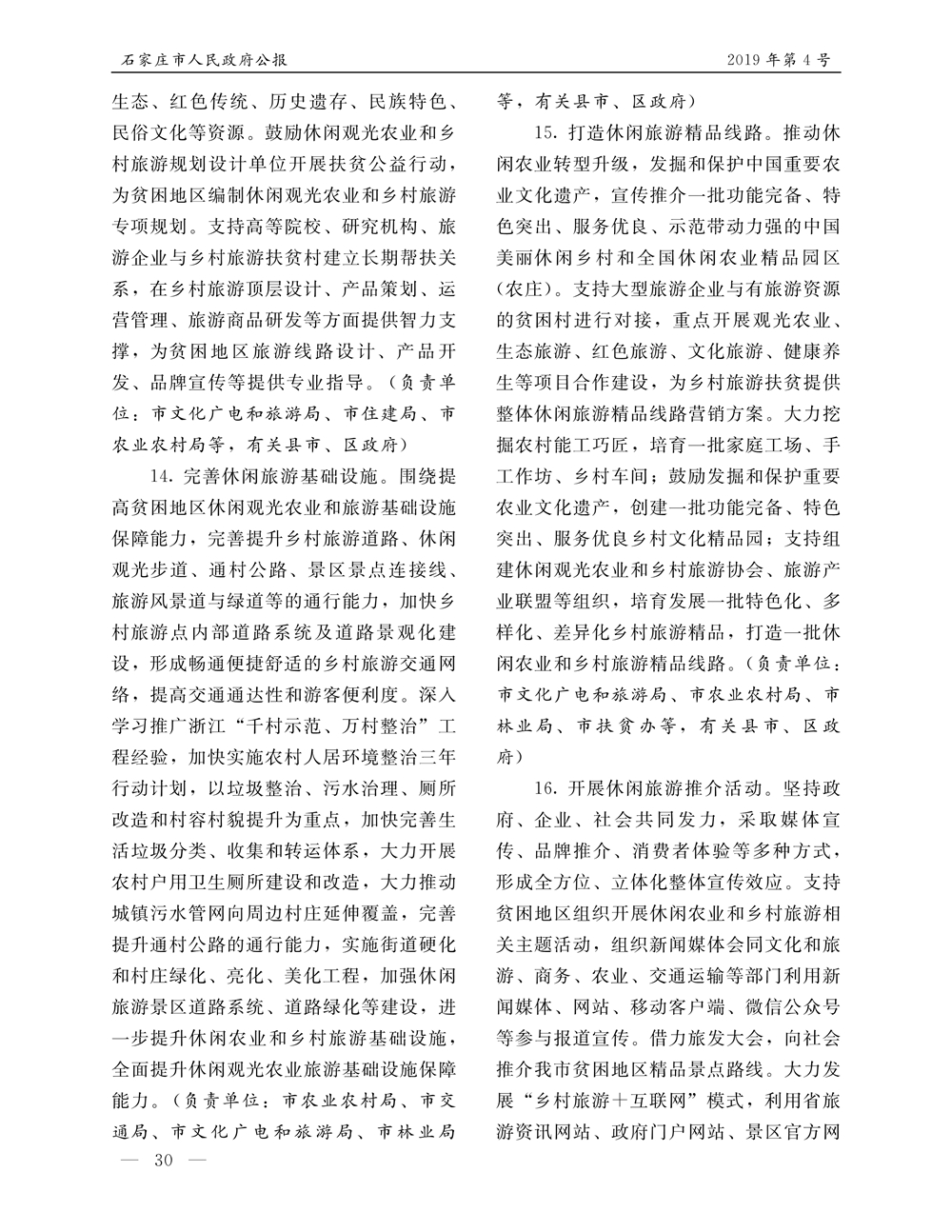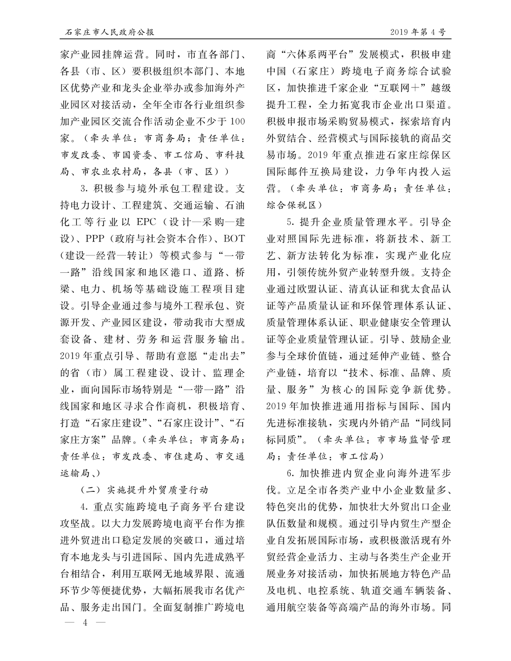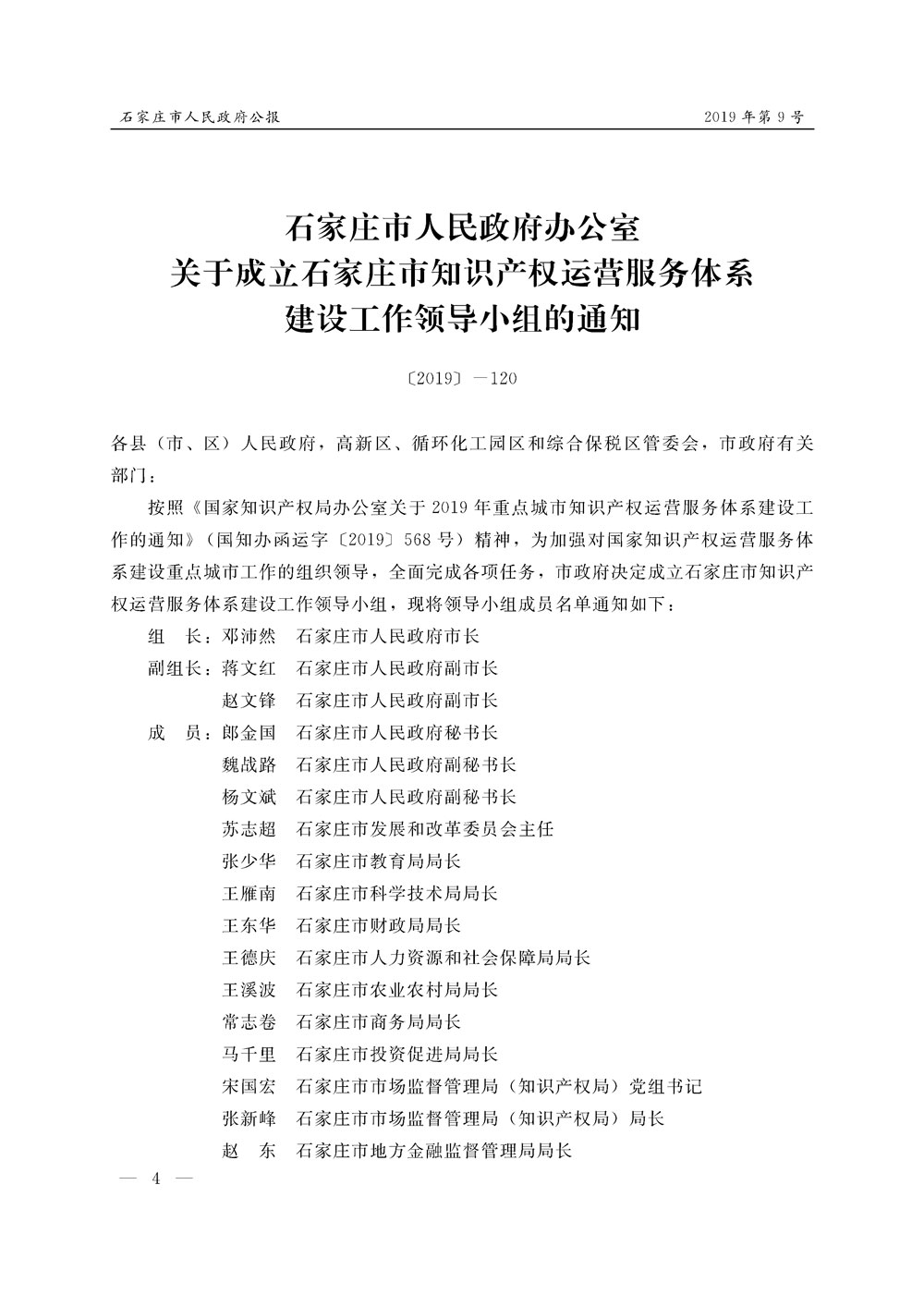 石家莊市人民政府公報2019年第4號