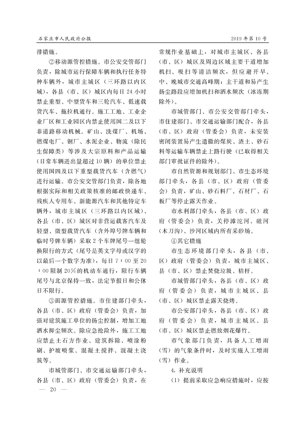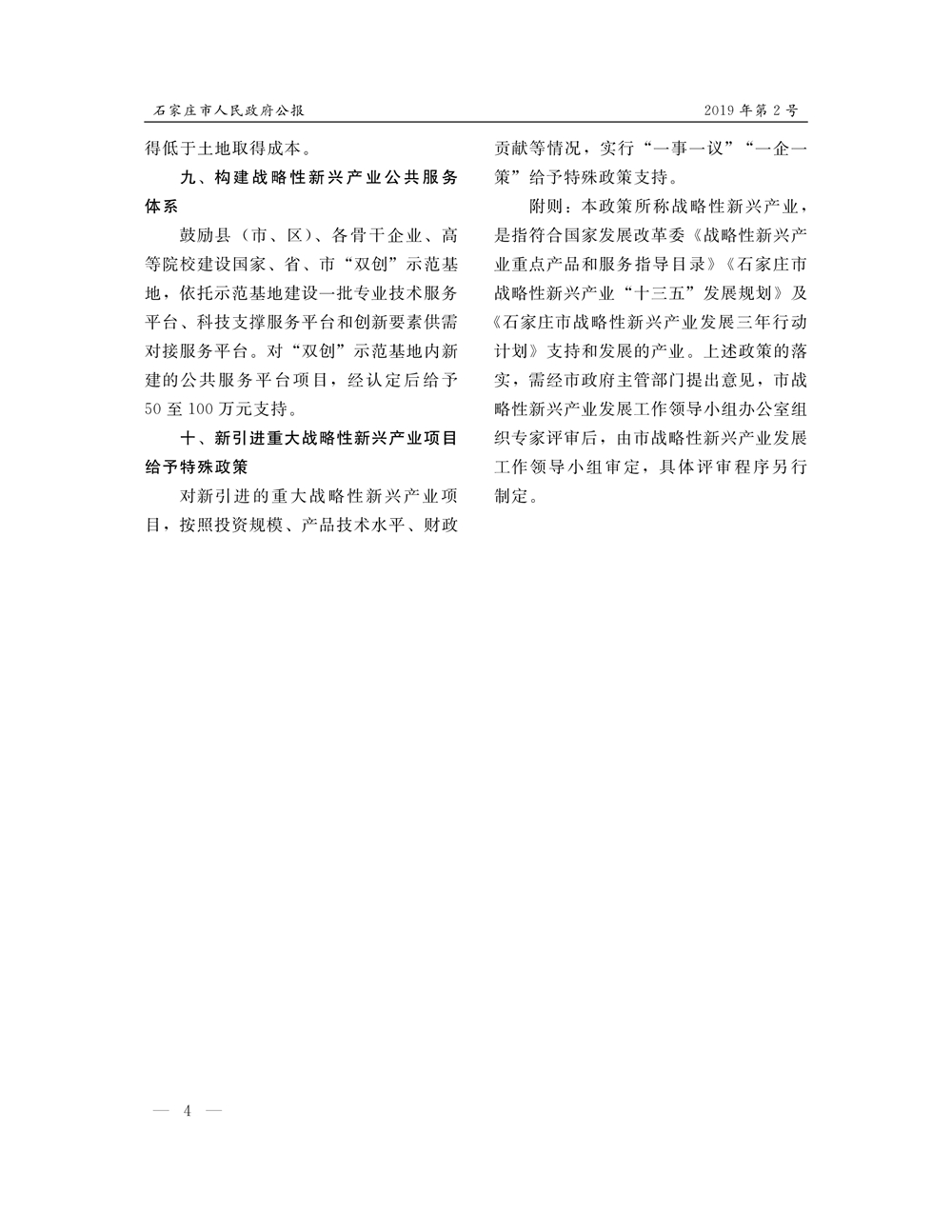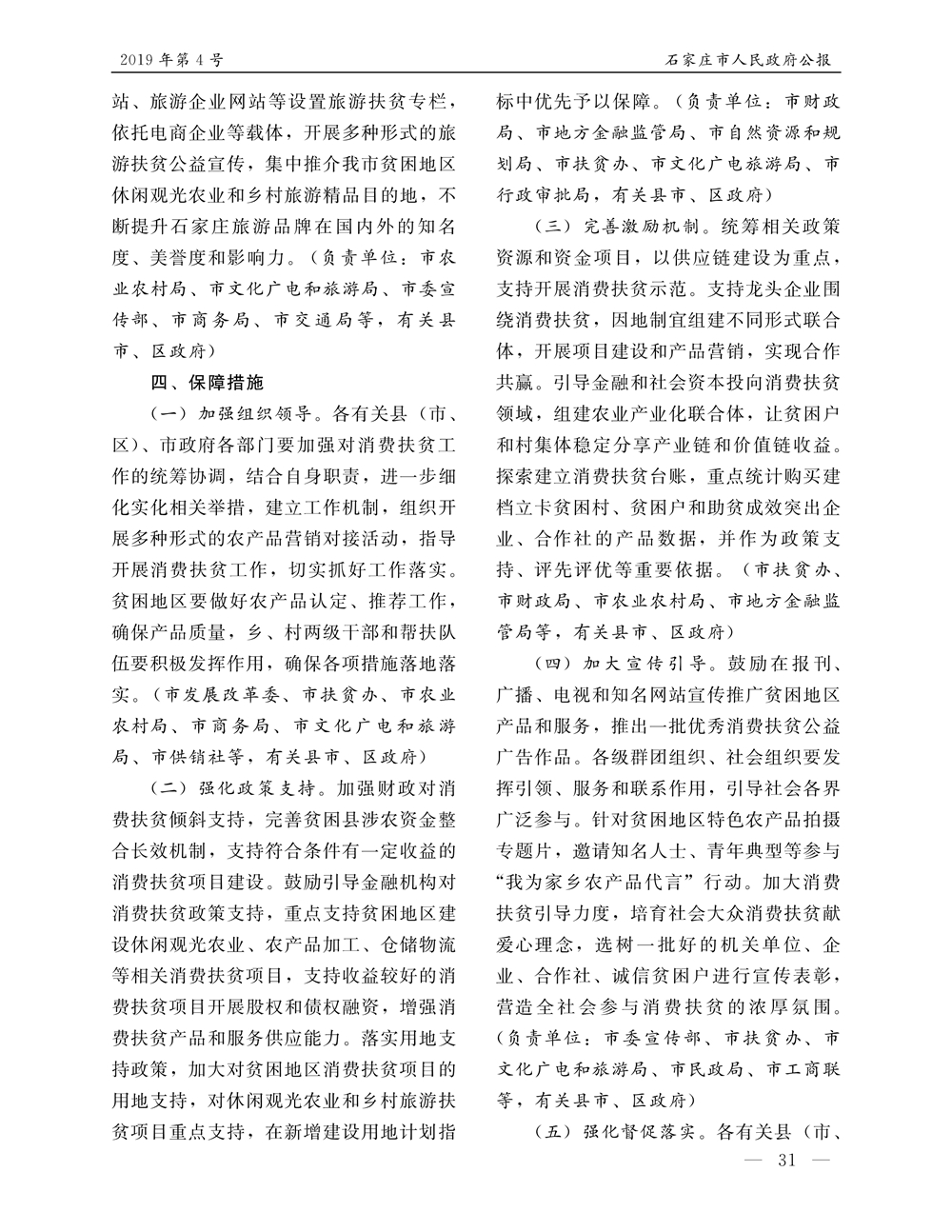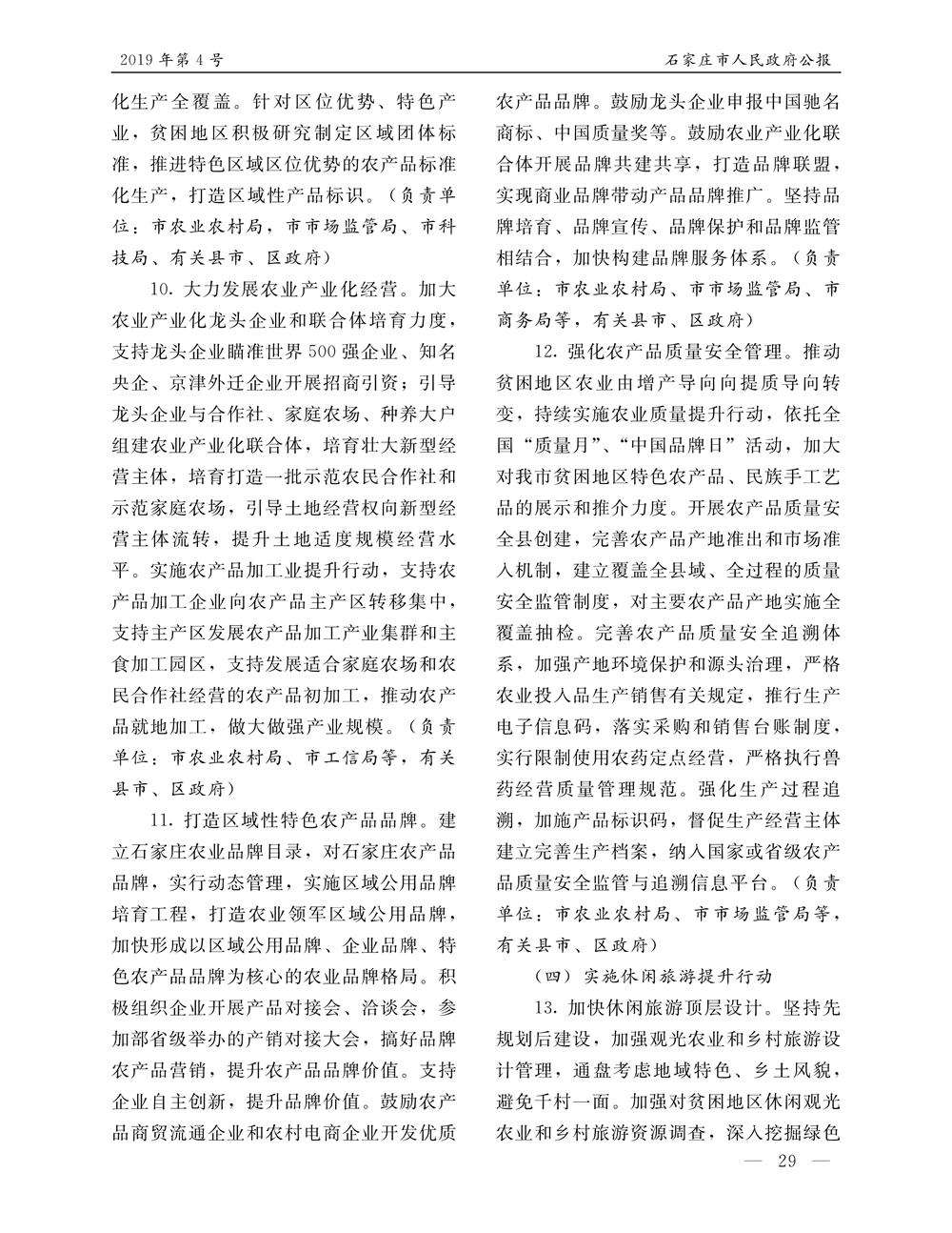 石家莊市人民政府公報2019年第4號