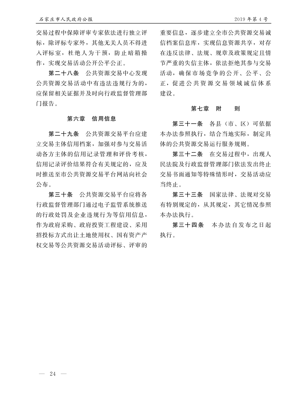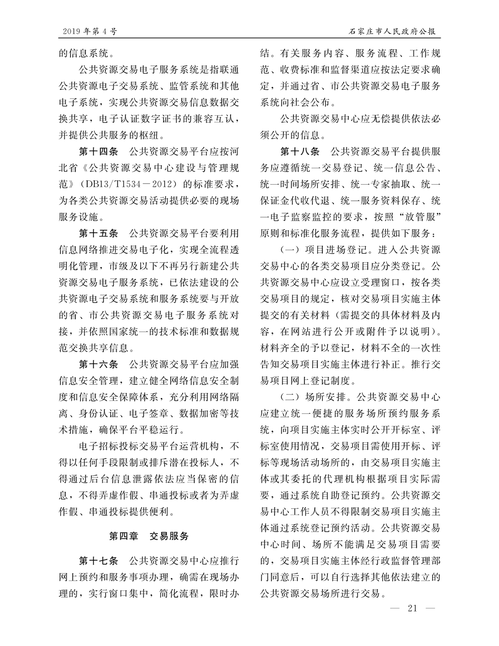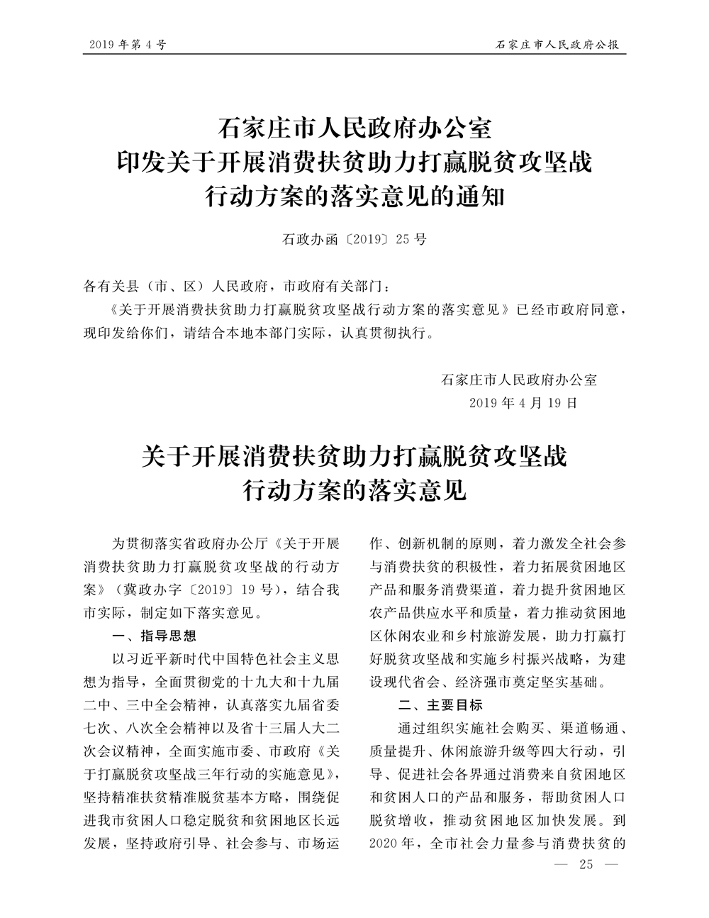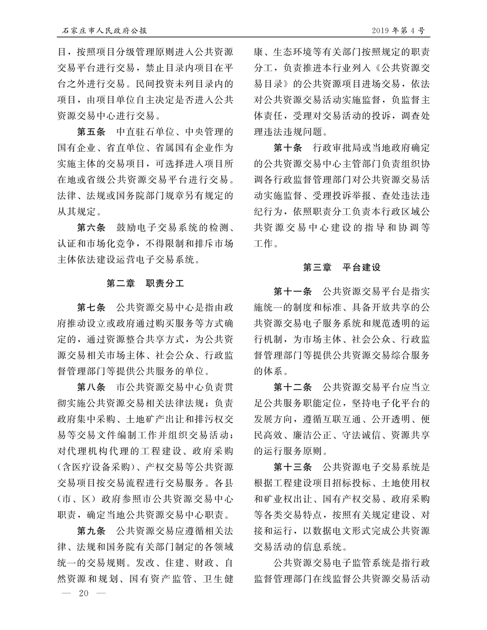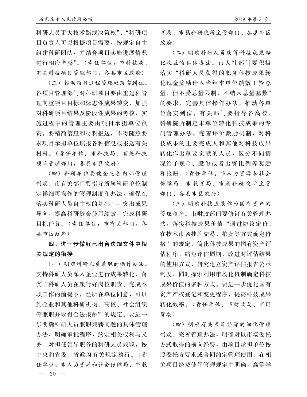 石家莊市人民政府公報2019年第4號
