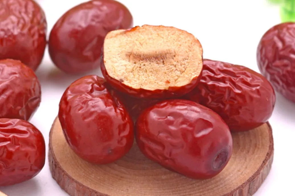 贊皇金絲大棗又名贊皇大棗。產于河北贊皇。長圓形,果頂稍凹入皮,呈褐色,外形美觀,白亮紫紅,肉厚皮薄,油大味甘,曬干掰開,尺余長的蜜絲維連不斷。鮮棗甜脆可口,干棗肉綿甘香,含糖量達62%-70%,每百克鮮棗含維生素300-600毫克,比同等重量的梨多140倍,比蘋果多69倍。