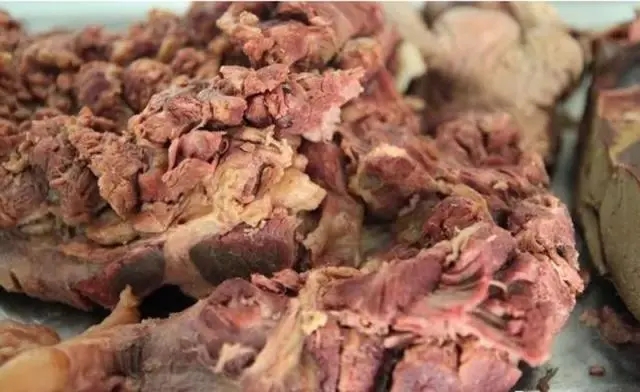 趙縣特產(chǎn)咸驢肉的制作,最重要的在于一鍋百年傳承的老湯,百年秘制的老湯給予驢肉最好的味道。其次,制作咸驢肉的技藝更在于一個“燜”字。生肉入鍋前先用一些驢骨鋪到鍋底,防止粘鍋。然后把清水泡好的驢肉下鍋,投入十余斤的秘制調(diào)料袋,用幾百斤重的鐵篦子將肉壓在湯下,大火煮到五六分熟時,轉(zhuǎn)中小火繼續(xù)燜制。從生肉入鍋到出鍋,要長達十四五個小時才能完成。