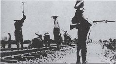 1.荷槍實(shí)彈的日本兵在監(jiān)視中國(guó)人修筑石德鐵路