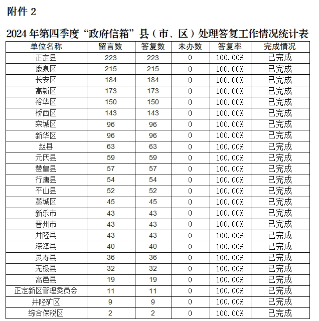 附件2:2024年第四季度“政府信箱”縣(市、區)處理答復工作情況統計表