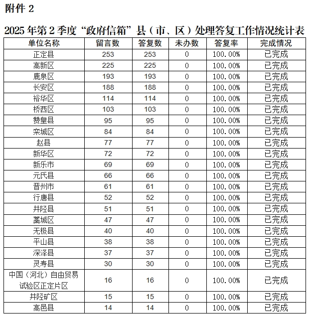 附件2:2025年第2季度“政府信箱”縣(市、區(qū))處理答復工作情況統(tǒng)計表