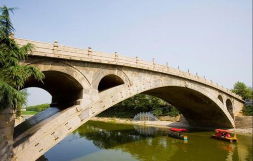 China’s oldest stone segmental arch bridge, the Zhaozhou Bridge, has spanned the Jiao River for 1,400 years. As the world’s first stone segmental arch bridge (its arch is a segment of a circle, as opposed to a complete semicircle), it predates other bridges of its type throughout the world by 800 years. In excellent condition, and part of a riverside, landscaped park, it is 50.82 meters long and 9.6 meters wide, with a span of 37 meters.