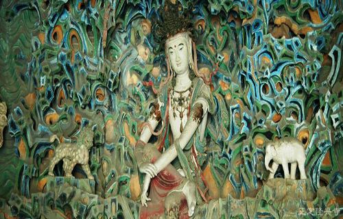 Beyond the ruined Hall of Sakyamuni's Six Teachers is the Manichaean Hall, an astonishingly large hall flagged in smooth stone, with amazing carpentry overhead, a huge gilded statue of Shakyamuni and faded Ming frescoes detailing Buddhist tales.